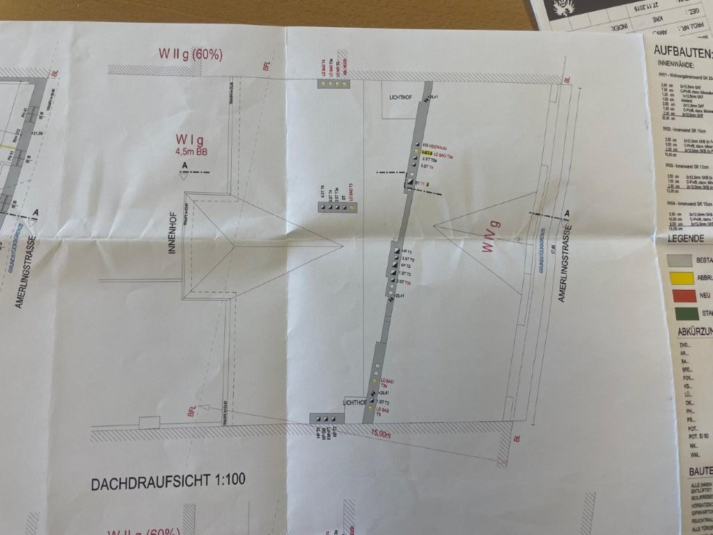 | Beschreibung: | Die gegenständliche Einheit befindet sich im 4. Stock (5. Obergeschoß). Die Einheit ist eine Dachgeschoßwohnung, der Dachbodenflächen als Zubehör zugeordnet wurden. Widmung: Wohnung und Dachboden Zum Zeitpunkt der Befundaufnahme konnte der Sachverständige bei der Einheit nur Abbrucharbeiten, einen rohbauähnlichen Zustand feststellen. Die Fenster, Türen und Böden sind stark beschädigt/nicht vorhanden. Die im Plan ausgewiesene Waschküche wurde ebenfalls abgebrochen. Installationen (Elektro, Heizung, Sanitär) sind nicht vorhanden bzw. unbrauchbar. Eine Baubewilligung für einen Dachgeschoßausbau existiert nicht. Im Falle der Durchführung von baulichen Maßnahmen ist eine Baubewilligung erforderlich. Für die Bewertung ist daher festzuhalten, dass die zum Bewertungsstichtag gültigen Bestimmungen der Bauordnung für einen Dachgeschoßausbau zu erfüllen sind. Es wird in diesem Gutachten keine Aussage darüber getroffen, ob ein Ausbau möglich ist. Als Grundrissfläche werden die im Nutzwertgutachten genannten Flächen für die Bewertung nur teilweise herangezogen. Auf die Ausführungen im Langgutachten und der Stellungnahme wird verwiesen. |