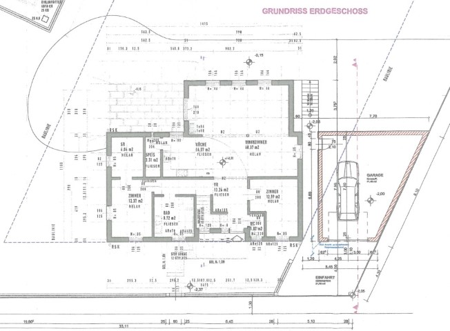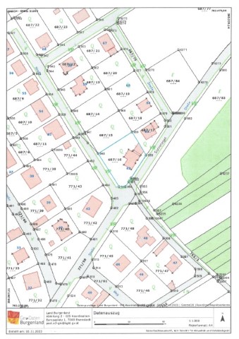 | Beschreibung: | LAGE: Das Grundstück 687/16 mit den darauf befindlichen Gebäuden liegt im Ortsteil Steinberg von Steinberg-Dörfl am Sonnriegel in einem aufgelockert verbauten Gebiet, nordöstlich außerhalb von Steinberg. Die Wohnsiedlung Sonnriegel ist durch asphaltierte Straßen erreichbar. Beim Grundstück handelt es sich um eine Eckparzelle mit zweiseitiger Erschließungsmöglichkeit und ist das Grundstück leicht nach Süden hin geneigt. Die Figuration ist als ungleichmäßig zu bezeichnen. INFRASTRUKTUR: In einer Entfernung von ca. 300 m befindet sich eine Bushaltestelle. An weiteren infrastrukturellen Gegebenheiten befinden sich im Ortsteil Steinberg das Gemeindezentrum mit Verwaltung, Kaffee und Ordination, eine praktische Ärztin, eine Mittelschule, eine Kindergrippe, ein Kindergarten sowie Einkaufsmöglichkeiten für den täglichen Gebrauch. Die nächstgelegenen größeren infrastrukturellen Gegebenheiten befinden sich im nahegelegenen Oberpullendorf. GEBÄUDEBESCHREIBUNG - WOHNHAUS: Das gegenständliche Wohngebäude wurde, wie den beiliegenden Einreichunterlagen zu entnehmen, ab dem Jahr 2005 hergestellt. Die Benützungsfreigabe der Marktgemeinde Steinberg-Dörfl, eingeschränkt auf das Erdgeschoß ohne Keller/Rohbau und Sanitärräume im Dachgeschoß, wurde im Jahr 2014 erteilt und liegt auch ein Teil-Schlussüberprüfungsprotokoll aus dem Jahr 2015 vor. Das Gebäude ist mit Keller-, Erd- und Dachgeschoß dreigeschossig ausgeführt. Das Kellergeschoß ist in Massivbauweise, Erd- und Dachgeschoß in Holzbauweise (Fertigteilhaus der Marke „Bau mein Haus“) errichtet. Die Figuration des Gebäudes ist als ungleichmäßig zu bezeichnen. An Räumlichkeiten sind im Kellergeschoß vorhanden Kellervorraum, sechs Kellerräume, wobei Kellerraum 4 mit geplantem Vorraum und Waschraum ausgeführt ist, WC sowie Abstellraum unter der Stiege. Im Erdgeschoß befinden sich Vorraum, WC, Zimmer, Küche und Wohnzimmer, Speis, Terrasse, Bad, Zimmer und Schrankraum. Im Dachgeschoß vorhanden Vorraum, Bad, drei Zimmer und WC. Die Aufschließung und Erreichung erfolgt über die westlich und östlich angrenzende Straße mit der Bezeichnung Sonnriegel. Hauptzugang und -zufahrt erfolgen von der Ostseite. Der Zugang zum Haus erfolgt über einen befestigten Zugangsweg und betonierte Aufgangsstufen im Rohzustand mit Holzgeländer zur Absturzsicherung. Vom Vorplatz des Hauses gelangt man über betonierte Ausgleichsstufen auf Kellerniveau zum Eingangsbereich Kellergeschoß. Die Geschoßverbindung Kellergeschoß-Erdgeschoß erfolgt über eine einläufig und massiv ausgeführte Betonstiege. Vom Erdgeschoß zum Dachgeschoß gelangt man über eine einläufige Stiege aus Holz. GEBÄUDEBESCHREIBUNG - GARAGE: Zur Nordseite im Anschluss an das Wohnhaus an der nordseitigen Grundgrenze errichtet eine eingeschossig und in Massivbauweise ausgeführte Garage. Die Garage wurde offensichtlich nicht baubehördlich genehmigt, ab dem Jahr 2009 hergestellt und liegt betreffend der nicht bewilligten Bauführung ein Bescheid der Marktgemeinde Steinberg-Dörfl vom 05.05.2010 vor. Für die Garage wurde jedoch nachträglich eine Bauanzeige im Jahr 2011 getätigt und liegt diesbezüglich auch eine Baufreigabe vom Marktgemeindeamt Steinberg-Dörfl aus dem Jahr 2011 vor. In der Garage befindet sich ein Einstellraum. Die Aufschließung und Erreichung erfolgt gleichartig wie vom Wohnhaus. Die Zufahrt von der Straße ist befestigt (Plattenbelag und betoniert) sowie besteht zwischen Garage und Wohnhaus ein betonierter Gang mit Ausgleichsstufen und in diesem Bereich ein Zugang zur Garage. AUSSENANLAGEN: Beim außenseitigen Zugang zum Kellergeschoß besteht ein betonierter Vorplatz mit Bodenablauf. Der Zugang erfolgt über Ausgleichsstufen und liegt dieser Vorplatz unterhalb der Steige und des Eingangsbereiches zum Erdgeschoß. Der Garten im Anschluss an die Terrasse beim Wohnhaus und der Garage befindet sich in einem sehr ungepflegten Zustand und befinden sich noch offensichtlich vom Aushub des Wohnhauses die Resterdmassen (Böschung) am Grundstück. Die restliche Wiesen- und Gartenfläche befindet sich ebenfalls in einem ungepflegten Zustand. Einfriedungen sind keine ersichtlich bzw. steht die vorhandene Einfriedung laut Angabe im Eigentum des Nachbarn. Lediglich bei der Garage zur Nordseite hin besteht eine massive Einfriedungswand zum Nachbargrundstück. Der weitere Vorplatz beim Haus besitzt Beton- bzw. Plattenbelag und ist der Durchgang zwischen Wohnhaus und Garage ebenfalls betoniert. Zu den rückseitigen Terrassen bestehen in diesem Bereich Betonaufgangsstufen. |