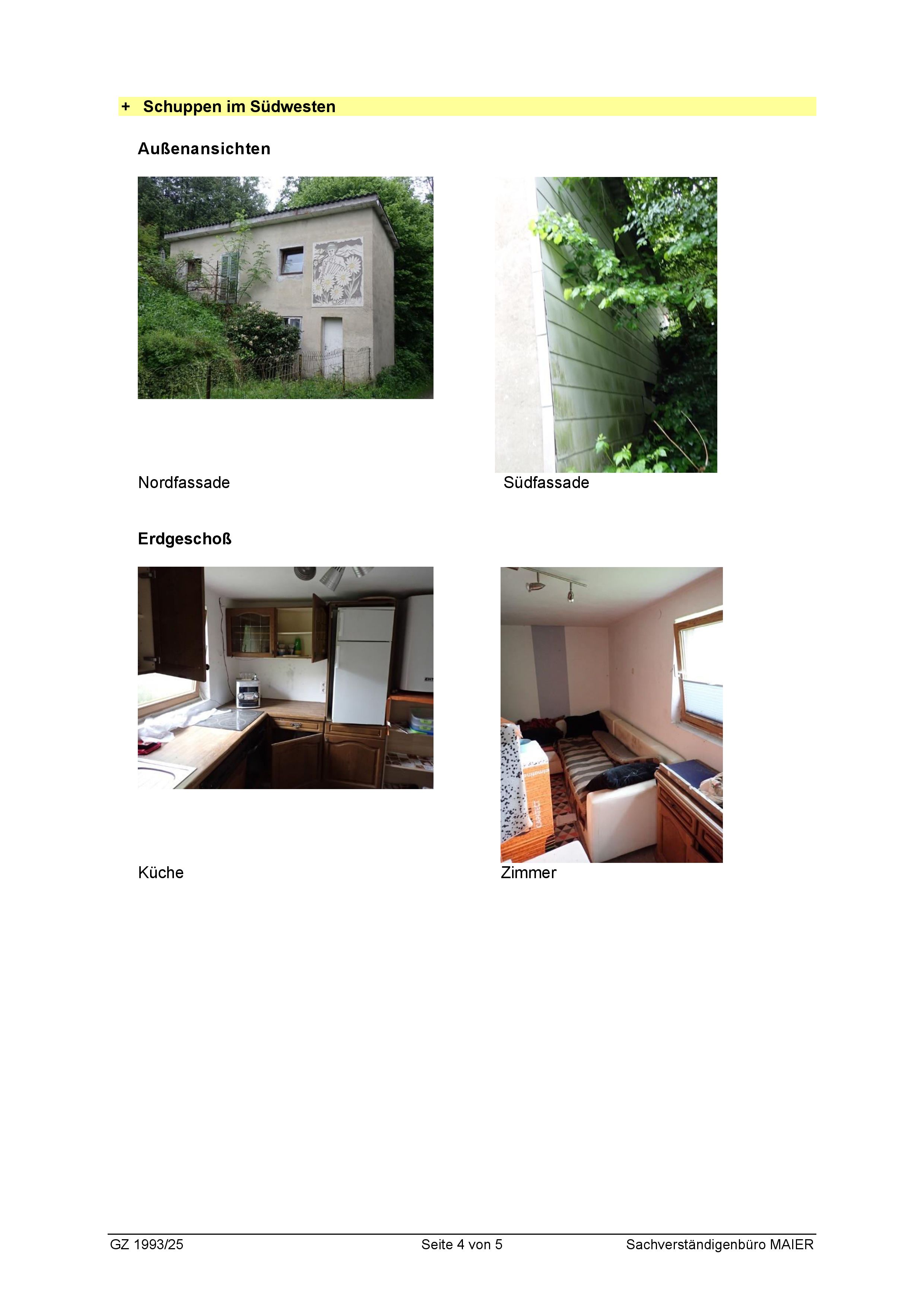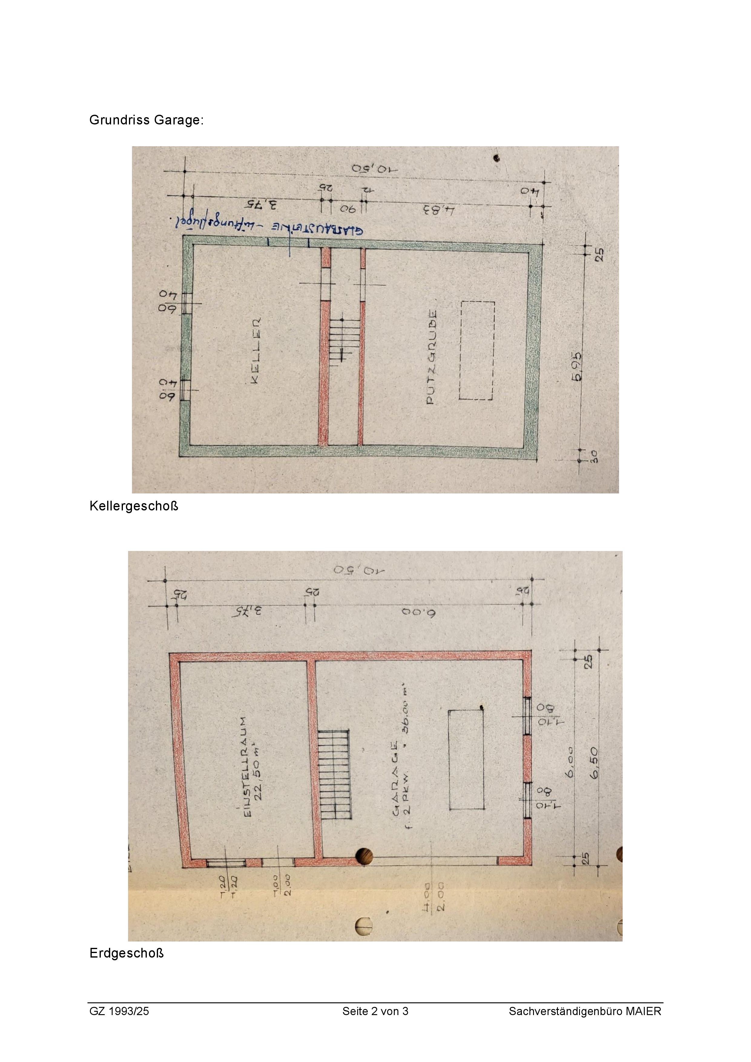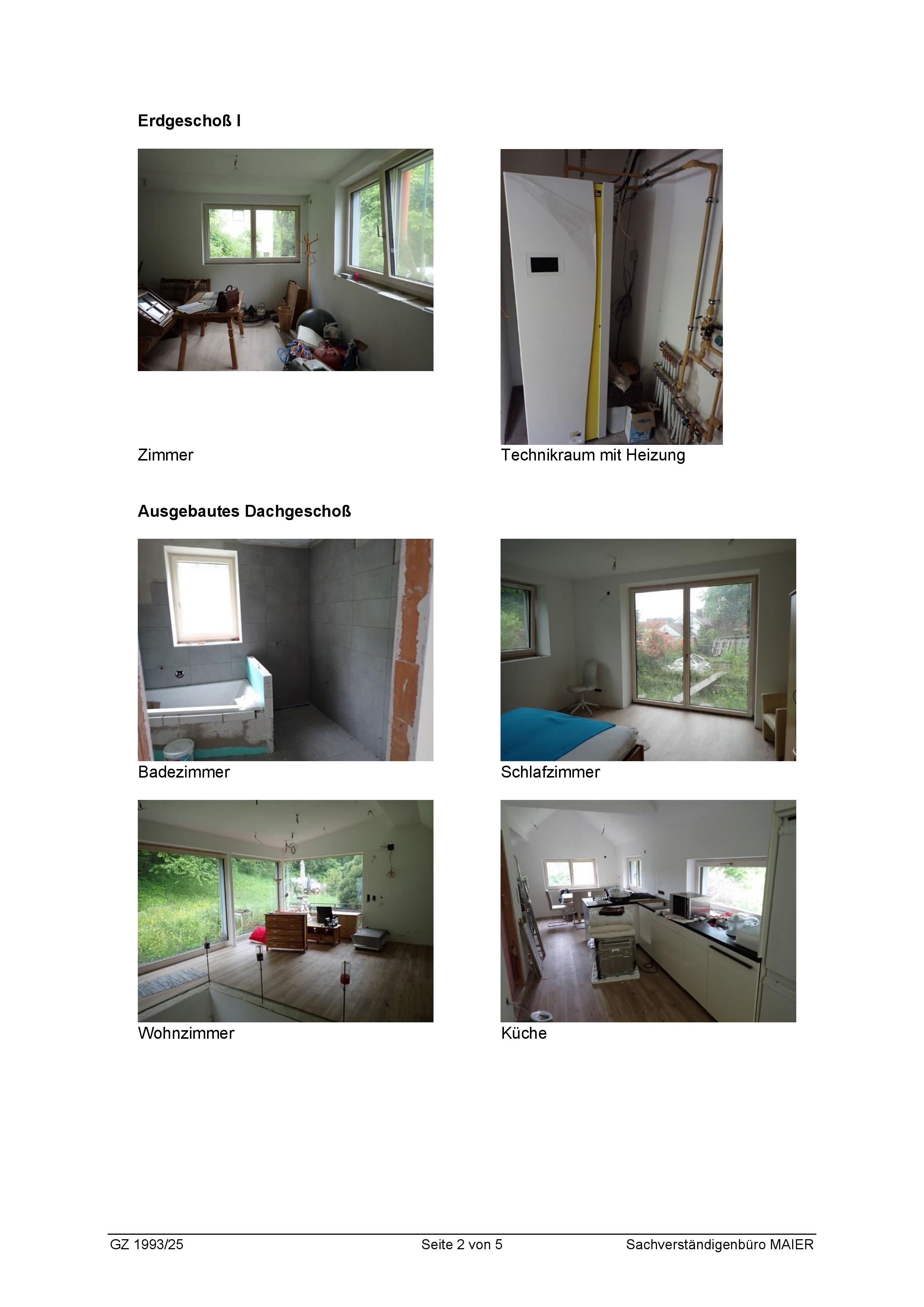 Beschreibung: | Auf der Liegenschaft bestehen ein Wohnhaus, eine Garage und ein Schuppen. Beim Wohnhaus sind ein Erdgeschoß und ein ausgebautes Dachgeschoß vorhanden. Im Erdgeschoß befinden sich ein Vorraum, ein Zimmer, ein Technikraum, ein Badezimmer und ein Schlafzimmer. Im ausgebauten Dachgeschoß befinden sich das Wohnzimmer, die Küche, ein WC und ein Abstellraum. Im Jahr 2018 wurde mit dem Zu- und Umbau des Wohnhauses begonnen; dieses Bauvorhaben ist noch nicht abgeschlossen. Bei der Garage handelt es sich um eine Doppelgarage, welche im Westen des Wohnhauses gelegen ist und besteht aus einem Erdgeschoß. Der Schuppen ist im Südwesten des Wohnhauses situiert und besteht aus einem Erdgeschoß und ist tlw. unterkellert. |