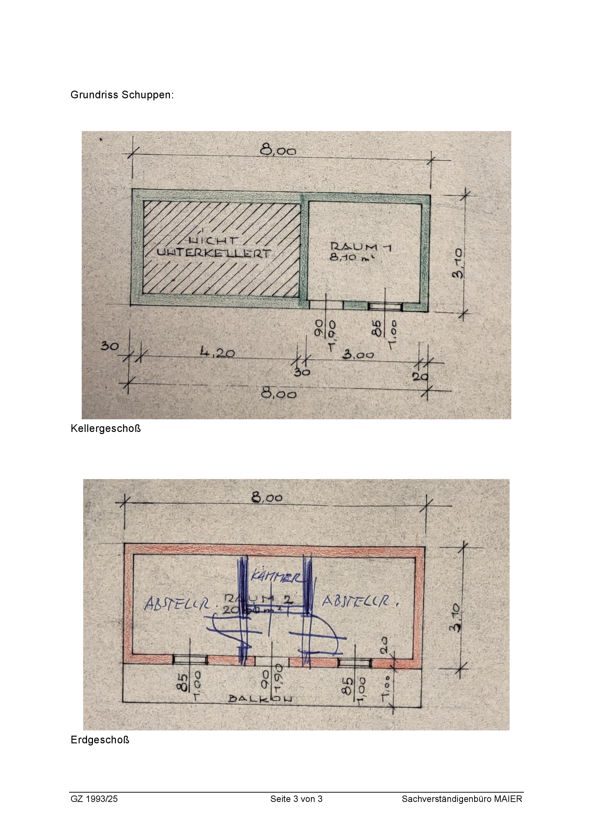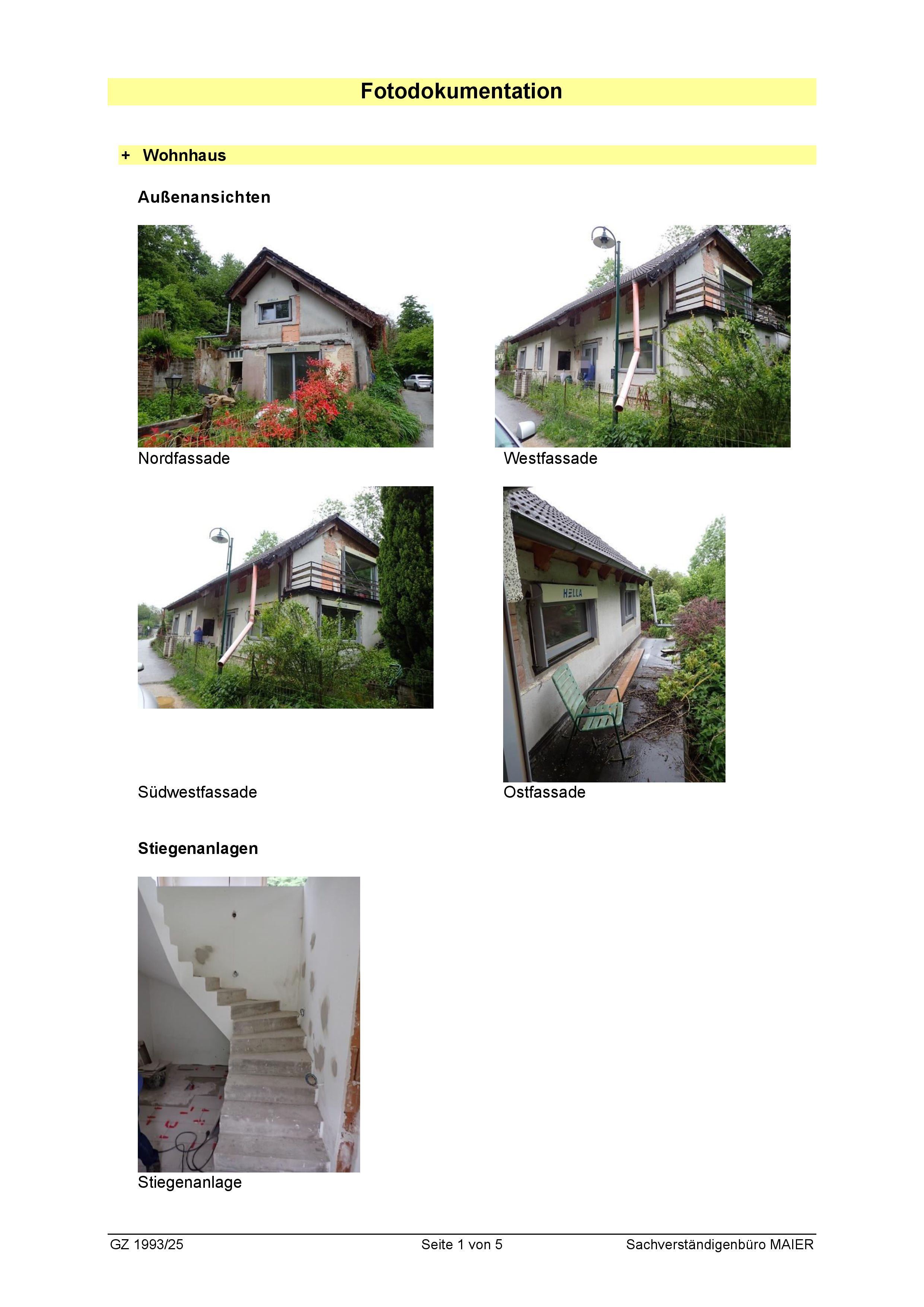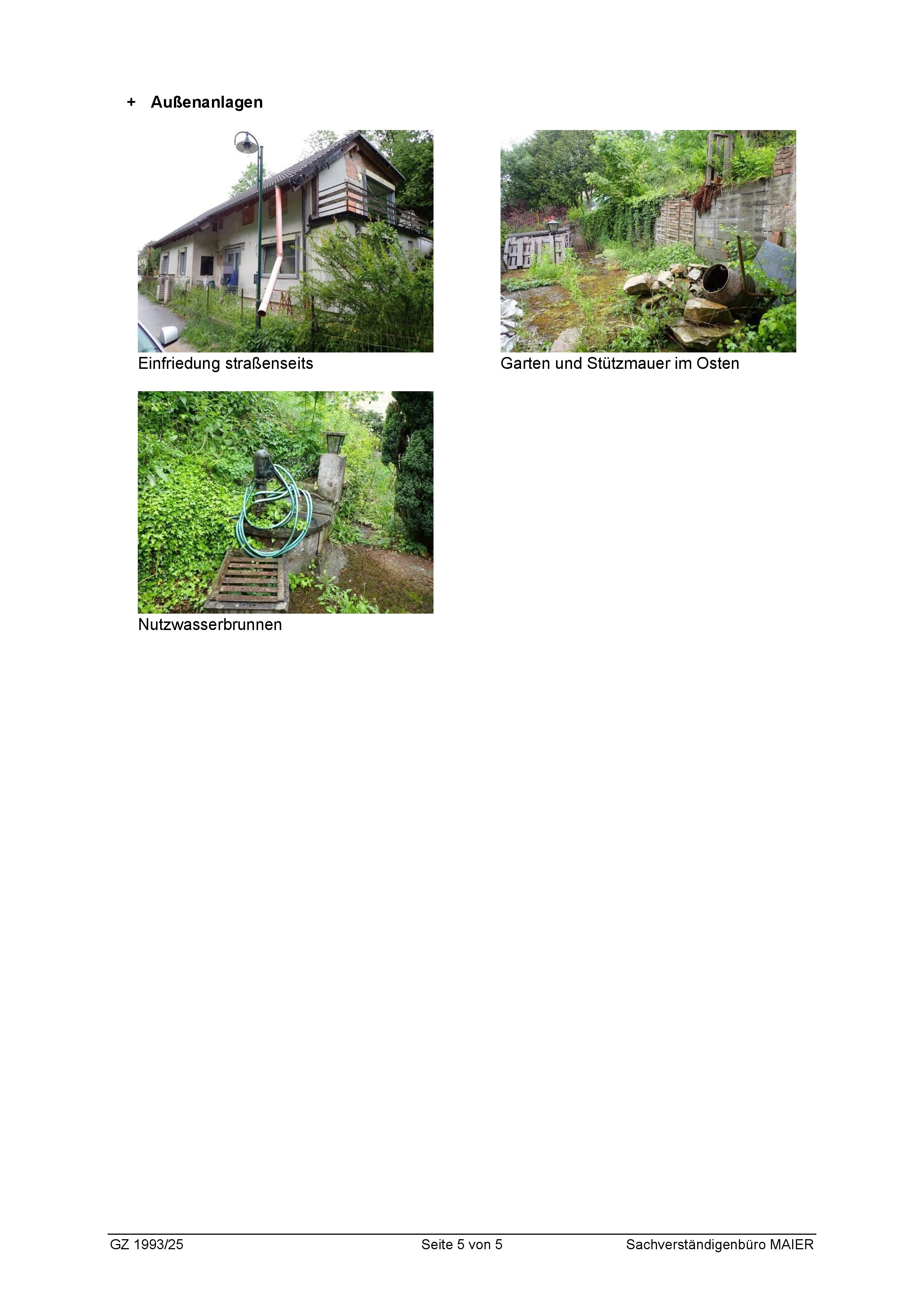 Beschreibung: | Auf der Liegenschaft bestehen ein Wohnhaus, eine Garage und ein Schuppen. Beim Wohnhaus sind ein Erdgeschoß und ein ausgebautes Dachgeschoß vorhanden. Im Erdgeschoß befinden sich ein Vorraum, ein Zimmer, ein Technikraum, ein Badezimmer und ein Schlafzimmer. Im ausgebauten Dachgeschoß befinden sich das Wohnzimmer, die Küche, ein WC und ein Abstellraum. Im Jahr 2018 wurde mit dem Zu- und Umbau des Wohnhauses begonnen; dieses Bauvorhaben ist noch nicht abgeschlossen. Bei der Garage handelt es sich um eine Doppelgarage, welche im Westen des Wohnhauses gelegen ist und besteht aus einem Erdgeschoß. Der Schuppen ist im Südwesten des Wohnhauses situiert und besteht aus einem Erdgeschoß und ist tlw. unterkellert. |
