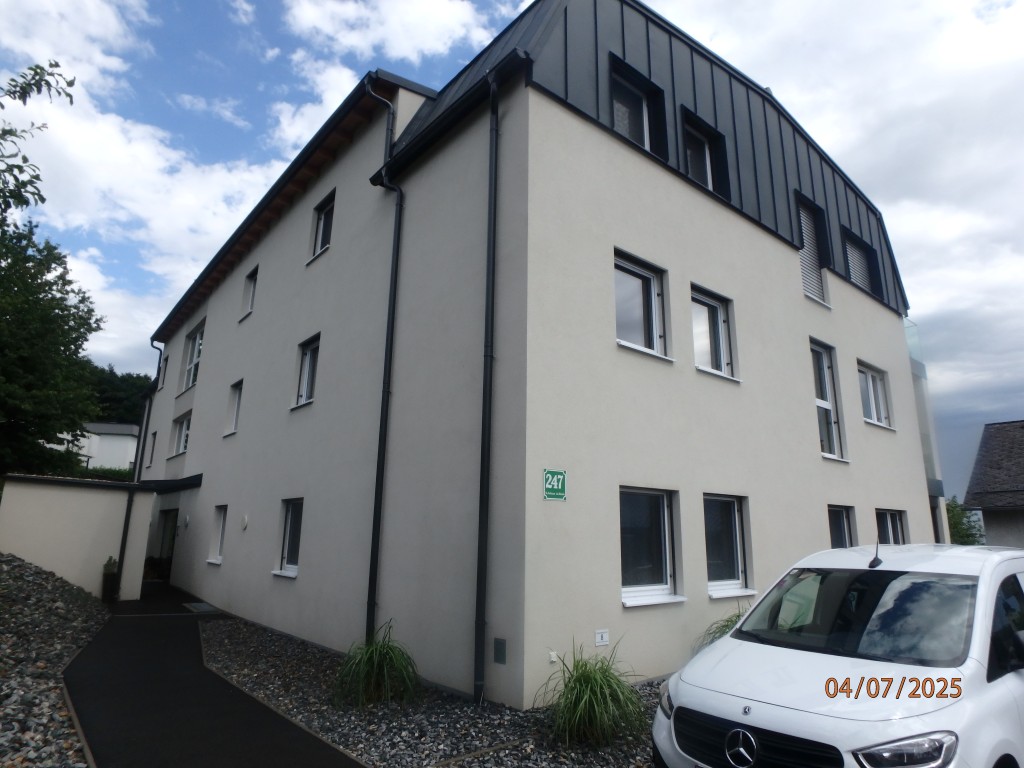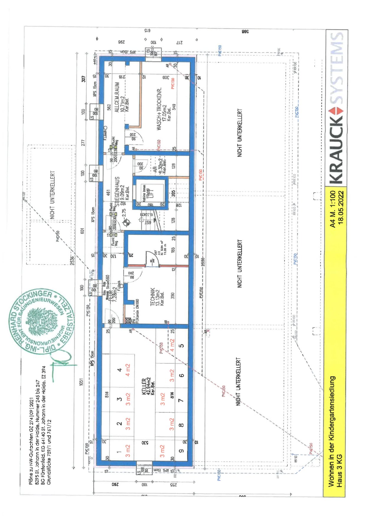 Beschreibung: | Lage: Die beiden Grundstücke der EZ 394 bilden in der Natur eine wirtschaftliche Einheit und liegen im verbauten Gebiet von St. Johann in der Haide. Die Lage der Grundstücke ist geneigt, die Figuration unregelmäßig und befinden sich auf den Grundstücken die Wohnblöcke 245, 246 und 247. Die Aufschließung und Erreichung erfolgt über eine asphaltierte Ortsstraße. Die umliegenden Grundstücke sind, soweit bekannt, mit diversen Wohn-, Wirtschafts- und Nebengebäuden bebaut. Infrastruktur: Sämtliche infrastrukturellen Gegebenheiten, wie öffentliche Haltestellen, Einkaufsmöglichkeiten für den täglichen Gebrauch, Kinderbetreuungseinrichtung, Volksschulen, Bank, etc. sind in St. Johann in der Haide vorhanden. Die nächstgrößeren infrastrukturellen Gegebenheiten befinden sich im ca. 3,5 km entfernten Hartberg. Gebäudebeschreibung / Wohnungsbeschreibung: Wie dem Baubewilligungsbescheid sowie den Planunterlagen zu entnehmen, wurden diese Wohnblöcke, bezeichnet mit Haus 1, 2 und 3, im Jahr 2016 errichtet. Auf diesen Grundstücken befinden sich die Häuser 1 bis 3, mit, soweit den Unterlagen zu entnehmen, 72 selbständigen Wohnungseigentumsobjekten, davon 26 Wohnungen und 46 KFZ-Abstellplätze. Diese Häuser sind in Massivbauweise hergestellt und bestehen aus Keller, Erdgeschoß, 1. Obergeschoß und Dachgeschoß. Die Wohnung des Verpflichteten befindet sich im Haus 3 im 1. Obergeschoß und besitzt folgende Räumlichkeiten: Wohnzimmer mit Küche, Schlafzimmer, Vorraum und Garderobe, Abstellraum, Badezimmer und WC. Dieser Wohnung angeschlossen ist eine großflächige Loggia. Die Aufschließung und Erreichung der Anlage erfolgt über eine asphaltierte Ortsstraße und sind auch Zugangs- und Zufahrtsflächen zur Gänze befestigt. Die Geschoße untereinander, Keller bis Dachgeschoß, sind über eine dreiläufige Stiege miteinander verbunden und befindet sich im Bereich der Stiege auch ein Lift, welcher sämtlich Geschoße verbindet. Der Wohnung, wie dem Nutzwertgutachten zu entnehmen, zugeordnet ist ein Kellerabteil im Kellergeschoß befindlich sowie ein überdachter KFZ-Abstellplatz im Freien mit der Bezeichnung PP 05. Dieser Stellplatz ist asphaltiert und mit einem Carport aus einer Metallkonstruktion mit Wellplatten gedeckt überdacht. An der Rückseite besteht eine Beton-mauer mit einem aufgesetzten Zaun. Der Wohnung als Allgemeinflächen zugehörig, wie bei meiner Befundaufnahme angegeben, sind zwei Technikräume, wobei sich in einem der Technikräume die Steuerung für die Photovoltaikanlage befindet, und im zweiten Technikraum ein Pufferspeicher mit geschätzt 3.000 Litern Fassungsvermögen sowie der Elektroverteiler. Weiters als Allgemeinräume ist vorhanden ein Fahrradabstellraum, welcher sich im Eingangsbereich befindet, und wo eine Überdachung aus einer Alukonstruktion mit Glas besteht. Außenanlagen: Aufgrund der Niveauunterschiede sind Ausgleichs- / Stützmauern hergestellt, im Bereich der Loggien / Terrassen im Erdgeschoß mit einem Metallzaun. Zugang und Zufahrtswege sind asphaltiert mit Randleistenabschluss und bestehen im Anschluss an die Wege Schotterflächen. Die nicht bebauten und befestigen Flächen stellen eine Grünzone dar. Festgehalten wird, dass auch diese sich in einem guten und gepflegten Zustand zeigen. |