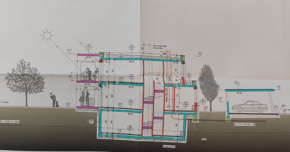 Beschreibung: | Die bewertungsgegenständlichen Wohnungseigentums-Objekte Reihenhaus Top 3 (B-LNR. 41), KFZ-Stellplatz 5 (B-LNR. 42) und KFZ-Stellplatz 6 (B-LNR. 43) befinden sich an der Brodersdorfer Straße 52 in 2442 Ebreichsdorf und sind zugehörig der Liegenschaft mit dem Grundbuchskörper der Katastralgemeinde KG 04113 Unterwaltersdorf mit der Einlagezahl EZ 376 und dem Grundstück mit der Grundstücksnummer Gst-Nr. 660/1 mit einer Grundstücksfläche von 1.641 m². Die WEG-Objekte stehen im Eigentum der SKORA Immobilien GmbH (FN 477489s) mit der B-LNR 41, 42 und 43 und den Anteilen 181/1026, 5/513 und 1/114. Der Baukörper wurde im Jahr 2015 in Massivbauweise erbaut. Der Bescheid mit der Baubewilligung für die Errichtung einer Reihenhausanlage wurde am 31.10.2014 von der Stadtgemeinde Ebreichsdorf ausgestellt und am 09.08.2019 wurde von der Stadtgemeinde Ebreichsdorf die Bestätigung der Teil-Fertigstellung für das WEG-Objekt Reihenhaus Top 3 ausgestellt. Das Reihenhaus liegt mittig in der Reihenhausanlage und besteht aus einem Kellergeschoß, einem Erdgeschoß und einem Obergeschoß. Die Gesamtwohnnutzfläche (EG & OG) des Reihenhauses beträgt 113,00 m² (gemäß Nutzwertgutachten 19.11.2015). Dem Reihenhaus zugehörig sind die überdachten KFZ-Stellplätze 5 und 6, die straßenseitig nordöstlich des Reihenhauses unter dem Carport situiert sind. Insgesamt befindet sich das Gebäude augenscheinlich in einem sehr guten Bau- und Erhaltungszustand. Es konnten keine offensichtlichen Baumängel oder -schäden festgestellt werden. Aktuell sind die WEG-Objekte bis 30.06.2029 befristet vermietet. |