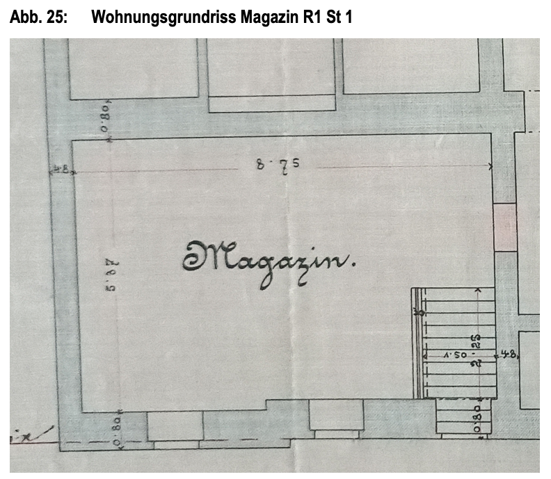Beschreibung: | Das Objekt Magazin R1 St 1 liegt im Kellergeschoss und wird direkt von der Herminengasse, links des Hauseingangs, über eine niedrige Kunststofftüre betreten. Über die anschließende Holztreppe ohne Geländer gelangt man in ein mit Estrich und verputzten Wänden ausgestattetes Magazin. Die Wände und die bogenförmige Decke sind verputzt. Straßenseitig sind auf Straßenebene zwei kleine Kunststofffenster verbaut. Das Objekt verfügt über einen Stromanschluss. Eine Beheizung erfolgt nicht. Augenscheinlich gibt es Schäden durch Feuchtigkeit. Der Gesamterhaltungszustand des Objektes ist als durchschnittlich zu bezeichnen. Eine Überprüfung der technischen Einrichtungen wurde im Rahmen der Befundaufnahme nicht durchgeführt. |