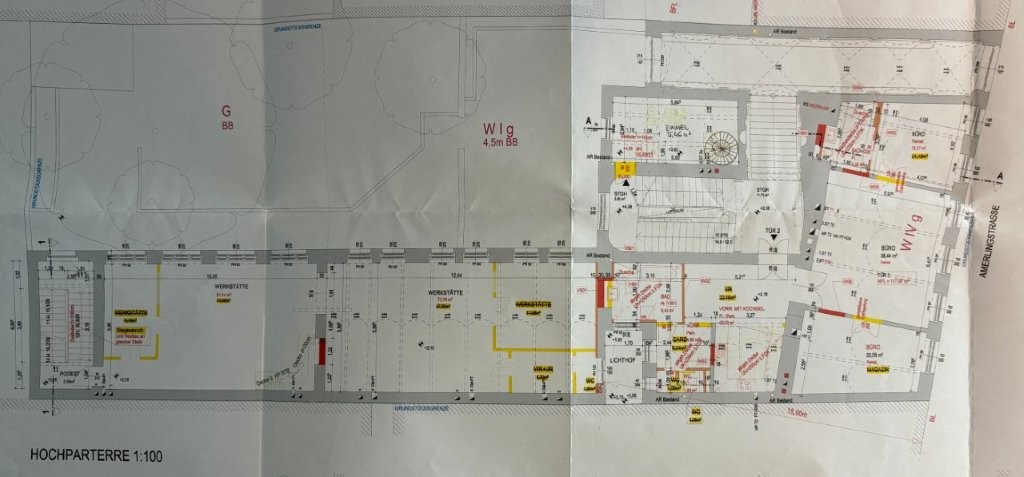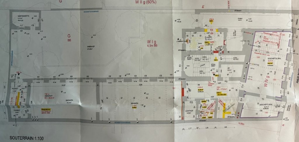 | Beschreibung: | Die gegenständliche Einheit befindet sich im Erdgeschoß (Souterrain) und erstreckt sich zum Hochparterre (1.Stock). Der Zugang lt. Plan erfolgt über den straßenseitigen Durchgang im Souterrain. Die Fenster der Einheit sind Richtung Südwesten ausgerichtet. Ein Querlüften ist nicht möglich. Widmung: Wohnung Zum Zeitpunkt der Befundaufnahme konnte der Sachverständige bei der Einheit nur feststellen, dass diese als Allgemeiner Teil, nämlich als Fahrradabstellraum genutzt wird. Ein Zugang zum Hochparterre war nicht möglich. Ein Teil im Erdgeschoß war abgetrennt. Dem Sachverständigen wurden von der Hausverwaltung Pläne hinsichtlich eines Dachgeschoßausbaues samt Aufstockung übermittelt. Lt. diesen Plänen soll die Einheit zu einem Fahrradabstellraum umwidmet und ein Teil für einen Lifteinbau verwendet werden. Es dürfte sich um Vorbereitungsarbeiten für einen Lifteinbau handeln. Der Sachverständige geht jedoch von einem Bestehen des Eigentumsrechtes an dieser Einheit aus. Es wurden ihm keine Informationen erteilt, dass das Eigentumsrecht aufgehoben oder beschränkt werden soll. Installationen (Elektro, Heizung, Sanitär) sind nicht vorhanden bzw. unbrauchbar. Auf die Ausführungen im Langgutachten wird hingewiesen. |