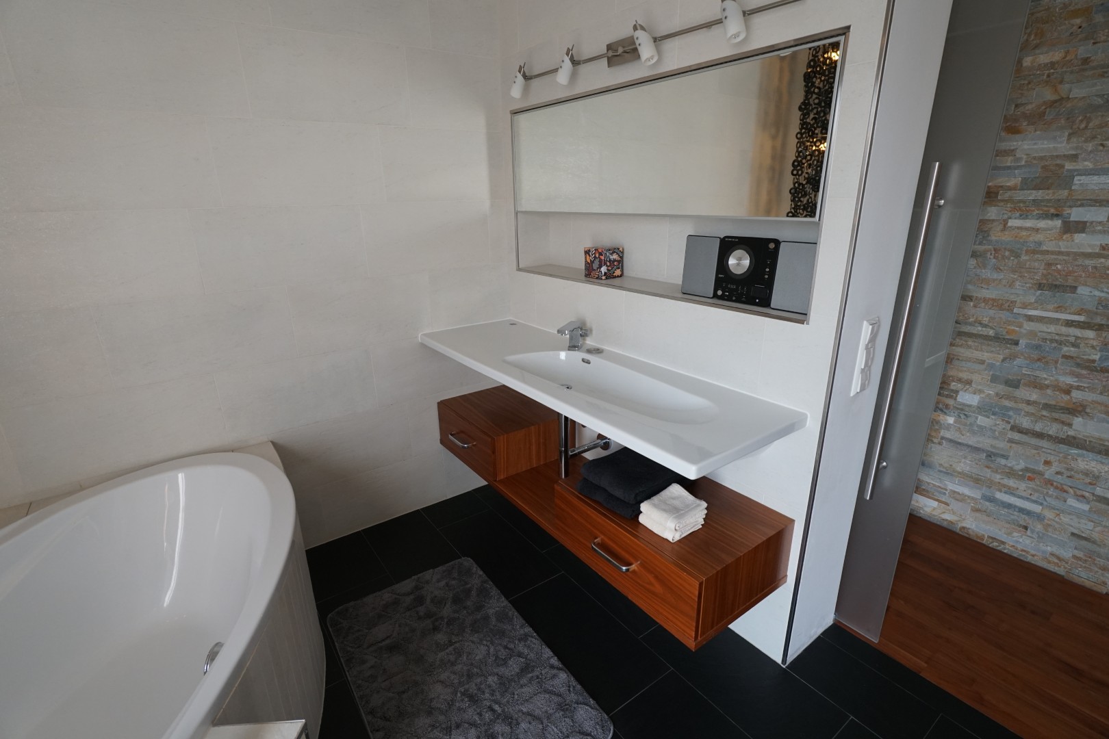 Beschreibung: | Bewertungsgegenstand bilden die Wohnung W14 im 3. Obergeschoss der Liegenschaft Andritzer Reichstraße 47 samt den Tiefgaragenabstellplätzen KFZ-AP P 6 und KFZ-AP P 7. Gemäß den von Seiten der Hausverwaltung übermittelten Unterlagen wurde das bewertungsgegenständliche Gebäude 2007 durch Um- und Zubaumaßnahmen zu 16 Wohneinheiten sowie 2 gewerblich genutzten Einheiten umgebaut. Weiters wurden 19 Abstellplätze in der Tiefgarage sowie 7 Abstellplätze in Freiaufstellung errichtet. Das dritte Obergeschoss wurde in Holzriegelbauweise ausgeführt. An der Fassade wurde ein Wärmedämmverbundsystem ausgeführt. Die Fenster wurden als Kunststofffenster ausgeführt. Als Sonnenschutz dienen außenliegende Rollläden. Die vertikale Erschließung erfolgt über ein zentrales Stiegenhaus samt Aufzugsanlage. Die Wohnung umfasst einen Vorraum, ein Wohn-/Esszimmer samt Kochnische, ein Badezimmer, drei Schlafzimmer wobei an das Zimmer 2 ein Abstell-/Schrankraum angeschlossen ist, ein WC und einen Abstellraum. Weiters sind der Wohnung an der Nord-, Ost-, Süd- und Westseite Terrassen vorgelagert. Zusätzlich besteht lt. Parifizierungsgutachten die Möglichkeit eine Stiegenaufgang in Form einer Wendeltreppe zu errichten und die über der Wohnung gelegene Dachfläche ebenfalls als Terrasse auszubauen und zu nutzen. Die ist derzeit jedoch noch nicht ausgeführt. Der Fußboden in den Wohnbereichen wurden als Parkettboden ausgeführt. Im Vorraum, der Kochnische sowie in den Naßräumen wurden die Bodenflächen und teilweise die Wandflächen mit keramischen Platten ausgelegt. Die Wand- und Deckenflächen sind mit Ausnahme der Nassräume und des Gang und Wohnzimmerbereiches, weiß gemalen. Im Wohnzimmer sowie im Gang wurde teilweise die Wände mit Verblendsteinen verkleidet. Im Badezimmer und im WC sind die erforderlichen Sanitäreinrichtungsgegenstände vorhanden. Eine Kontrolle auf Funktionstüchtigkeit hat im Zuge der Befundaufnahme nicht stattgefunden. |