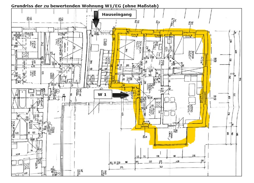 Beschreibung: | Die gegenständliche Liegenschaft EZ 98, KG 42001 befindet sich im Ortsteil Ahorn der Stadtgemeinde Bad Ischl, rund 1 km westlich des Stadtzentrums von Bad Ischl. Die Liegenschaft ist mit dem Wohnhaus Lärchenwaldstraße 18 und einem Carport für 8 PKW bebaut. Insgesamt befinden sich im Wohnhaus 8 selbständige Wohnungen. Zufahrt und Zugang zur Liegenschaft erfolgen über die öffentliche Lärchenwaldstraße. Die nächsten Haltestellen vom öffentlichen Bus befinden sich in fußläufiger Entfernung. Das nächste Geschäft mit Waren für den täglichen Bedarf (Nahversorgung) befindet sich im Stadtzentrum, rund 1,5 km entfernt. Die Lage kann als sonnig und ruhig bezeichnet werden. Die zu bewertende Wohnung W 1/EG befindet sich im Erdgeschoß des östlichen Gebäudeteiles. Dieser Teil wurde im Jahr 1996 zur Gänze neu errichtet. Die Wohnung ist von den anderen Wohnungen im EG durch das Stiegenhaus bzw. durch den Laubengang getrennt und grenzt somit an keine Nachbarwohnung an. Das Wohnzimmer und die Küche sind nach Süden ausgerichtet. |
