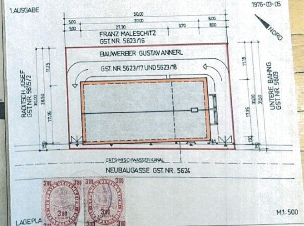 | Beschreibung: | Lage: Dieses Grundstück mit dem darauf befindlichen Hallengebäude und Kellerbereich liegt am Ortsrand von Purbach, am Kreuzungspunkt Untere Bahngasse zur Neubaugasse. Parallel zur Straße „Untere Bahngasse“ verläuft die ÖBB-Bahnlinie und befindet sich in unmittelbarer Nähe der Bahnhof. Die sonstigen umliegenden Grundstücke sind mit diversen Wohn-, Neben- und Hallengebäuden bebaut bzw. südwestseitig sind die Grundstücke noch unbebaut. Infrastruktur: Sämtliche infrastrukturelle Gegebenheiten, wie Gaststätten, Einkaufsmöglichkeiten für den täglichen Gebrauch, Kinderbetreuungseinrichtungen, Schulen, Banken, Ärzte sowie öffentliche Haltestellen sind in Purbach am Neusiedler See bzw. in näherer Umgebung vorhanden. Gebäudebeschreibung - Hallengebäude: Vorliegend für dieses Grundstück ist eine Bauplatzerklärung aus 1976 sowie eine Baubeschreibung mit gewerbebehördlicher Bewilligung samt Plan, gleichfalls aus 1976. Eine Benützungsbewilligung liegt mir nicht vor. Weiters vorliegend ist ein Bescheid (Baubewilligung betreffend den Abbruch des Bestandsgebäudes und Errichtung einer Wohnhausanlage mit Tiefgarage) vom 01.02.2023 sowie ein Berufungsbescheid. Dieser Bescheid wurde von der Gemeinde nie abgeholt und ist daher abgelaufen und nicht in Rechtskraft gewachsen. Wie dem Einreichplan zu entnehmen, ist eine Halle vorhanden mit einem Anbau im Kopf-teil, in welchem Bereich Büroräumlichkeiten mit einer Unterkellerung hergestellt werden sollten. Errichtet ist ausschließlich die Halle mit dem Keller. Der Bürobereich (Erdgeschoss/Obergeschoss) ist nicht vorhanden. Sowohl Halle als auch Keller haben rechteckige Grundrissform und sind massiv errichtet. Abgesehen von einem Büroeinbau in der Hal-le, welcher in Leichtbauweise hergestellt ist. Die Aufschließung und Erreichung ist zweiseitig gegeben (Untere Bahnstraße und Neubaugasse), nachdem es sich um eine Eckparzelle handelt. Außenanlagen und Einfriedungen: Zur Straße „Untere Bahngasse“ hin vorhanden ist eine Einfriedung aus einem Betonsockel und sind in diesem Bereich die öffentlichen Ver- und Entsorgungsleitungen ersichtlich. Ein Zufahrtstor ist nicht vorhanden. Eine weitere Einfriedung besteht nordwestseitig bzw. nordostseitig aus Einfriedungsmauern mit unterschiedlichen Höhen und ist die Mauer nordwestseitig mit Ziegeln abgedeckt. Der gesamte Hofbereich ist großteils befestigt – asphaltiert. An der Rückseite wurde mit einer Fundierung begonnen (Zweck unklar), wo die Beweh-rung und die Randverschalung angebracht sind. Im Bereich des Kellers ist über der Decke Betonplattenbelag verlegt und ist das gesamte restliche Grundstück mit Bauzaun abge-grenzt. |