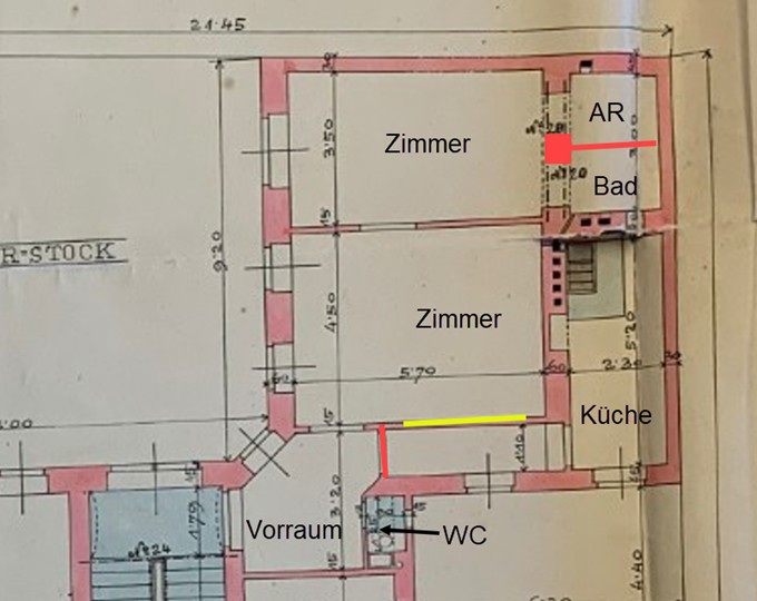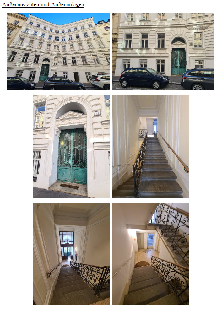 | Beschreibung: | Die ggst. Liegenschaft EZ 1077 besteht aus dem GST 1026, ist eine relativ eben gelegene, polygonal ausgestaltete Mittelliegenschaft, die an der Marokkanergasse über eine Straßenfrontlänge von rd. 23 m verfügt. Lt. Grundbuch verfügt die ggst. Liegenschaft über eine Grundstücksfläche von 660 m². Auf der Liegenschaft befindet sich ein um 1893/1894 errichtetes, als Gründerzeit-Seitenflügelhaus ausgeführtes, Wohn- und Geschäftshaus. Das Gebäude verfügt über ein Kellergeschoß, ein Souterrain, 4 Geschoße über Niveau (EG/HP-3. OG) und zwei nachträglich ausgebaute Dachgeschoße. Die Erschließung erfolgt über eine Stiege. Ein Aufzug ist vorhanden. Die ggst. Wohnung W 12 befindet sich im 2. Stock. Die Fenster sind ausschließlich (licht)hofseitig ausgerichtet. Ein Personenaufzug ist vorhanden. Die, in natura vorgefundene Situation stimmt (hinsichtlich der Durchgänge, Konfiguration, Raumwidmungen) nicht ganz mit den Planunterlagen (baurechtlicher Konsens) überein. Dem-nach (lt. Nutzwertgutachten) verfügt Top 12 auch über kein Bad. Die abweichenden Bauführungen (abgeänderte Durchgänge, Errichtung Abstellraum und Badeinbau) dürften konsenslos errichtet worden sein – hierfür ist idR eine Bauanzeige notwendig. Die ggst. Wohnung befindet sich insgesamt in einem ordentlichen-guten Erhaltungszustand. Die Ausstattung (Technik/ Oberflächenmaterialen, etc.) ist mit Ausnahme des Bades etwas veraltet und entspricht nicht mehr den Vorstellungen/ Erwartungen an modernes Wohnen. Die Belichtung der Wohnung bzw. des Wohnzimmers ist aufgrund des darüberliegenden (nachträglich errichteten) Balkons insgesamt schlecht bzw. ist die Wohnung sehr dunkel. |
