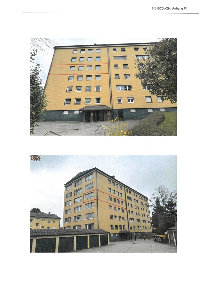 | Beschreibung: | Der gegenständliche Wohnblock besteht aus einem Kellergeschoss, und sechs Wohngeschossen (EG, 1-5.OG) und einem Dachboden. Das Wohngebäude ist über ein zentrales Stiegenhaus, mit im rechten Winkel angeordneten zweiläufigen geraden Stiegen und einem daneben liegenden Personenaufzug (4 Personen), aufgeschlossen. Der Wohnblock ist in massiver Bauweise ausgeführt; die Dachkonstruktion ist ein Mansarddach. Die gegenständliche Wohnung 22 im 3.Obergeschoss liegt im Nordosten des Wohnhauses und besitzt Fensteröffnungen sowohl im Nordosten wie auch im Südosten. Durch die nördliche Ausrichtung der Wohnung ist die Wohnung durch die ÖBB-Westbahnstrecke lärmbeeinträchtigt. KFZ-Abstellplätze sind keine vorhanden. |