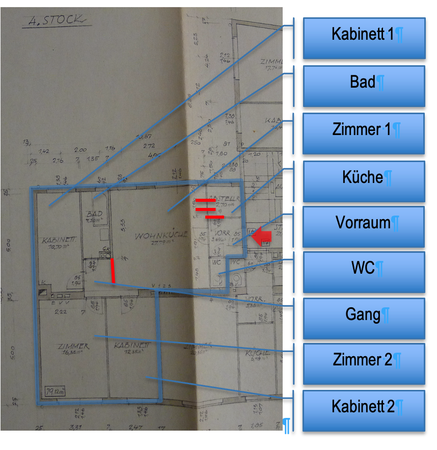 | Beschreibung: | Die bewertungsgegenständliche Wohnung Top 16 ist im 4. Obergeschoss der Liegenschaft situiert und wird vom allgemeinen Gang über eine einflügelige Holztür mit Sicherheitsschloss betreten. Die Wohnung gliedert sich in einen Vorraum, ein WC, eine Küche, einen Gang, ein Bad, zwei Kabinette und zwei Zimmer, ist sowohl straßen- (in Richtung Leebgasse) als auch hofseitig ausgerichtet. Die Fenster sind ebenfalls in diese Richtungen orientiert. Ein Querlüften ist aufgrund der Konfiguration der Wohnung möglich. Die Beheizung erfolgt mittels einer Hauszentralheizung sowie Radiatoren in allen Räumen der Wohnung außer dem Vorraum, dem WC, der Küche und dem Gang. Ein Kellerabteil ist laut Aussage des anwesenden Sohnes der verpflichteten Parteien vorhanden. Das Objekt verfügt über Strom-, Wasser- und Kanalanschluss. |