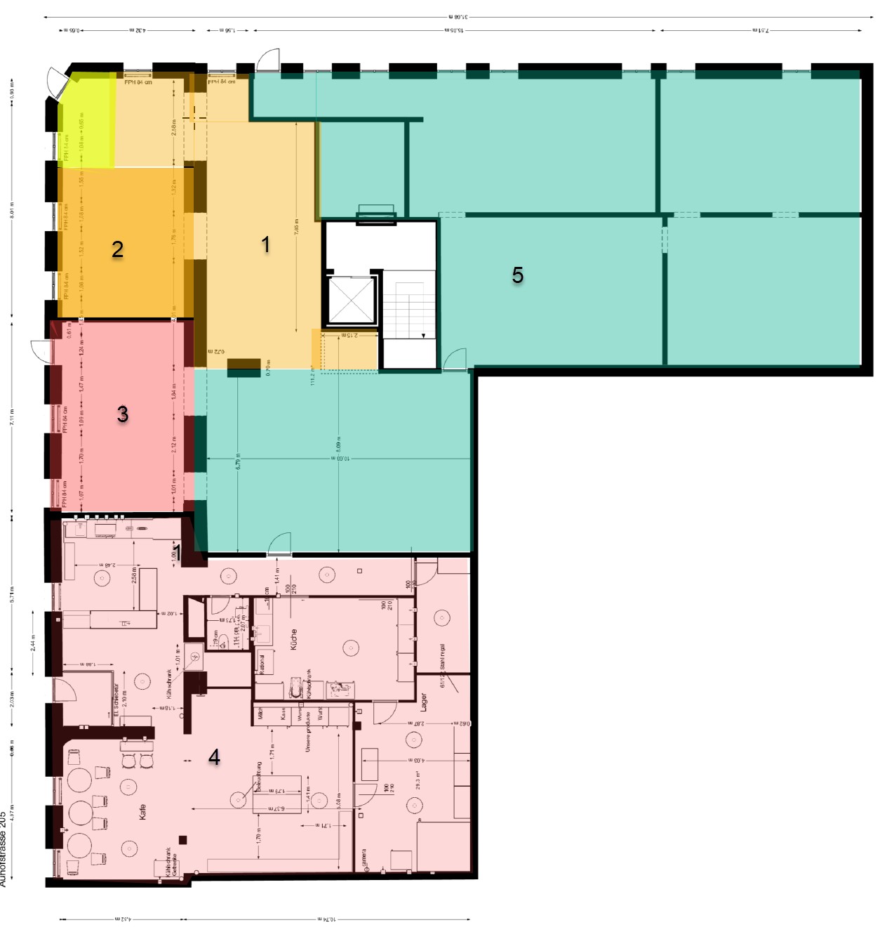 | Beschreibung: | Die ggst. Eckliegenschaft EZ 21, bestehend aus dem GST 57, ist entlang der Auhofstraße relativ eben gelegen, im Bereich der Aichbühelgasse und Lilienberggasse in leichter Hanglage gelegen, polygonal konfiguriert und verfügt lt. Grundbuch über eine Grundstücksfläche von 2.104 m². Auf der Liegenschaft befindet sich ein ursprünglich um 1781 und 1848 erbautes Gassenfronten-haus, welches im Laufe der Jahre erweitert und umgebaut wurde und zwischendurch auch als Hotel genutzt wurde. Der letzte Zu- und Umbau zu der aktuell bestehenden Wohnhausanlage erfolgte zwischen 2014-2017. Das Gebäude ist U-förmig angelegt und verfügt über ein Untergeschoß, 4 Geschoße über Niveau (EG, 1.-3. OG) sowie ein ausgebautes Dachgeschoß. Die vertikale Erschließung erfolgt über 2 Stiegen. Aufzüge sind an jeder Stiege vorhanden. Das Wohnhaus umfasst 37 Wohnungen, 2 Geschäftslokale (eines davon ist das bewertungsgegenständliche WE-Objekt), 32 KFZ-Tiefgaragenstellplätze sowie 3 Motorradstellplätze. Das ggst- WE-Objekt ist eigentlich nur über die Straße zugänglich. Die ggst. Lokal 201A befindet sich im EG und tlw. im Souterrain (da das Niveau tlw. unter Straßenniveau ist) an der Stiege 2 und ist ausschließlich straßenseitig auf die Auhofstraße und die Aichbühelgasse ausgerichtet. Insgesamt gibt es 4 straßenseitige Zugänge zum ggst. WE-Objekt. Ein Aufzug ist zwar im Haus vorhanden, im ggst. Fall aber nicht von Relevanz. Das ggst. WE-Objekte (mit Geschäftslokalwidmung) wurde baulich in 4 bzw. 5 Bestandobjekte (Geschäftslokale und Airbnb/Apartment) unterteilt. Die innere Raumeinteilung entspricht daher überhaupt nicht mehr dem baurechtlichen Konsens und auch nicht dem Grundbuchstand. Die Bauführungen/baulichen Veränderungen dürften allesamt konsenslos erfolgt sein, da sich im Bauakt bzw. im Überwachungsakt der MA 37 keinerlei Unterlagen dazu finden.. Aufgrund der erfolgten inneren Abteilungen entspricht die aktuelle Nutzfläche nicht mehr der Nfl. gem. NWG. Die ggst. Geschäftslokal wurde baulich in 4 bzw. 5 Bestandobjekte unterteilt und zwar in ein Fahrradgeschäft, einen Extraraum, zwei Tattoo-Studios und ein/e Airbnb-Objekt/Apartment. Die Nutzfläche beträgt insgesamt rd. 531 m², die sich mit rd. 79 m² auf die beiden Tattoo-Studios, mit rd. 202 m² auf das Fahrradgeschäft mit Extraraum und mit rd. 250 m² auf das Airbnb-Objekt aufteilen. Die ggst. Bestandobjekte verfügen über alle notwendigen Ver- und Entsorgungseinrichtungen. Die Oberflächenmaterialien & die technische Ausstattung entsprechen den Anforderungen der ggst. Nutzungen. Die ggst. Bestandobjekte sind insgesamt ordentlich-gut ausgestattet |