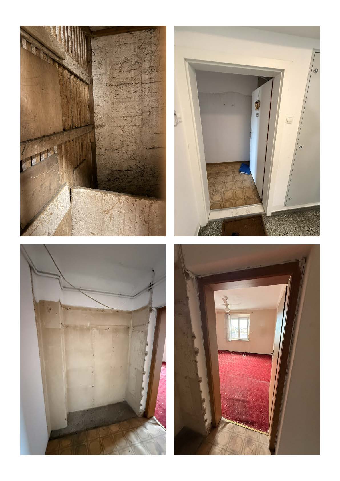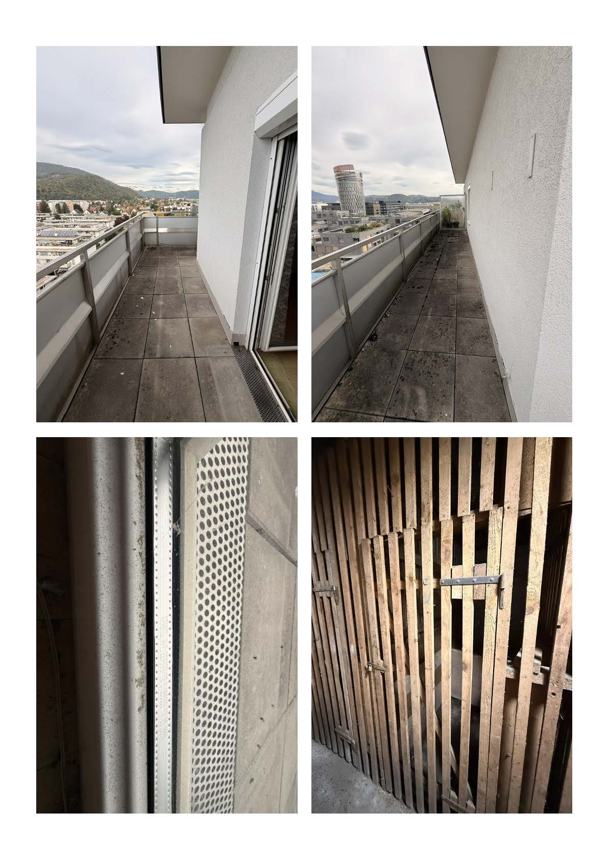 | Beschreibung: | Die Liegenschaft, mit der EZ 1251 der KG 63104 Lend, auf der sich der Bewertungsgegenstand befindet, hat ein Gesamtausmaß von 1.770 m² (lt. Grundbuchsstand) und ist mit einem Mehrparteienhaus bebaut. Auf dem Grundstück befinden sich die öffentliche Kanalisation, ein Trinkwasseranschluss und das Stromnetz des örtlichen EVU. Ein Anschluss an das Fernwärmenetz befindet sich ebenfalls am Grundstück. Das Ferngasnetz befindet sich in Grundstücksnähe. Es wurden keine Abgabenrückstände hinsichtlich Kanalgebühren und Grundsteuer bekanntgegeben. Die bewertungsgegenständliche Wohnung befindet sich im obersten Stockwerk eines mehrgeschossigen Gebäudes und verfügt über eine großzügig dimensionierte, längs verlaufender Dachterrasse. Die Erschließung erfolgt über das gemeinschaftlich genutzte Stiegenhaus samt Aufzugsanlage. Beim Betreten der Wohnung gelangt man zunächst in einen Vorraum bzw. Flur, in dem sich Nischen befinden, die ehemals offenbar als Garderobe genutzt wurden. Der Wohnbereich ist mit einem roten Textilboden ausgelegt. Es befinden sich darüber hinaus eine Küche und zwei weitere Zimmer in der Wohnung. Die Küche befindet sich in einem entkernten Zustand; ein Fliesenspiegel sowie Anschlüsse für Wasser, Abwasser und Strom sind vorhanden. Das Badezimmer ist klein und mit einer Duschkabine sowie einem an der Wand montierten Boiler ausgestattet. Das WC ist separat angeordnet. In den Wohnräumen sind Heizkörper vorhanden. Die Wärmeversorgung ist über einen Fernwärmeanschluss möglich. Der Zugang zur Dachterrasse erfolgt über ein großes Türelement. Die Innenwände sind überwiegend gespachtelt und gestrichen. Die Innentüren bestehen aus furnierten Türblättern mit Holzzargen. Die Fenster bestehen aus Kunststoff-Isolierglas und sind mit Rolllädenausgestattet. Die der Wohnung zugehörige Dachterrasse ist mit Beton- bzw. Steinplatten belegt. Das Geländer besteht aus Metall und ist mit opaken Füllungen versehen. Die Entwässerung erfolgt über eine Rinne mit Dränageprofil. Die Funktionstüchtigkeit der Abdichtung oder der Unterkonstruktion konnte nicht überprüft werden. Zur Wohnung gehört ein Kellerabteil, das aus einem Holzlattenverschlag mit einfachem Riegelschloss besteht. Der Zustand wirkt gebraucht, jedoch ohne auffällige Feuchte- oder Schimmelschäden. Die Wohnung befindet sich in einem weitgehend unsanierten Zustand mit deutlichen Spuren früherer Nutzung. An der Decke sind Anschlüsse für Leuchten sichtbar. Im Vorraum und Flur sind ältere PVC-Böden in Fliesenoptik verlegt. Die Wände sind teilweise gespachtelt, mit Abriebspuren und sichtbaren Installationsnachläufen. Die Innentüren bestehen aus furnierten Türblättern mit Holzzargen, zeigen jedoch Kantenabstöße und altersbedingte Abnutzungsspuren. Insgesamt entspricht der Innenausbau dem Stand einer unsanierten Bestandswohnung und lässt Oberflächenerneuerungen wie Bodenbelagserneuerung, Malerarbeiten und punktuelle Putzarbeiten u.a. als erforderlich erscheinen, bevor eine erneute Nutzung sinnvoll möglich ist. Die Betriebskosten inkl. Verwaltungskostenpauschale für die Wohnung Top W 38 betragen lt. Vorschreibung der Hausverwaltung ab 01.01.2025 monatlich EUR 159,60 (exkl. 10% Ust). Der Betrag für die Instandhaltung für die Wohnung Top W 38 beträgt lt. Vorschreibung der Hausverwaltung ab 01.01.2025 monatlich EUR 22,80. Der Reparaturrücklagenstand weist zum Stichtag 31.12.2024 ein Rückstandssaldo von EUR 33.018,70 auf. Die Heizkosten konnten nicht erhoben werden. Für dringend zu erledigende Reparatur-, Instandhaltungs- und Modernisierungsarbeiten wurden Kosten in der Höhe von EUR 40.000,00 in Ansatz gebracht und vom Vergleichswert abgezogen. |