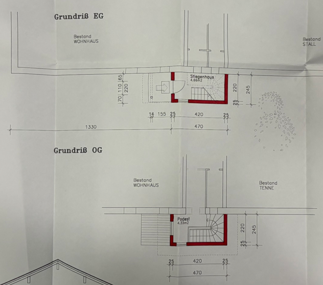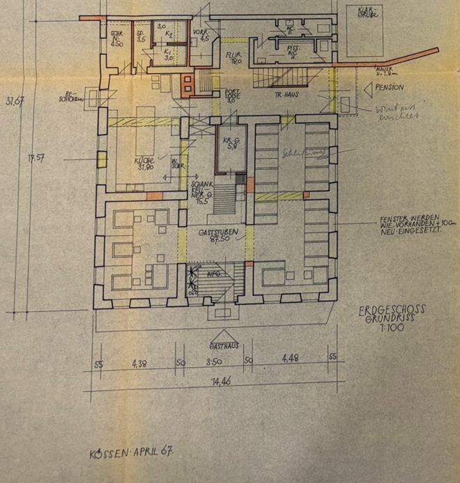 | Beschreibung: | Die bewertungsgegenständliche Liegenschaft in EZ 1547, welche sich in Kössen direkt an der B176 be-findet, stellt ein Grundstück mit Altbestand dar. Die Erschließung ist über die direkt angrenzende Bundesstraße (öffentliches Gut) sichergestellt. Die Einfriedung des weitgehend ebenerdigen Grundstücks ist zum Stichtag nur straßenseitig in Form eines provisorischen Bauzauns sichergestellt. Darüber hinaus sind keine Begrenzungen in Form von Zäunen und/oder Toren vorhanden. Die bewertungsgegenständliche Liegenschaft besteht aus einem dreistöckigen Gebäude, welches vormals als Gasthof („Auwirt“) genutzt wurde. Ferner ist ein kleiner Schuppen im Garten vorhanden. Zum Wertermittlungsstichtag wurde ein weitgehend baufälliges und in Teilen provisorisch / nicht fachmännisch umgebautes Gebäude vorgefunden. Insbesondere waren die Fenster in den oberen Geschossen bereits demontiert, Innentüren entfernt und verschiedene Zwischenwände rausgerissen. Ferner wurde die Treppe vom 1. ins 2. Obergeschoss entfernt und klafft sohin eine entsprechend große Lücke in der Decke. Die Liegenschaft wechselte in den vergangenen rd. 10 Jahren mehrfach den Eigentümer, es erfolgte jedoch keine offizielle Baueinreichung (vgl. Ausführungen oben). Das ehemalige Gasthaus erstreckt sich über insgesamt drei Etagen (Erdgeschoss sowie 1. & 2. Obergeschoss) und ist teilunterkellert. End der 1990er wurde nordseitig ein zweistöckiges Treppenhaus angebaut. Das 1. Obergeschoss ist ausschließlich über dieses Treppenhaus (sowie eine Holztreppe im Außenbereich / zum Balkon) erschlossen. Der Haupteingang zu den Flächen im Erdgeschoss ist mittig gelegen und nach Osten / zur B176 hin aus-gerichtet. Zum Zeitpunkt des Ortstermins befand sich das Objekt in einem baulich schlechten Zustand (vgl. Ausführungen unten). Generell ist der bauliche Bestand am Ende seiner wirtschaftlichen Restnutzungsdauer angelangt und ein Abriss aus vordringlich anzunehmen. Die folgende Beschreibung bezieht sich ausschließlich auf den Altbestand und wird entsprechend zweckdienlich nur sehr knapp ausgeführt (vordringlich erscheint ein Abriss!). ----- Lasten: Ohne Anrechnung auf das Meistbot sind nachstehende Grundbuchslasten zu übernehmen: CLNr. 3; DIENSTBARKEIT des Gehens und Fahrens auf Gst 87/2 gem. Pkt 8 Kaufvertrag 1966-08-30 für Gst 88/4 in EZ 719 CLNr. 25; DIENSTBARKEIT des Gehens und Fahrens sowie der Errichtung, Führung, Benützung und Erhaltung von Ver- und Entsorgungsleitungen auf Gst 96/1 gem. Kaufvertrag 2001-04-24 für Gst 96/2 in EZ 1631 |