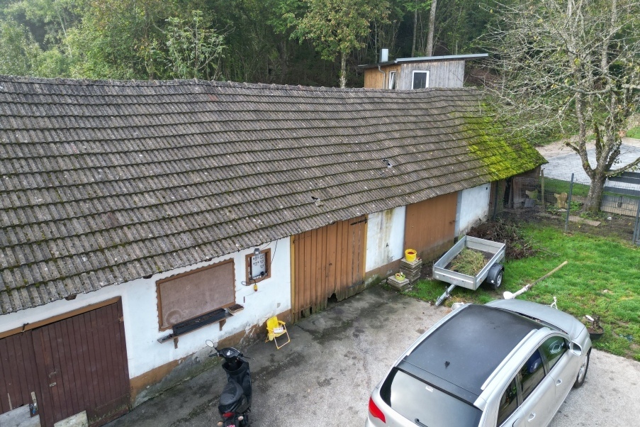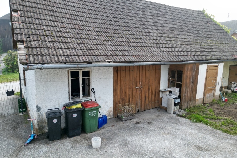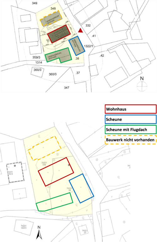| Beschreibung: | Die Liegenschaft besteht aus zwei Grundstücken, Grundstück GST-NR. .38 und Grundstück GST-NR. 348, die mit den baulichen Anlagen bebaut sind. Das Wohnhaus ist in Nord-Süd-Richtung annähernd mittig über die beiden Grundstücke zusammen situiert. Die Scheune ist ca. an der ostseitigen Grundstückgrenze im südlichen Bereich des Grundstücks platziert, die Scheune mit dem Flugdach befindet sich ca. an der südlichen Grundstückgrenze und steht ca. rechtwinklig zur anderen Scheune. Der Eingang des Wohnhauses befindet an der Südseite des Gebäudes. Näheres entnehmen Sie dem Langgutachten. |
