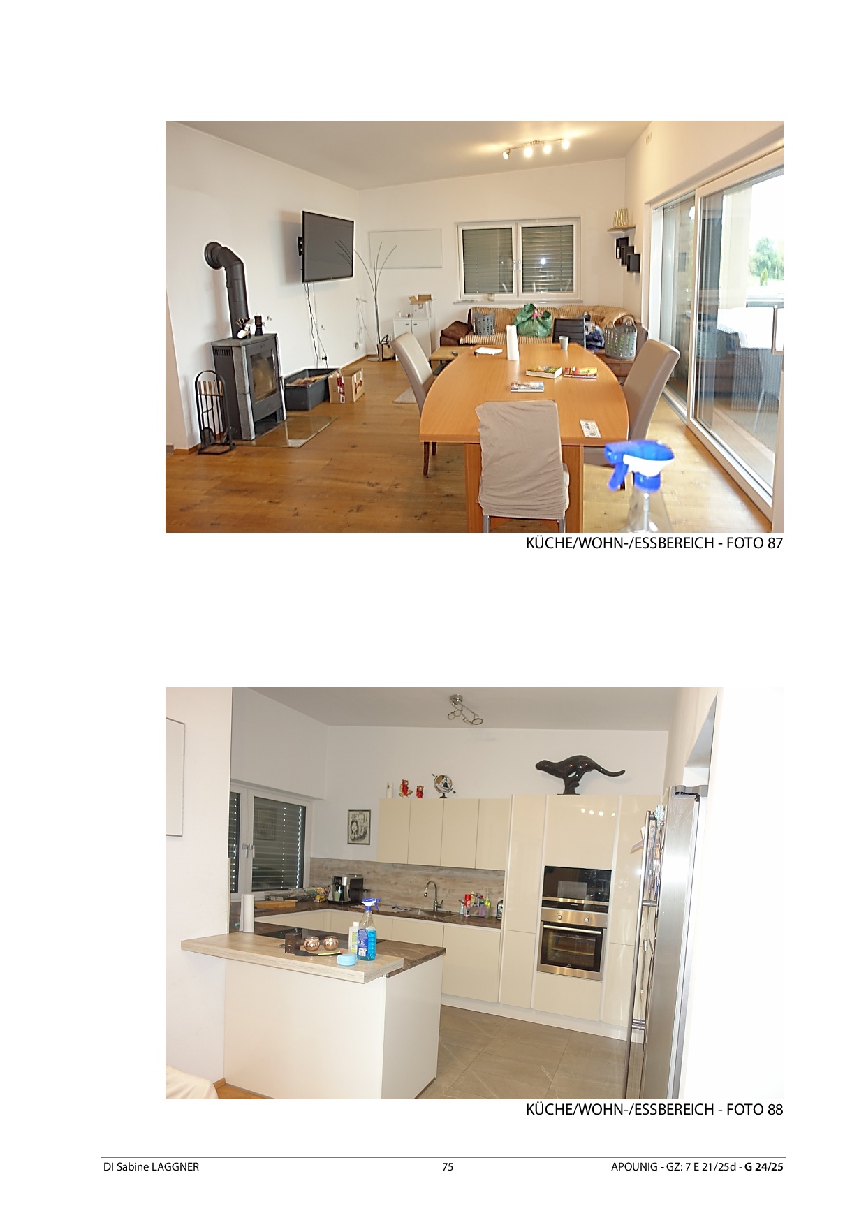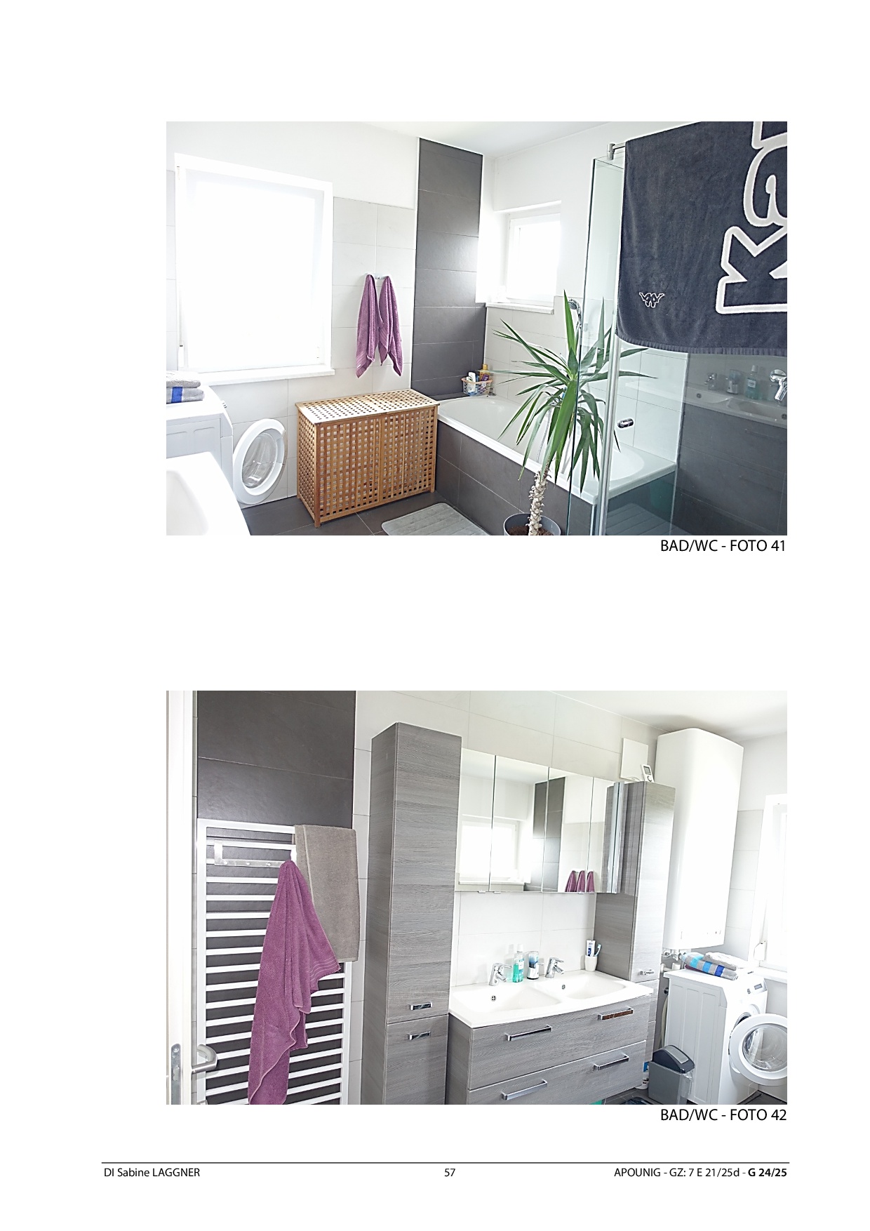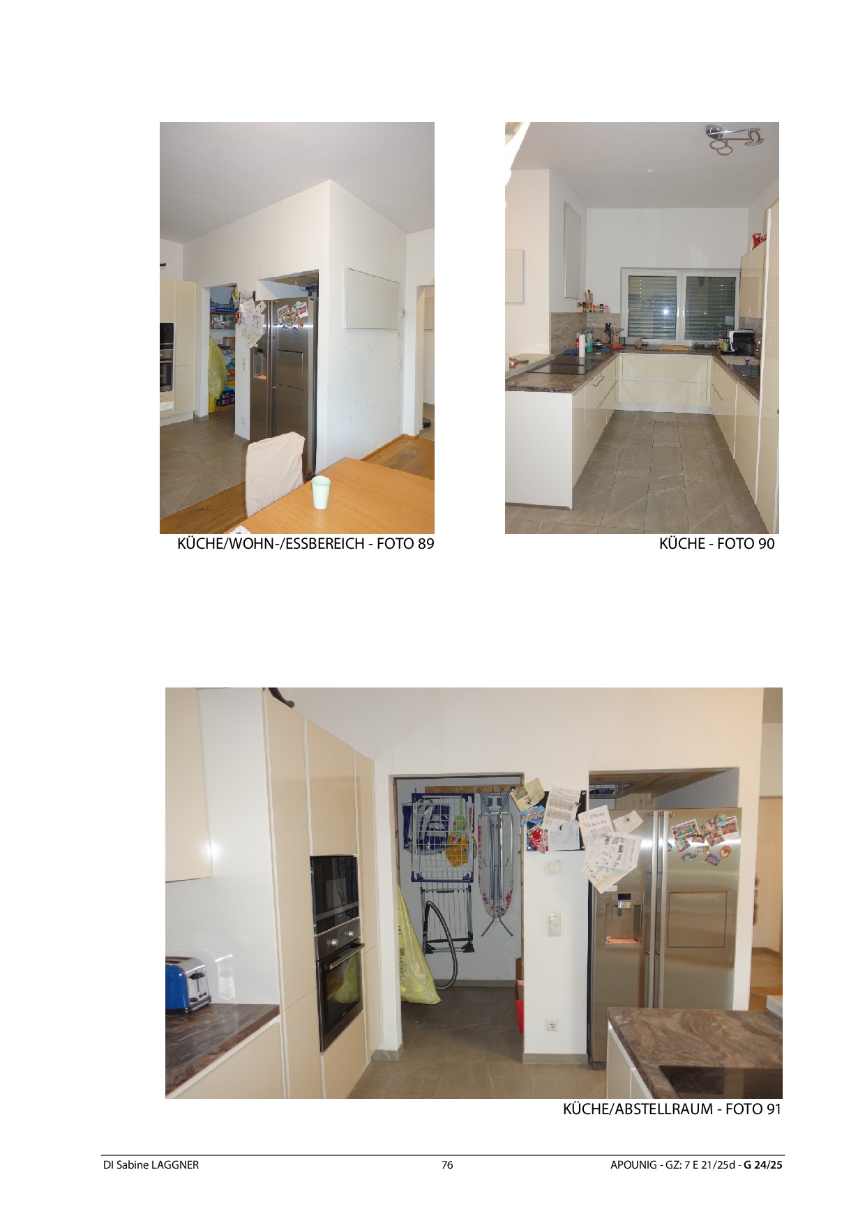 | mitzuversteigerndes Zubehör: | Nelkenweg 2, im OG: Einbauküche: Ober-, Unter- und Hochschränke mit glatten Kunststoff-Fronten, Schichtstoffarbeitsplatte,1 Niro-Einbauspüle mit Einhand-Mischarmatur. Geräte (Neff): - Geschirrspüler mit Frontabdeckung, - Cerankochfeld, darunter ein Backrohr, darüber ein Niro-Dunstabzug, - Kühl-Gefrierkombischrank mit Frontabdeckung. Badverbau mit Doppelwaschbecken und Unterschrank, Einhand-Mischarmaturen, zwei Hängeschränke, Doppel-Spiegelschrank mit integr. Beleuchtung. Nelkenweg 2a: Zubehör: Einbauküche: Ober-, Unter- und Hochschränke mit glatten Kunststoff-Fronten, Wände dazwischen tlw. mit Schichtstoffplatte verkleidet, Schichtstoffarbeitsplatte,1 Niro-Einbauspüle mit Einhand-Mischarmatur und Brausespüle zum Herausziehen. Geräte: - Geschirrspüler mit Frontabdeckung (Siemens), - Induktionskochfeld (Airforce) mit integriertem Dunstabzug, - Backrohr und Mikrowelle im Hochschrank (Siemens). Badverbau mit Doppelwaschbecken und Unterschrank, Einhand-Mischarmaturen, zwei Hängeschränke und Wäscheabwurfschacht, Doppel-Spiegelschrank mit integr. Beleuchtung. |