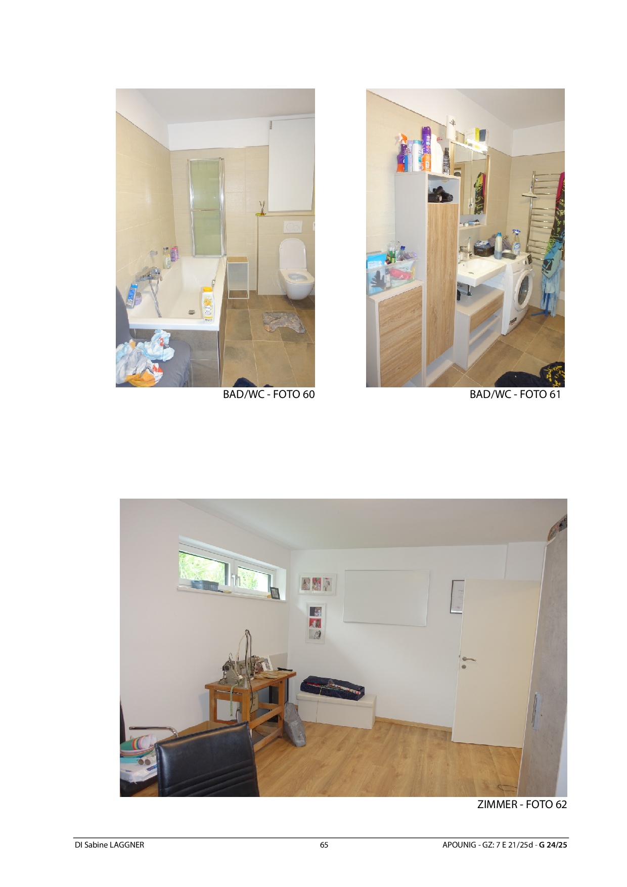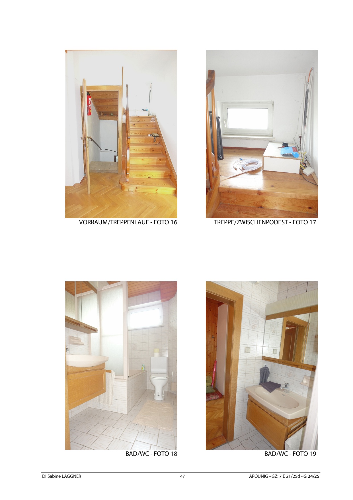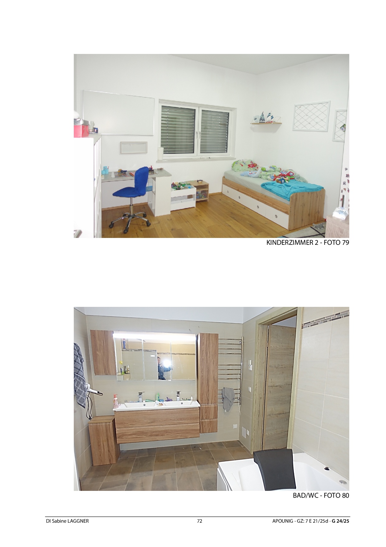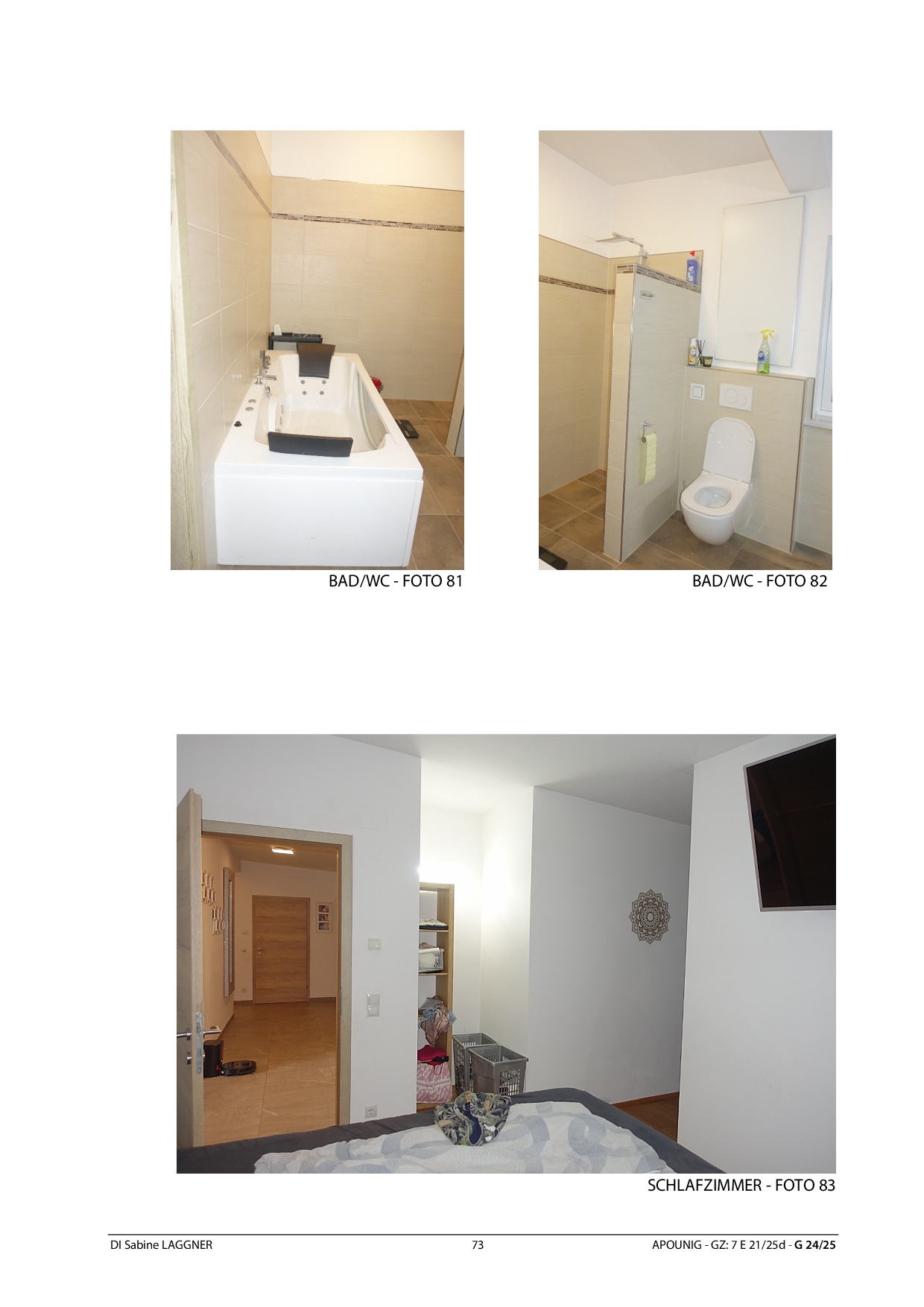 | mitzuversteigerndes Zubehör: | Nelkenweg 2, im OG: Einbauküche: Ober-, Unter- und Hochschränke mit glatten Kunststoff-Fronten, Schichtstoffarbeitsplatte,1 Niro-Einbauspüle mit Einhand-Mischarmatur. Geräte (Neff): - Geschirrspüler mit Frontabdeckung, - Cerankochfeld, darunter ein Backrohr, darüber ein Niro-Dunstabzug, - Kühl-Gefrierkombischrank mit Frontabdeckung. Badverbau mit Doppelwaschbecken und Unterschrank, Einhand-Mischarmaturen, zwei Hängeschränke, Doppel-Spiegelschrank mit integr. Beleuchtung. Nelkenweg 2a: Zubehör: Einbauküche: Ober-, Unter- und Hochschränke mit glatten Kunststoff-Fronten, Wände dazwischen tlw. mit Schichtstoffplatte verkleidet, Schichtstoffarbeitsplatte,1 Niro-Einbauspüle mit Einhand-Mischarmatur und Brausespüle zum Herausziehen. Geräte: - Geschirrspüler mit Frontabdeckung (Siemens), - Induktionskochfeld (Airforce) mit integriertem Dunstabzug, - Backrohr und Mikrowelle im Hochschrank (Siemens). Badverbau mit Doppelwaschbecken und Unterschrank, Einhand-Mischarmaturen, zwei Hängeschränke und Wäscheabwurfschacht, Doppel-Spiegelschrank mit integr. Beleuchtung. |