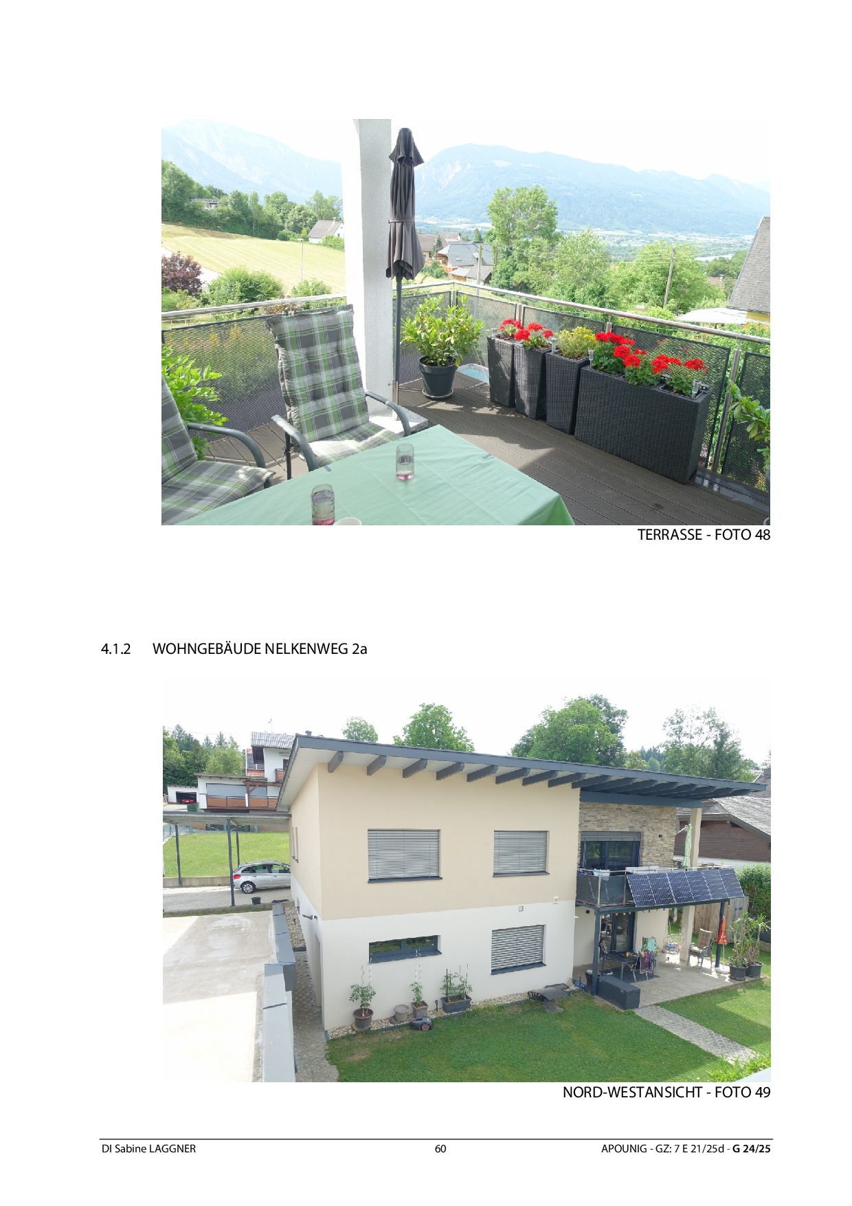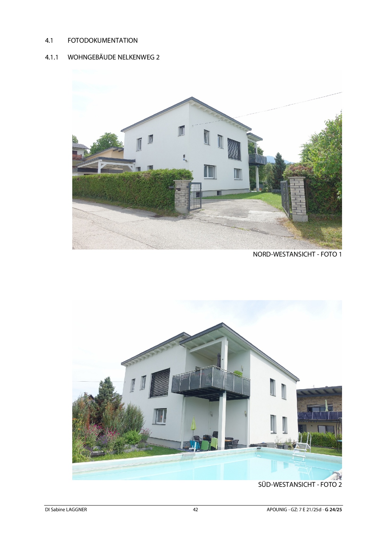 | Beschreibung: | Direkt in Maria Rain gelegen, das Zentrum der Bezirkshauptstadt Klagenfurt erreicht man in ca. 9,00 km. Gut über das öffentliche Verkehrsnetz erreichbar, die Autobahnauf- und Abfahrten der A2 Südautobahn Klagenfurt-Wörthersee liegen ca. 11,00 km entfernt. Bushaltestellen sind fußläufig erreichbar, der Bahnhof von Maria Rain liegt ca. 1,30 km nordwestlich der Liegenschaft. Maria Rain bietet eine gute Infrastruktur, Schulen, Ärzte und Einkaufsmöglichkeiten sind in wenigen Minuten erreichbar. Sehr gute Wohnlage, ruhig, in begünstigter Lage mit hoher Nachfrage, Mehrfamilienhaus- und Eigenheimbebauung mit Grün und guter Infrastruktur. Von Nordost nach Südwest leicht abfallendes Grundstück, mit annähernd rechteckigem Grenzverlauf. Die Liegenschaft ist zwei Wohngebäuden bebaut: Nelkenweg 2: Teilweise unterkellertes Wohngebäude mit Zubau und einem Garagengebäude. Nelkenweg 2a: In den Hang gebautes Wohngebäude mit Carport. HINWEIS: Eine Teilung der Wohngebäude zu separaten Eigentümern bzw. zu Wohnungseigentum wäre durch eine Parifizierung möglich. Bei dem Wohngebäude Nelkenweg 2 handelt es sich um ein zum Teil altbestehendes Objekt, das sich in einem dem Alter entsprechenden Bauzustand befindet. Für die Erhaltung der Bausubstanz wurde durch den Zu- und Umbau viel getan, und entspricht dadurch im Wesentlichen einem zeitgemäßen Baustandard. Die Ausstattung und Ausführung des Wohngebäudes Nelkenweg 2a ist in einem dem Alter entsprechenden Zustand. Der Bau- und Sachzustand der Gebäude im Gesamten ist als neuwertig und normal erhalten einzustufen. |