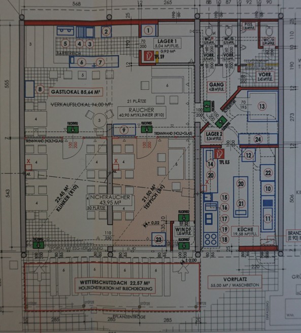 Beschreibung: | Die Wohnungseigentumsanlage liegt an der Schwarzenseer Straße 2 in 2565 Neuhaus und wurde in den Jahren 1972-1974 in Massivbauweise errichtet. Die Benützungsbewilligung wurde im Jahr 1976 erteilt. Das Gebäude ist L-förmig konfiguriert und besteht aus Erdgeschoß und zwei Obergeschoßen. Die Wohnungseigentumsanlage besteht aus insgesamt 27 Wohnungen und den zwei bewertungsgegenständlichen Geschäften, welche in natura zu einer wirtschaftlichen Einheit (Gastronomiebetrieb) zusammengelegt worden sind. Die vertikale Erschließung erfolgt über ein Stiegenhaus sowie einen Personenaufzug. Den Wohnungen Top 2 bis Top 27 sind jeweils ein PKW-Stellplatz sowie ein Kellerabteil im Erdgeschoß zugeordnet. Bei der Wohnung Top 1 handelt es sich um eine Hausbesorgerwohnung. Im Erdgeschoß sind Wohnungen, Geschäft 1 und Geschäft 2, als wirtschaftliche Einheit, ein Heizraum, ein Fahrrad-/Kinderwagenabstellraum sowie die Kellerabteile angeordnet. Weiters finden sich auf dem Grundstück PKW-Stellplätze im Freien im Innenhof. Bewertungsgegenständlich sind die im Erdgeschoß befindlichen Wohnungseigentumsobjekte Geschäft 1 und Geschäft 2, welche in natura zu einer wirtschaftlichen Einheit (Gastronomiebetrieb) zusammengelegt worden sind. Den Wohnungseigentumsobjekten ist kein Wohnungseigentumszubehör zugeordnet. Das Geschäftslokal verfügt über einen separaten Zugang und ist nach Norden, auf die Schwarzenseer Straße, ausgerichtet. Um das Jahr 2011 wurde das Geschäftslokal („Café Time Out“) umgebaut und renoviert. Laut Nutzwerttabelle ist eine Nutzfläche von 92,77 m² für Geschäft 1 und eine Nutzfläche von 42,96 m² für Geschäft 2 ausgewiesen, daher ergibt sich eine Nutzfläche von insgesamt 135,73 m² für das Geschäftslokal als wirtschaftliche Einheit. Laut laut Einreichplan beträgt die Nutzfläche rund 132,14 m² (welche den bau- und gewerbebehördlichen Konsens darstellt). Das Geschäftslokal besteht aus Windfang, Gastlokal (Nichtraucher), Gastlokal (Raucher), Lager 1, Gang, Vorraum, WC/P., Vorraum, WC/D., Vorraum, Piss., WC/H., Lager 2 und Küche. |