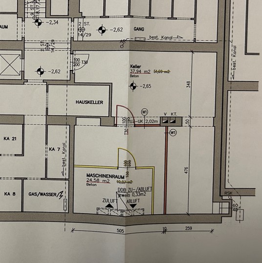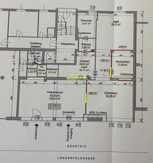 | Beschreibung: | Die ggst. Liegenschaft EZ 25 besteht aus dem GST 28, ist trapezähnlich ausgestaltet, relativ eben gelegen und verfügt an der Längenfeldgasse über eine Straßenfrontlänge von rd. 85 m und an der Schönbrunner Straße über rd. 25 m. Gem. Grundbuch verfügt die ggst. Liegenschaft über eine Grundstücksfläche von 2.194 m². Auf der ggst. Liegenschaft befindet sich ein, in den 1960er Jahren errichtetes Wohn-/ Geschäfts-haus mit insgesamt vier Stiegen, 60 Wohnungen, 8 Geschäftslokalen und 10 Garagen. Die ggst. WE-Objekte, Laden 1 Stg. I und Laden 2 Stg. I, befinden sich im Erdgeschoß des Gebäudes der Stiege I und die beiden WE-Objekte Laden 2 Stg. II (EG) und Lagerraum Stg. II (KG) befinden sich im Gebäudeteil der Stiege 2. Alle vier Stiegen verfügen über ein KG, 5 Geschoße über Niveau (EG - 4.OG und DG) und einen Personenaufzug (Tragkraft jeweils 225kg). Der ggst. Laden 2 Stg. II befindet sich im EG an der Stiege II. Die Schaufenster sind straßenseitig (Längenfeldgasse) ausgerichtet. Der Zugang erfolgt über die Längenfeldgasse. Der Lagerraum Stg. II befindet sich im KG der Stiege II, der Zugang erfolgt hofseitig über das Stiegenhaus. Die beiden WE-Objekte Laden 2 (EG) und Lagerraum (KG) an der Stiege II sind per se zwar nicht zusammengelegt, sie verfügen aber über gemeinsame Versorgungsleitungen, da die Heizleitung des Geschäftslokals durch den Boden/die Decke in das Kellerlager gelegt wurde. -Laden 2 Stg. II (BLNR 135):157,54m² -Lagerraum Stg. II (BLNR 136): 62,52m² Das ggst. Lokal „Laden 2 Stg. II befindet sich insgesamt in durchschnittlichen-ordentlichen Er-haltungszustand; allerdings sind entsprechende Abnützungen/Verschmutzungen der Oberflächen vorhanden. Die (techn.) Ausstattung (Oberflächenmaterialen, vorhandene (lose) Verkabelungen, etc.) entsprechen nicht den Anforderungen/Vorstellungen an moderne Geschäftsräumlichkeiten. Die Lüftungs-/Klimaanlage, Ventilatoren, sämtliche Vorschaltgeräte, Verkabelungen, Beleuchtungskörper, etc. stehen im Eigentum der Mieterin. Der Lagerraum im Keller weist einen normalen bis ordentlichen Erhaltungszustand auf. Die zu versteigernden Objekte befinden sich in einem in den 1960er Jahren errichteten Wohn- und Geschäftshaus mit insgesamt 4 Stiegen, 60 Wohnungen, 8 Geschäftslokalen und 10 Garagen. Alle vier Stiegen verfügen über ein Kellergeschoß, 5 Geschoße über Niveau (EG - 4.OG und DG) und einem Personenaufzug (Tragkraft jeweils 225kg). Der Laden 2 (BLNr.: 135) befindet sich im EG an der Stiege II. Die Schaufenster sind straßenseitig zu Längenfeldgasse ausgerichtet. Der Zugang erfolgt über die Längenfeldgasse. Der Lagerraum (BLNr.: 136) befindet sich im KG der Stiege II, der Zugang erfolgt hofseitig über das Stiegenhaus. Die Objekte sind per se nicht zusammengelegt, verfügen aber über gemeinsame Versorgungsleitungen, da die Heizleitung des Geschäftslokals durch den Boden/die Decke in das Kellerlager gelegt wurde. Die Fläche des Laden beträgt 157,54m², jene des Lagerraums 62,52m² auf. Die Objekte bestehen aus einem Lokalraum, Küche, Vorraum, WC und Lagerraum. Die Räumlichkeiten des Geschäftslokals befinden sich in einem durchschnittlich-ordentlichen Erhaltungszustand. Die Oberflächenmaterialien sind entsprechend abgenutzt und entsprechen nicht den Anforderungen an moderne Geschäftsräumlichkeiten. Der Lagerraum befindet sich in einem normalen bis ordentlichen Erhaltungszustand. Abweichend vom Baukonsens Entfernung der Tür, Türzarge und nichttragender Wand zwischen Verkaufsraum und Vorraum, Schaffung eines Durchgangs Entfernung der Tür, Türzarge zwischen dem Durchgang zum Lager und dem Serviceraum, Schaffung eines Durchgangs Durchbruch in der neugeschaffenen Wand zwischen Verkaufs- und Schauraum, Schaffung eines Durchgangs. Die zu versteigernden Objekte sind gemeinsam unbefristet vermietet. Der Mietzins beträgt aktuell € 1.519,16 (Kaution € 7.060,-). Die monatlichen Gesamtkosten betragen netto € 1.998,77 und setzen sich zusammen aus: Betriebskosten € 1.135,75 Reparaturrücklage € 353,31 Sanierungsdarlehen € 495,79 Hausbesorger-Rücklage € 13,92 Es bestehen keine Abgabenrückstände. Der Stand der Reparaturrücklage beträgt per 26.06.2024 rd. € 40.485,-. Für eine thermische Teilsanierung des Objekts wurde im Mai 2015 ein Kredit aufgenommen. Dieses Sanierungsdarlehen ist grundbücherlich nicht sichergestellt, hingegen das Guthaben aus der Rücklage verpfändet. Es besteht eine „Überbindungsklausel“, wonach die bestehende Gemeinschaftsverpflichtung auf Rechtsnachfolger übertragen wird. Der auf das zu versteigernde Objekt entfallende Anteil beträgt per 09.01.2025 € 35.443,25. Nach Auskunft der Hausverwaltung wurden in den Jahren 2021 – 2023 diverse Kaminsanierungen, Spenglerarbeiten, Instandsetzung der Blitzschutz und Erdungsanlage, sowie Erneuerungen der Aufzüge der Stiegen 1 und 3 und Asphaltausbesserungsarbeiten durchgeführt. Im Übrigen wird auf das Sachverständigengutachten verwiesen, das zum Bewertungsstichtag 24.06.2024 erstellt wurde. |