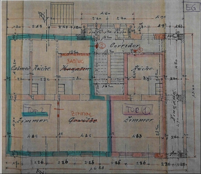 | Beschreibung: | Das Mehrfamilienwohnhaus (Mietzinshaus) wurde zu Beginn des 20.Jahrhunderts errichtet. Das Gebäude besteht aus einem Kellergeschoss, einem Erdgeschoss, einem Obergeschoss und einem unausgebauten Dachboden. Im Erdgeschoss und im Obergeschoss befinden sich jeweils 2 Wohnungen, der Keller wird als Lager genutzt. Das Wohnhaus ist in Massivbauweise errichtet, die Fassade ist verputzt, straßenseitig in einfach gegliederter Oberfläche ausgeführt. Das Dach ist als Satteldach mit Ziegeleindeckung ausgebildet. Das Gebäude wird durch Kunststofffenster belichtet. Die Beheizung der einzelnen Wohnungen erfolgt durch Gasthermen. Die vier Wohnungen sind vermietet und konnten im Zuge der Befundaufnahme mit Ausnahme der Wohnung Top 1 besichtigt werden. Die Beschreibung entspricht den Angaben des Eigentümers bzw. den besichtigten Wohnungen. Die Wohnungen sind durchwegs Kategorie D-Wohnungen mit Gang-WC. Der Mieter der Wohnung Top 2 hat zusätzlich in der Wohnung ein Bad/WC eingebaut, in den restlichen Wohnungen sind Duschmöglichkeiten (in der Küche) vorhanden. Der Innenhof ist teilweise befestigt, teilweise begrünt und mit einzelnen Bäumen und Sträuchern bewachsen. Das Gebäude ist in einem dem Alter entsprechend abgenutzten Zustand vorhanden, in Wohnung Top 3 ist im gangseitigen Zimmer ein Wasserschaden/Wassereintritt an der Decke sichtbar. Bauwerksstatische und vermessungstechnische Überprüfungen sowie bautechnische und haustechnische Bauwerksüberprüfungen haben durch den Sachverständigen im Zuge der Befundaufnahme auftragsgemäß nicht stattgefunden (kein bautechnisches Gutachten), die Beschreibung der vorhandenen Bauausführungen erfolgte ausschließlich durch augenscheinliche Befundung des Gebäudebestandes (ohne Bauwerksöffnungen). |