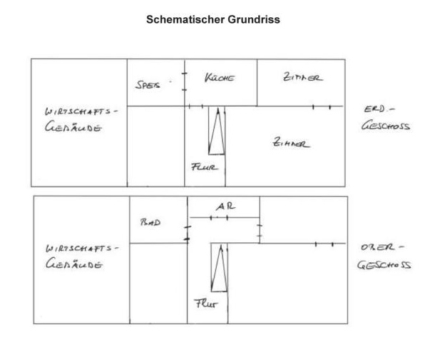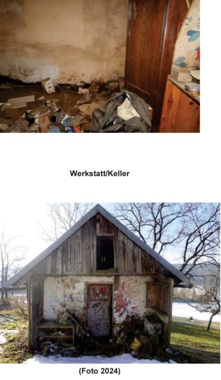 | Beschreibung: | Wohngebäude mit Wirtschaftsgebäude und Nebengebäuden (sehr schlechter Erhaltungszustand); LN und Wald. Details siehe Langgutachten. |