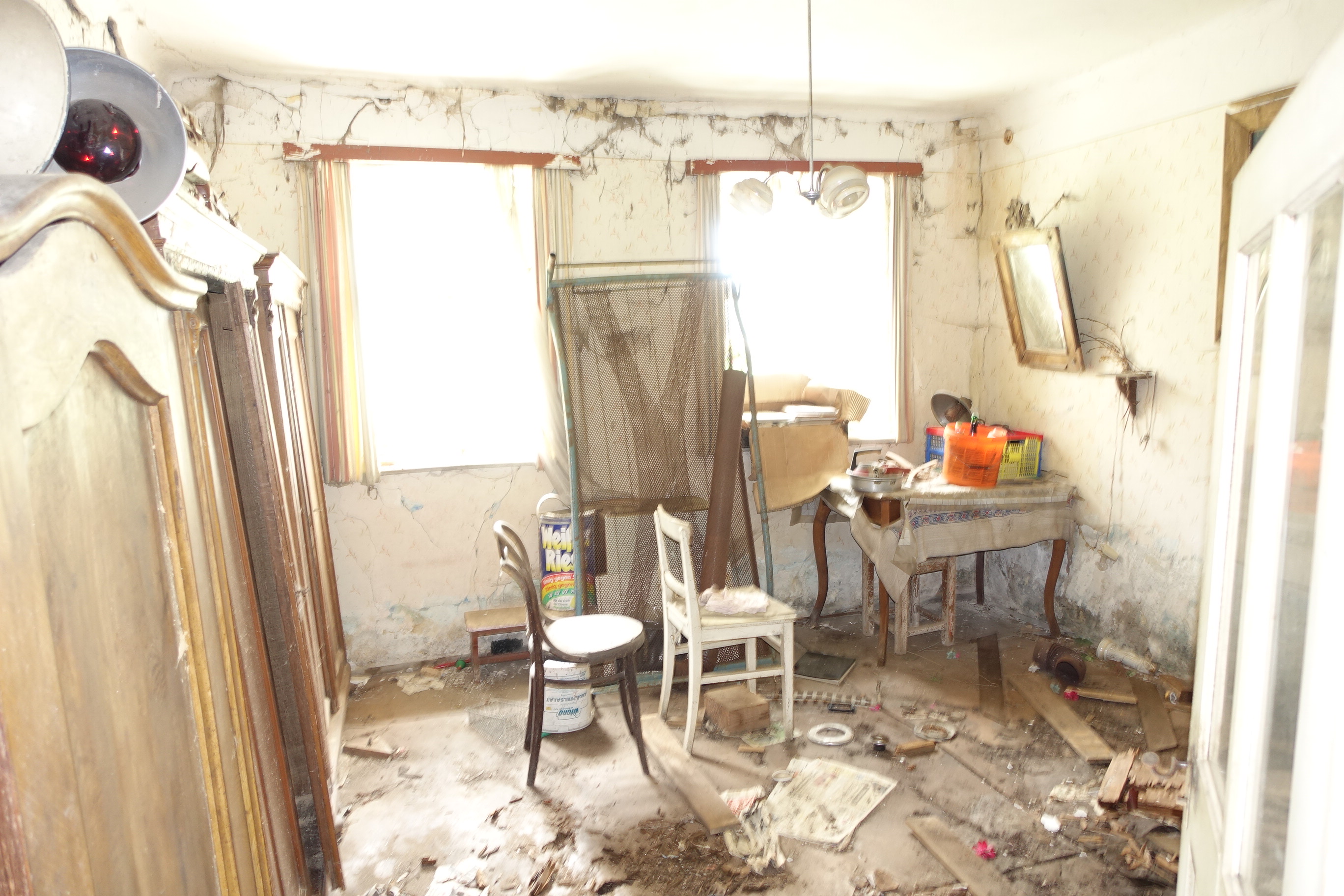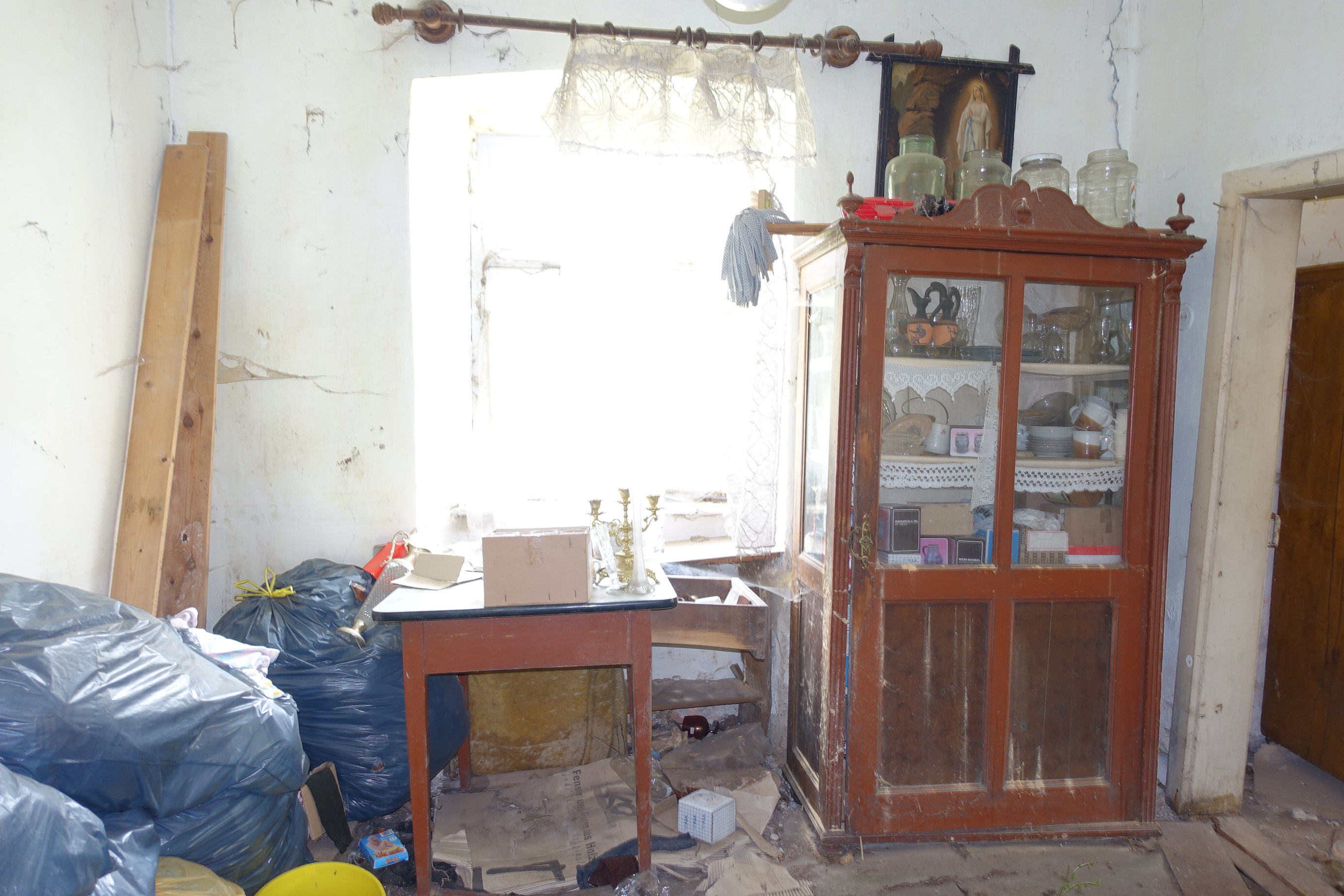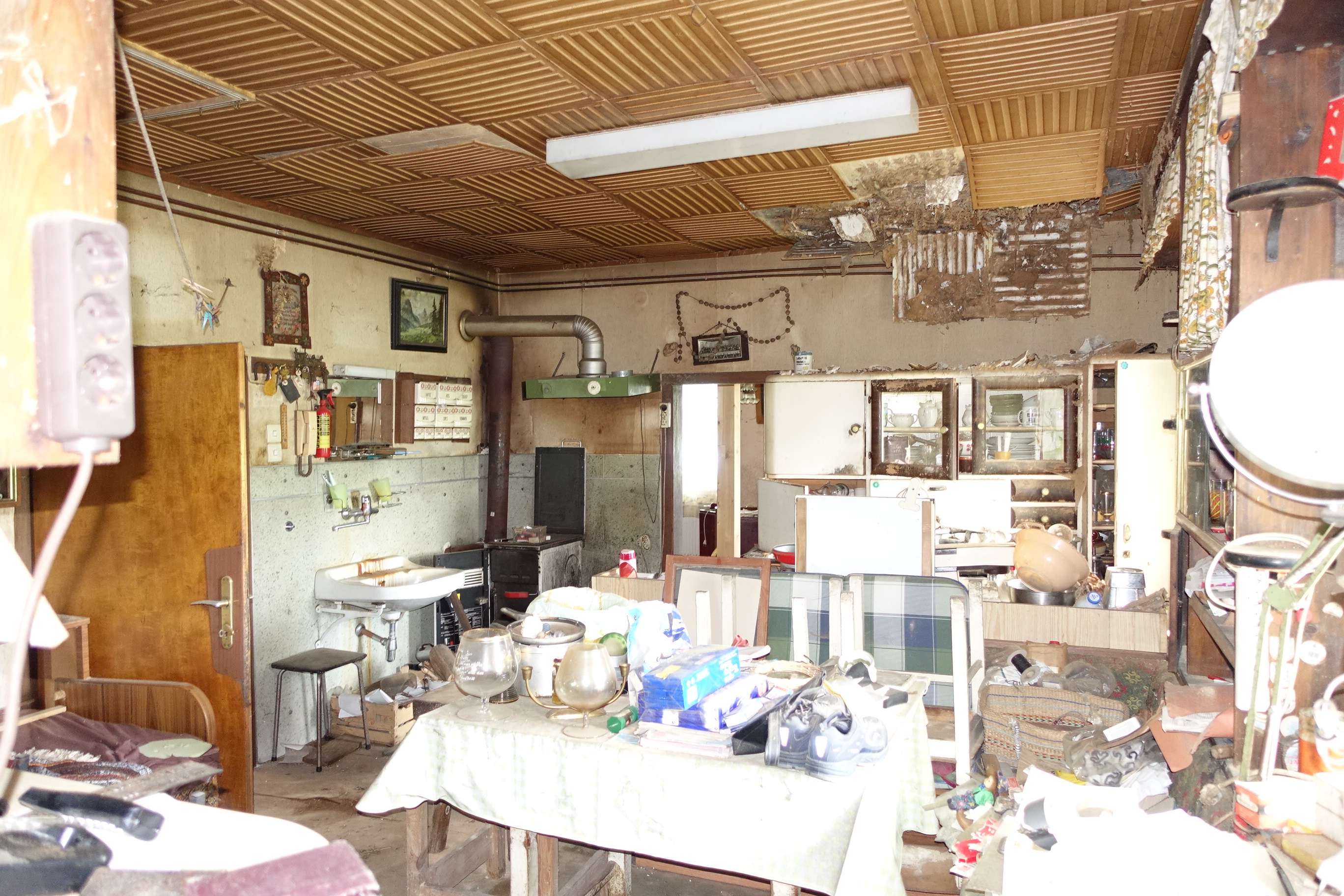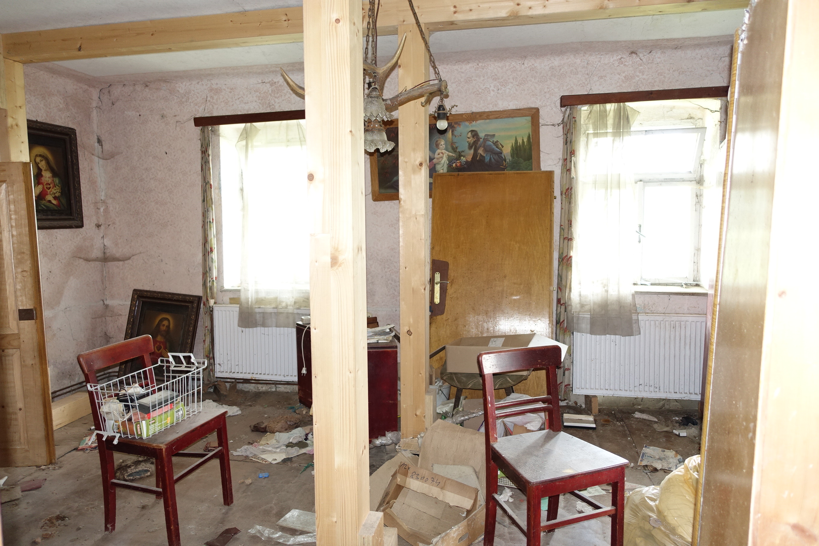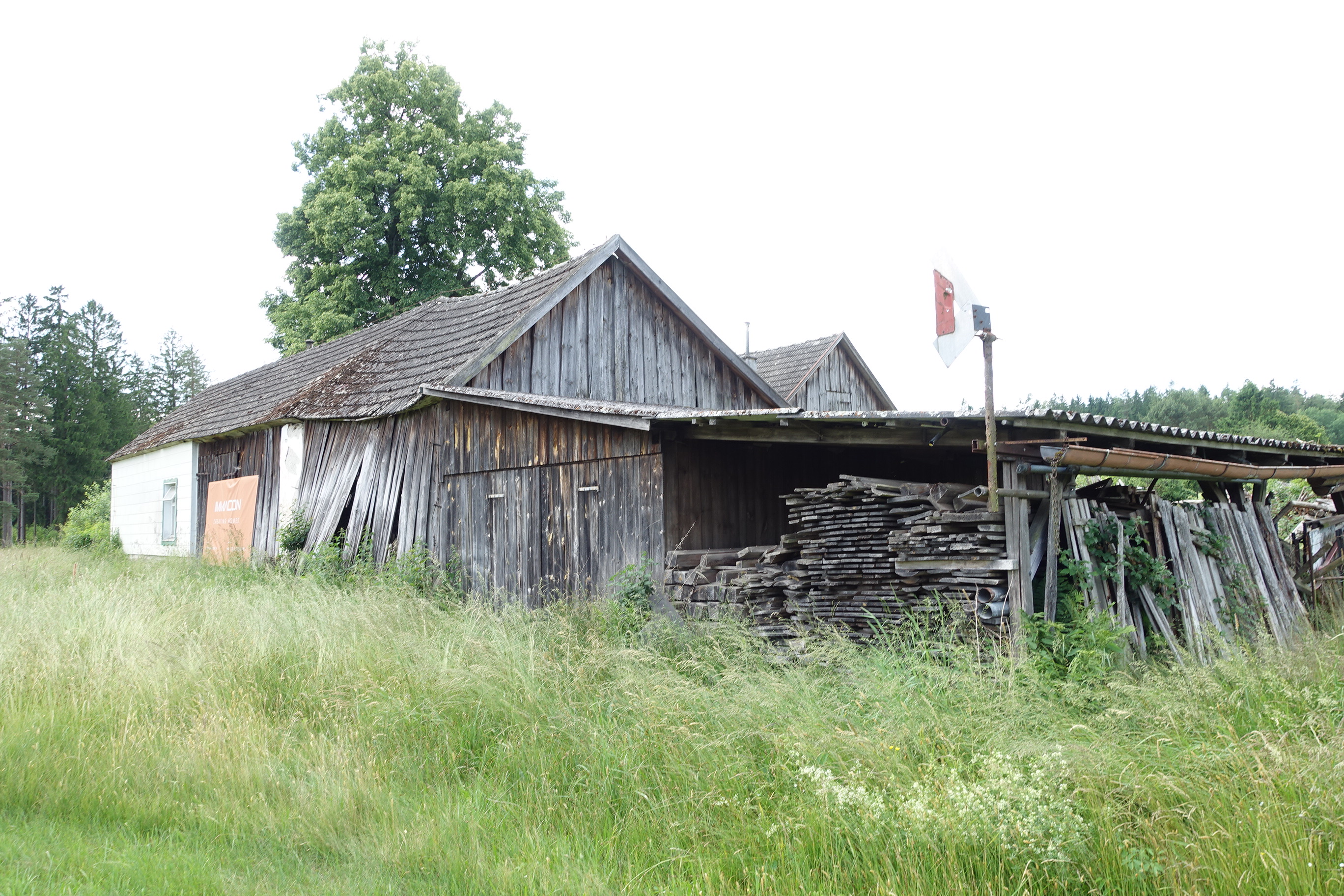 Beschreibung: | Die zur Marktgemeinde Brand-Nagelberg gehörige Katastralgemeinde Finsternau, in der sich die bewertungsgegenständliche Liegenschaft befindet, liegt im nördlichen Waldviertel im politischen Bezirk Gmünd in Niederösterreich. Die bewertungsgegenständliche Liegenschaft EZ 207 liegt ca. 15 km nördlich der Bezirkshauptstadt Gmünd. Die Liegenschaft liegt unmittelbar westlich angrenzend an die Landesstraße L 62, von der auch die Erschließung der Liegenschaft erfolgt. Die unmittelbar angrenzenden bzw. in der näheren Umgebung liegenden Grundstücke sind jeweils als Grünland (Glf) gewidmet und teilweise mit Wohnhäusern und landwirtschaftlichen Betriebsgebäuden bebaut. Die in der Liegenschaft inneliegenden Grundstücke 291/1, 291/2 und 292/1 bilden eine zusammenhängende Grundstücksfläche mit einer unregelmäßigen Grundrissform mit einem grundbücherlichen Gesamtflächenausmaß von 4.091 m². Diese Grundstücksfläche ist weitgehend eben und niveaugleich mit den angrenzenden Grundstücken. Auf dem Grundstück 291/2 besteht zum Bewertungsstichtag ein Wohn- und Wirtschaftsgebäude. Das Gebäude ist in offener Bauweise errichtet. Das in Massivbauweise errichtete Wohngebäude besteht aus Erdgeschoß und teilausgebautem Dachgeschoß und ist nicht unterkellert, das in Holzbauweise errichtete Wirtschaftsgebäude besteht aus drei Schuppen mit angebautem Flugdach. Im westlichen Teil des Wohngebäudes sind im Erdgeschoß Wohnräume mit einer Nutzfläche von gesamt ca. 77 m² und im teilausgebautem Dachgeschoß ein Zimmer mit ca. 14 m² Nutzfläche eingebaut. Im östlichen Teil des Gebäudes befinden sich im Erdgeschoß 2 Wohnräume mit einer Gesamtnutzfläche von ca. 24 m². Im Erdgeschoß des Wohnteiles befinden sich weiters Nebenräume mit einer Gesamtnutzfläche von ca. 14 m². Das Wirtschaftsgebäude ist unmittelbar nördlich an den östlichen Wohnteil angebaut und beinhaltet 3 Schuppen und einen überdachten Abstellplatz mit einer Gesamtnutzfläche von ca. 130 m². Über das bestehende Wohn- und Wirtschaftsgebäude liegen im Bauakt bei der Marktgemeinde Brand-Nagelberg keine Unterlagen (Pläne, Baubewilligungen, Benützungsbewilligungen, Baufertigstellungsmeldungen, o.ä.) auf. Aufgrund der Bauweise und der verwendeten Baumaterialien ist davon auszugehen, dass der Altbestand seit zumindest 100 Jahren besteht. Bauweise (soweit augenscheinlich erkennbar): Fundamente: Steinfundamente; aufgehendes Mauerwerk (Wohnteil): Stein- bzw. Mischmauerwerk; Zwischenwände: Ziegelmauerwerk; Wände Wirtschaftsgebäude: Holzständerkonstruktion mit einfacher Bretterschalung; Decke über EG (Wohnteil): Dübelbaumdecken; Treppe EG/DG (Wohnteil): Holzwangentreppe mit Setz- und Trittstufen; Fassaden (Wohnteil): Eternitplatten, Mineralputz; Dach (Wohnhaus): Satteldach; Holzsparren, Einfachlattung; Dacheindeckung: Strangfalzziegel; Dach (Wirtschaftsgebäude): Satteldach; Holzsparren, Einfachlattung; Eindeckung: Strangfalzziegel; Pultdach: Eindeckung Welleternitplatten; Regenrinnen: Eisenblech verzinkt; Fenster: Holzkastenfenster mit Einfachverglasung; Tor (Wirtschaftsgebäude): Massivholzschiebe- und Flügeltore; Eingangstüren (Wohnteile): Massivholztüren mit Einfachverglasung; Innentüren: Umfassungszargen und Türblätter furniert;Heizung: Warmwasser-Zentralheizungsanlage; Wärmeerzeugungssystem: Küchenherd wasserführend, für feste Brennstoffe; Wärmeabgabesystem: Radiatoren. Das Wohn- und Wirtschaftsgebäude befindet sich zum Zeitpunkt der Befundaufnahme in einem desolaten und bereits baufälligen Bau- und Erhaltungszustand. Es wurden seit längerer Zeit keine laufenden Instandhaltungs- und Reparaturmaßnahmen getätigt. Da maßgebliche Bauteile (Fundamente, Mauerwerk, Dübelbaumdecken, Dach, Fenster, Installationen) ihre technische Nutzungsdauer bereits überschritten haben und die voraussichtlichen Sanierungskosten unter Berücksichtigung der Erschwernisse im Altbau nur mehr geringfügig von den Herstellungskosten eines Neubaus abweichen, hat das Gebäude in technischer als auch in wirtschaftlicher Hinsicht die Abbruchreife erreicht. Bezüglich Abbruch und Wiedererrichtung wird ausdrücklich auf die Bestimmungen des § 20 NÖ Raumordnungsgesetz für erhaltenswerte Gebäude im Grünland hingewiesen. Außenanlagen: Innenhof:ungepflegte, verwachsene Grünfläche; Hausbrunnen (Betonschachtbrunnen auf Gst 291/1 vor dem Haus); nicht bebaute Grundstücksflächen Gst 291/1 und 292/1: Grünfläche (Wiesen) mit 1 Biotop und eingezäuntem Hausgarten (beides stark verwachsen). |