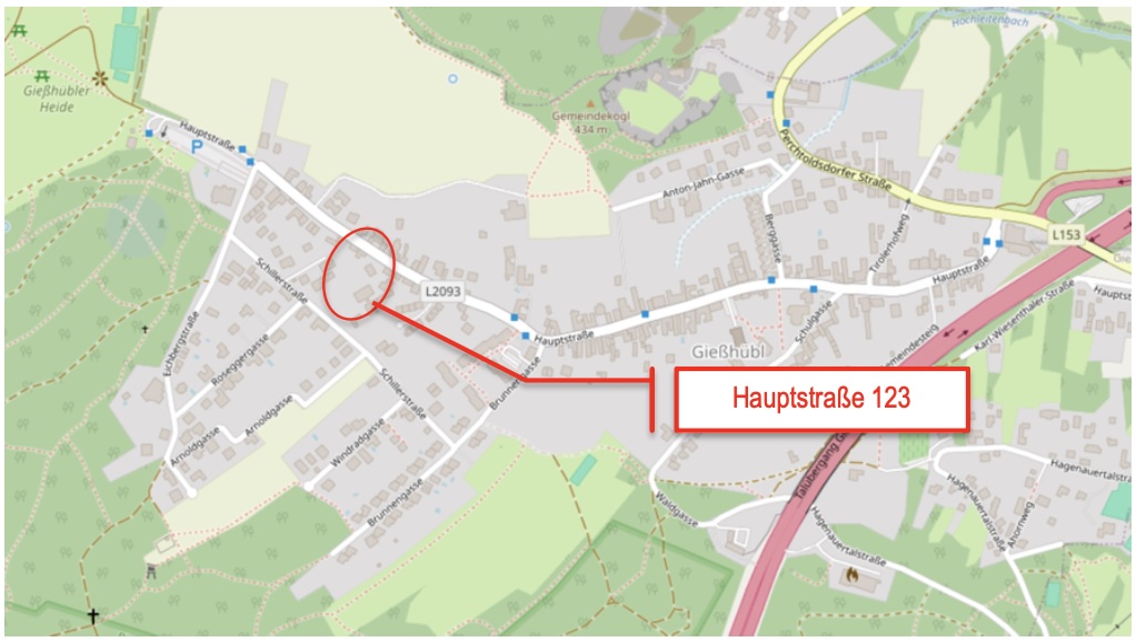 | Liegenschaftsadresse: | 2372 Gießhübl Hauptstraße 123 |