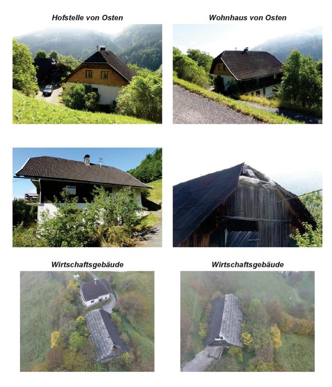| Beschreibung: | Landwirtschaftliche Liegenschaft vulgo Jassinger (zurzeit unbewohnt) auf 750m Seehöhe mit lw. Grundstücken, Wald sowie einer ehemaligen Kies./Schottergrube. Einsturzgefahr bei der Tenne. Details siehe Langgutachten. |