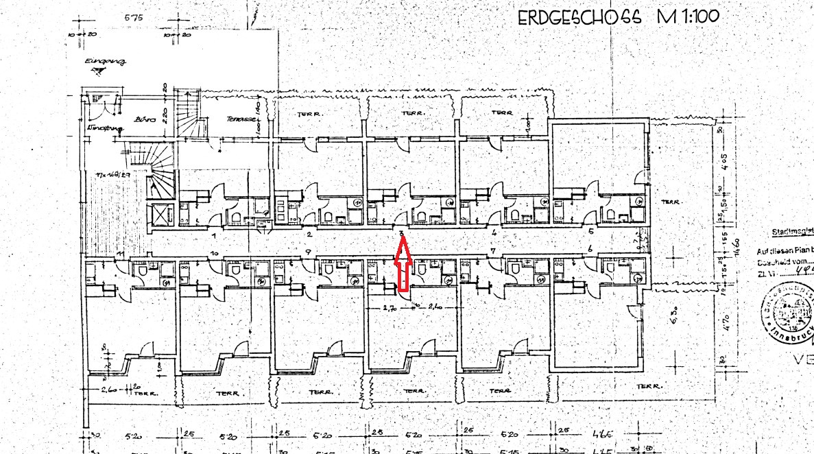 | Beschreibung: | Garconniere im Erdgeschoß nach Osten ausgerichtet. Lt. Nutzwertgutachten 23,29 m² Wohnfläche. Im Jahr 2005 wurde die Terrasse mit einem 3-teiligen Scheibenelement verglast und in den Wohnraum integriert. Die Wohnfläche incl. der Terrassenfläche beträgt aktuell rd. 30 m². Der Wohnung zugeordnet ist im UG ein Kellerabteil Nr. 3. Weitere Details sind dem Langgutachten zu entnehmen. |