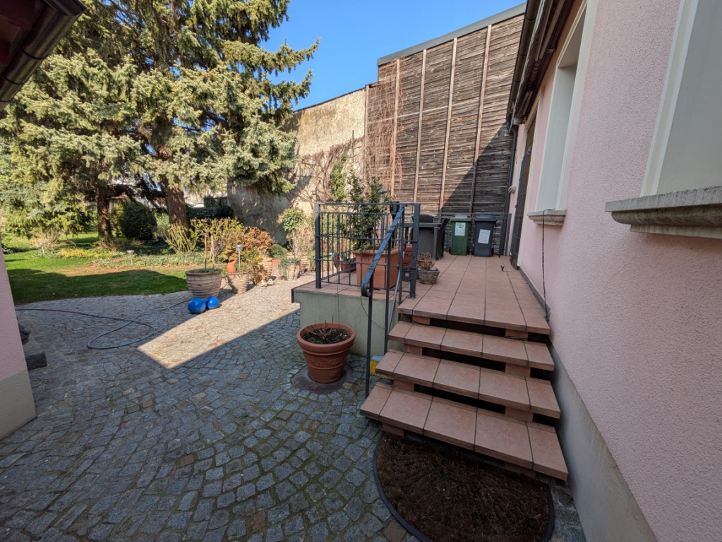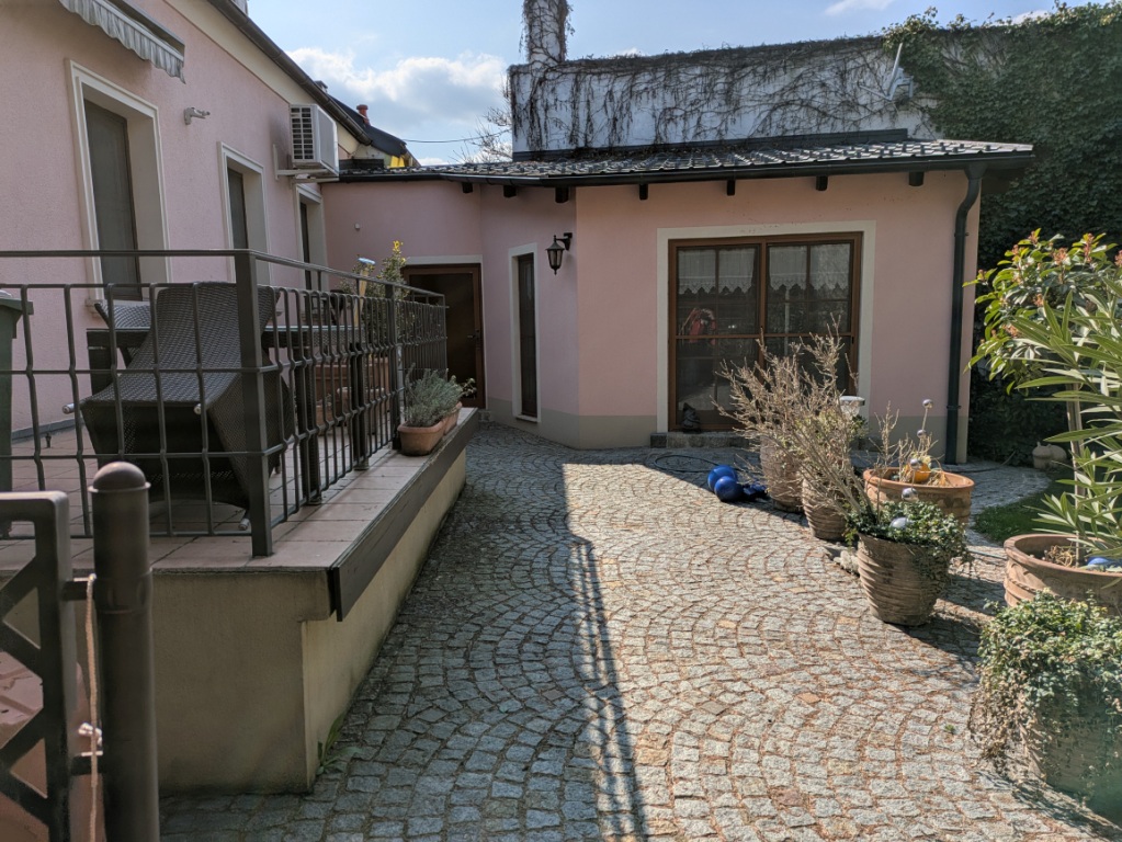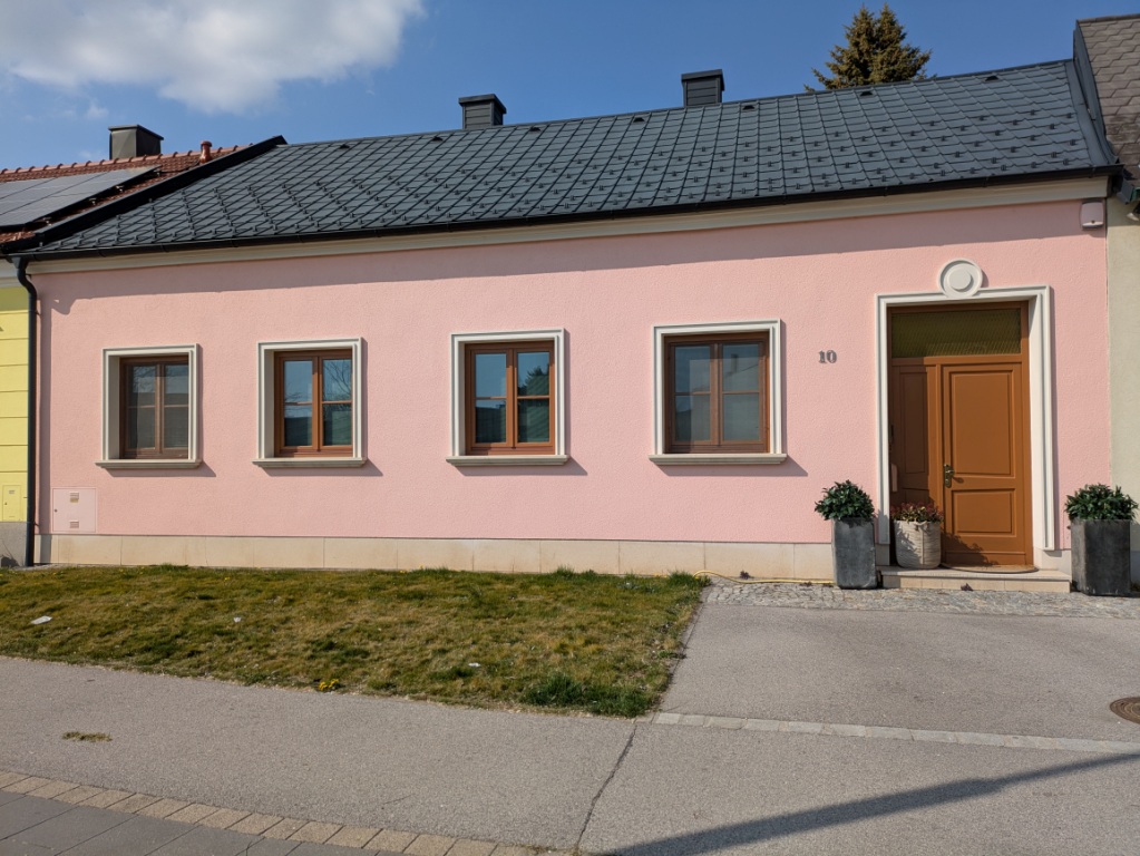 Beschreibung: | Das bewertungsgegenständliche traufständige, teilunterkellerte, eingeschoßige Breitfassadenhaus mit Satteldach in geschlossener Bauweise und einem hofseitigen Anbautrakt mit Pultdach entlang der westlichen Grundgrenze ist direkt vom öffentlichen Gut Alte Wiener Straße über eine asymmetrisch angeordnete, kassettierte Hauseingangstür mit Oberlichte, Video-Gegensprechanlage und Vorlegestufe von der südlichen Gebäudeseite erschlossen. Die schlichte, nur durch Fensterachsen regelmäßig gegliederte Straßenfassade des in seinen Ursprüngen vermutlich Anfang des 20. Jahrhunderts errichteten Wohngebäudes scheint im Wesentlichen unverändert. Der im Bauakt vorliegende Einreichplan zur Fassadenänderung (1971) wurde augenscheinlich nicht umgesetzt. Der teils mit Pflastersteinen befestigte, überwiegend mit Rasen begrünte und mit Laub- und Nadelhölzern bestockte Garten ist nordseitig orientiert und vom erhöhten Erdgeschoß über eine gartenseitige Terrasse mit Freitreppe erschlossen. Über den hofseitigen Zubautrakt an der westlichen Grundgrenze besteht ein Zugang zum westlichen Nachbargrundstück als dienendes Grundstück, insbesondere für die Entsorgung von Gartenabfällen u. dgl. mit Dienstbarkeitsvertrag - siehe Langgutachten. Das Gebäude befindet sich in einem dem Alter und der Bauzeit entsprechenden, augenscheinlich gut instandgehaltenen und teilweise modernisierten Zustand mit üblichen Abnützungsspuren und älteren, nicht mehr ganz zeitgemäßen Sanitäranlagen. Die Raumaufteilung mit Durchgangszimmern in beiden Geschoßen ist nicht zeitgemäß. Die Lage an der Wiener Straße ist etwas verkehrslaut, im Haus ist davon jedoch nichts zu bemerken. Die Dachflächenfenster sind alle gartenseitig ausgerichtet. Der hofseitige Anbautrakt (direkt angebautes kleines Nebengebäude an der westlichen Grundgrenze) befindet sich in einem dem Alter, der Bauzeit, der Bauweise und der Funktion entsprechenden mäßigen Zustand mit Rissen in den Wänden und einfachen technische Einbauten. Wesentliche substanzgefährdende Baumängel an den Baulichkeiten waren nicht ersichtlich. Es waren nicht alle Bereiche frei einsehbar und teilweise mit Verbauten oder Lagergut verstellt. Die Außenanlagen, Befestigungen sowie die Innenhofflächen und Gartenbereiche befinden sich augenscheinlich in gut gepflegtem Zustand. |