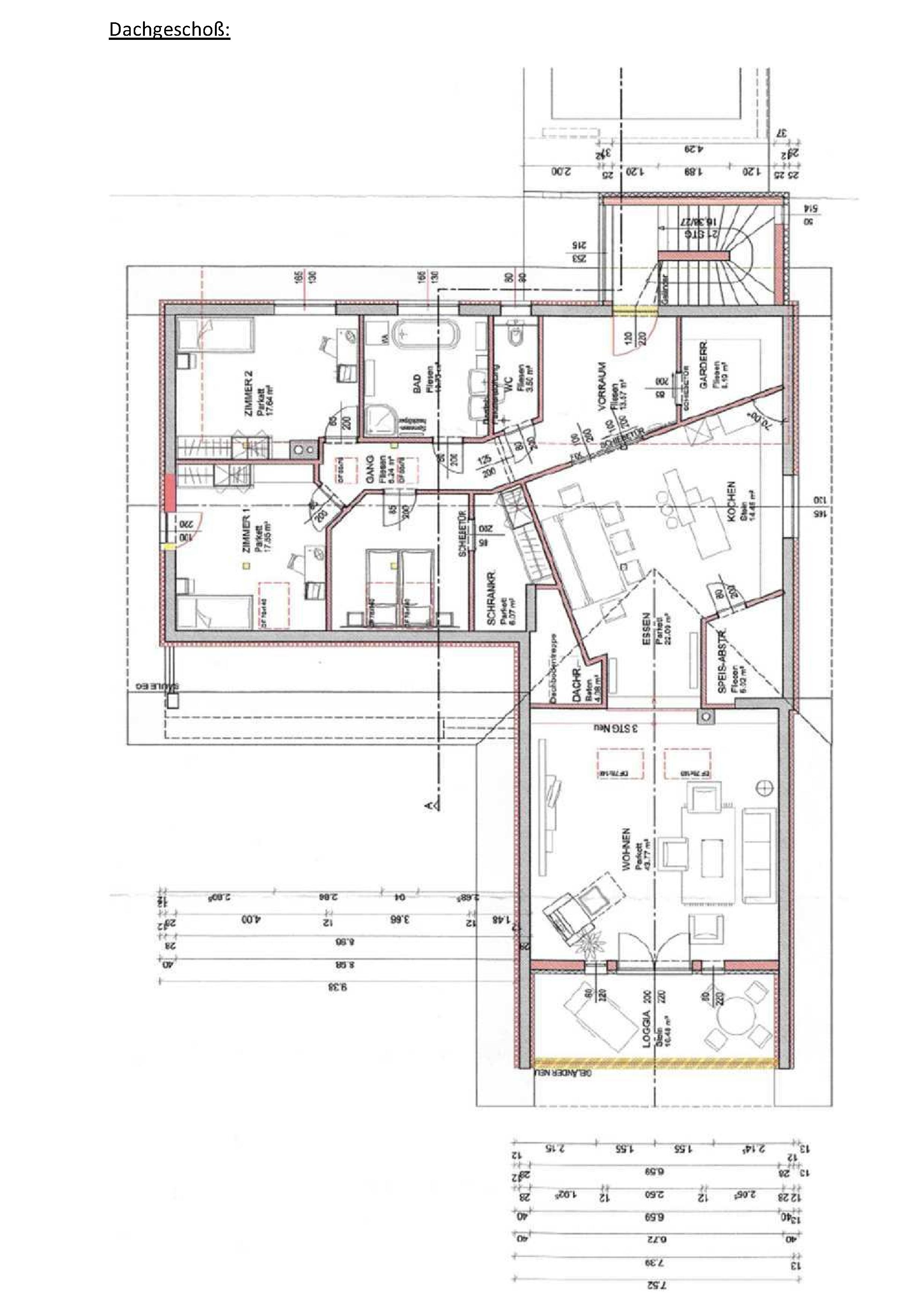 | Beschreibung: | Das Wohnungseigentumsobjekt befindet sich im Dachgeschoß eines Zweifamilienhauses mit eigenem Zugang im Erdgeschoß. Es sind Dachschrägen vorhanden. Die ursprüngliche Errichtung des Hauses erfolgte ca. 1975. Es ist bau- und benützungsbewilligt. Es bestehen kleinere Abweichungen zum Einreichplan - z.B.: Loggia ist als Raum verblieben, Carport wurde abweichend errichtet. |