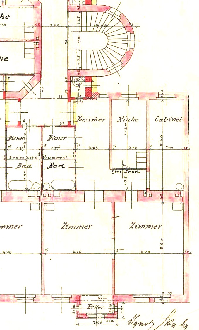 | Beschreibung: | Lage im 1. Stock, Erschließung über Stiegenhaus. Lift mit Schlüsselbetrieb. Ausrichtung gegen Straße (etwa Süden) und Lichthof (etwa Norden). Vorzimmer, Küche, 2 Zimmer, Kabinett, Bad, Diener (AR), WC. Gas-Etagenheizung, Radiatoren. Starke Abnützungen der Oberflächen. Funktion der Installationen wird angegeben. |