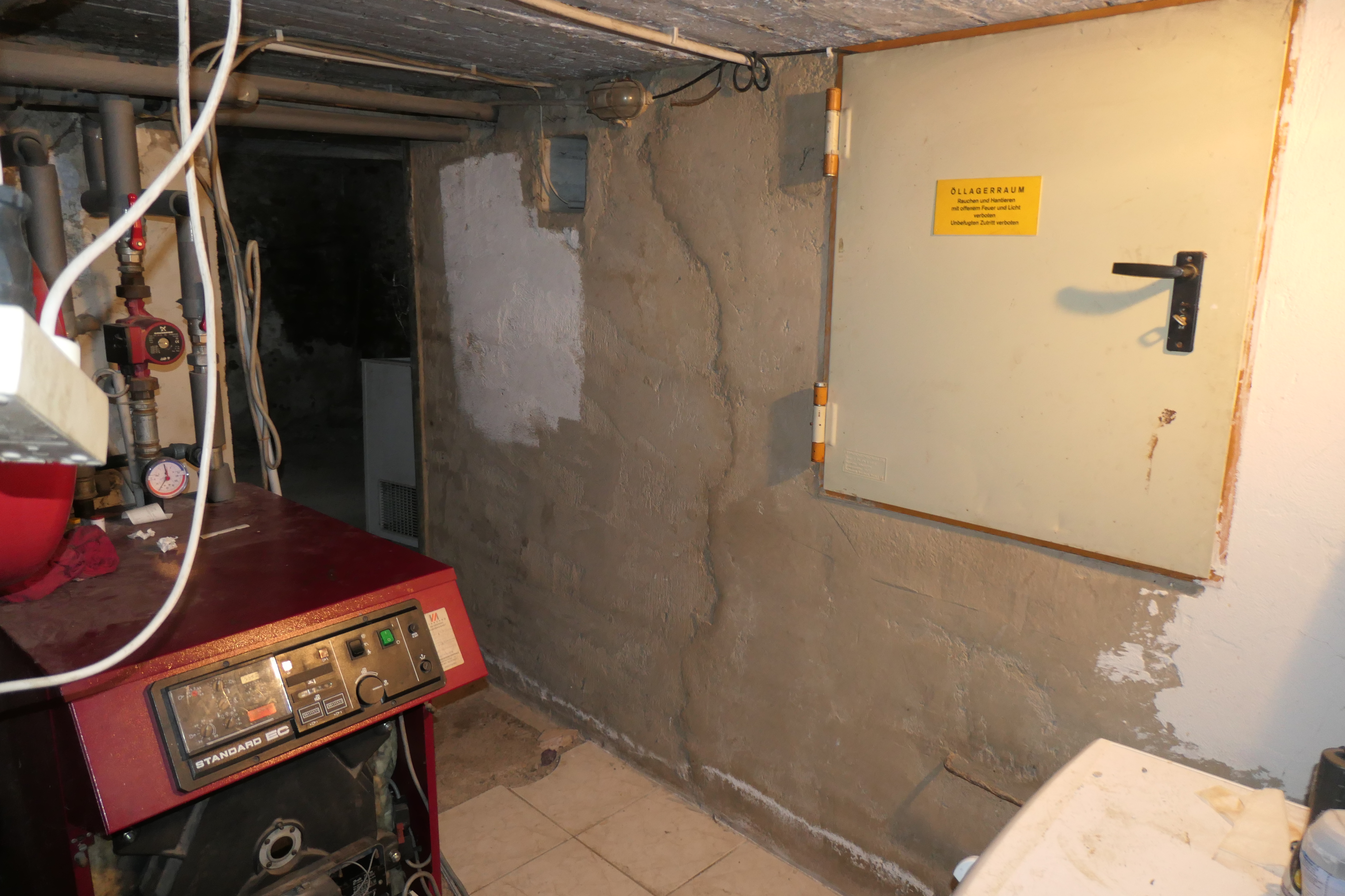 | Beschreibung: | Die Liegenschaft mit den Grundstücknummern .140 und 345/2 erstreckt sich südlich der Wetterturmstraße. Das Grundstück ist im Gesamten polygonal konfiguriert und relativ eben, wobei das Grundstück im westlichen Bereich etwas tiefer als das Straßenniveau der angrenzenden Wetterturmstraße ist. Auf dem Grundstück .140 ist ein Einfamilienwohnhaus mit Kellergeschoß, Hochparterre und ausgebautem Dachgeschoß situiert. Auf dem Grundstück 345/2 sind ein Nebengebäude, welches zu Lagerzwecken genutzt wird, und ein südlich an das Einfamilienwohnhaus angebauter Carport situiert. Beim Einfamilienwohnhaus Wetterturmstraße 3 handelt es sich um ein in den Jahren 1957 - 1963 in Massivbauweise errichtetes Gebäude. Erhebungen des Sachverständigen im Bauamt der Gemeinde St. Radegund haben keine Bewilligungsunterlagen für das Gebäude an sich ergeben, seitens des Bauamtes ist im Zuge dieser Erhebung jedoch die Auskunft erteilt worden, dass es sich aufgrund des Baualters des Gebäudes um einen konsensmäßigen Bestand handelt und keinerlei offene Verfahren anhängig sind. Für den nachträglichen Einbau einer Ölfeuerungsanlage konnte eine Genehmigung erhoben werden. Das Gebäude ist in einer einfachen, zweckmäßigen Ausführung errichtet worden und verfügt über ein Kellergeschoß, ein Erdgeschoß, welches als Hochparterre ausgeführt worden ist und ein ausgebautes Dachgeschoß. Die Außenwände sind als Ziegelmassivwände ausgeführt und innen- sowie außenseitig verputzt. Die Zwischenwände sind ebenfalls als Ziegelwände ausgeführt und beidseitig verputzt. Die Fußböden bestehen aus Fliesen im Sanitärbereich sowie aus Laminat und PVC-Belägen in den Zimmern und Vorräumen. Im Eingangsbereich ist der Boden mit Steinfliesen belegt. In dem Sanitärraum sind die Wände großteils mit keramischen Fliesen belegt, ansonsten sind sie gemalen. Die Fenster sind als Kunststofffenster mit Zweischeiben-Isolierverglasung ausgeführt. Die Innentüren sind als Holzplatten und als Holzwerkstofftüren ausgeführt, teilweise verfügen sie über Glasausschnitte. Eine Innentüre ist als Glasschiebetüre ausgeführt. Die Beheizung erfolgt mittels einer im Kellergeschoß situierten Öl-Zentralheizung, die Wärmeabgabe erfolgt über Radiatoren. Die Funktionstüchtigkeit der Heizanlage konnte nicht überprüft werden. Das Dach besteht aus einem Satteldach mit einer Faserzementplatteneindeckung. Im Bereich des neben dem Eingang situierten Schlafzimmers wurde ein, lt. Vertreter der verpflichteten Partei technisch behobener, Wasserschaden festgestellt, die Oberflächeninstandsetztung ist noch durchzuführen. Weiters wurden offene Fertigstellungsarbeiten in geringem Ausmaß (z.B. Türstockverkleidungen) festgestellt. Das Wohnhaus ist im Bereich des Dachgeschoßes und das Nebengebäude vollumfänglich mit diversen Fahrnissen belegt. |