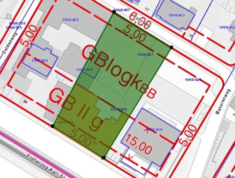 | Beschreibung: | Auf der Liegenschaft befinden sich einige Bäume und Sträucher sowie ein Holzschuppen. Die Liegenschaft hat einen annähernd rechteckigen Grundriss. Von der Erzherzog-Karl- Straße aus ist das Niveau der Liegenschaft über eine Böschung zu erreichen, das allgemeine Niveau befindet sich rund drei Meter unterhalb des Straßenniveaus der Erzherzog-Karl- Straße. Die Liegenschaft ist großteils mit Wiese sowie einigen Bäumen (teilweise mit bis zu ca. 40 cm Durchmesser) und Sträuchern bewachsen, weiters befindet sich darauf ein Holzschuppen. Eine Zugangs-bzw. Zufahrtsmöglichkeit zur Liegenschaft besteht vom Masurenweg aus. Zu näheren Informationen zum bestehenden Baurechtsvertrag mit der betreibenden Partei wird auf das Sachverständigengutachten (darin Seite 13f) verwiesen. |