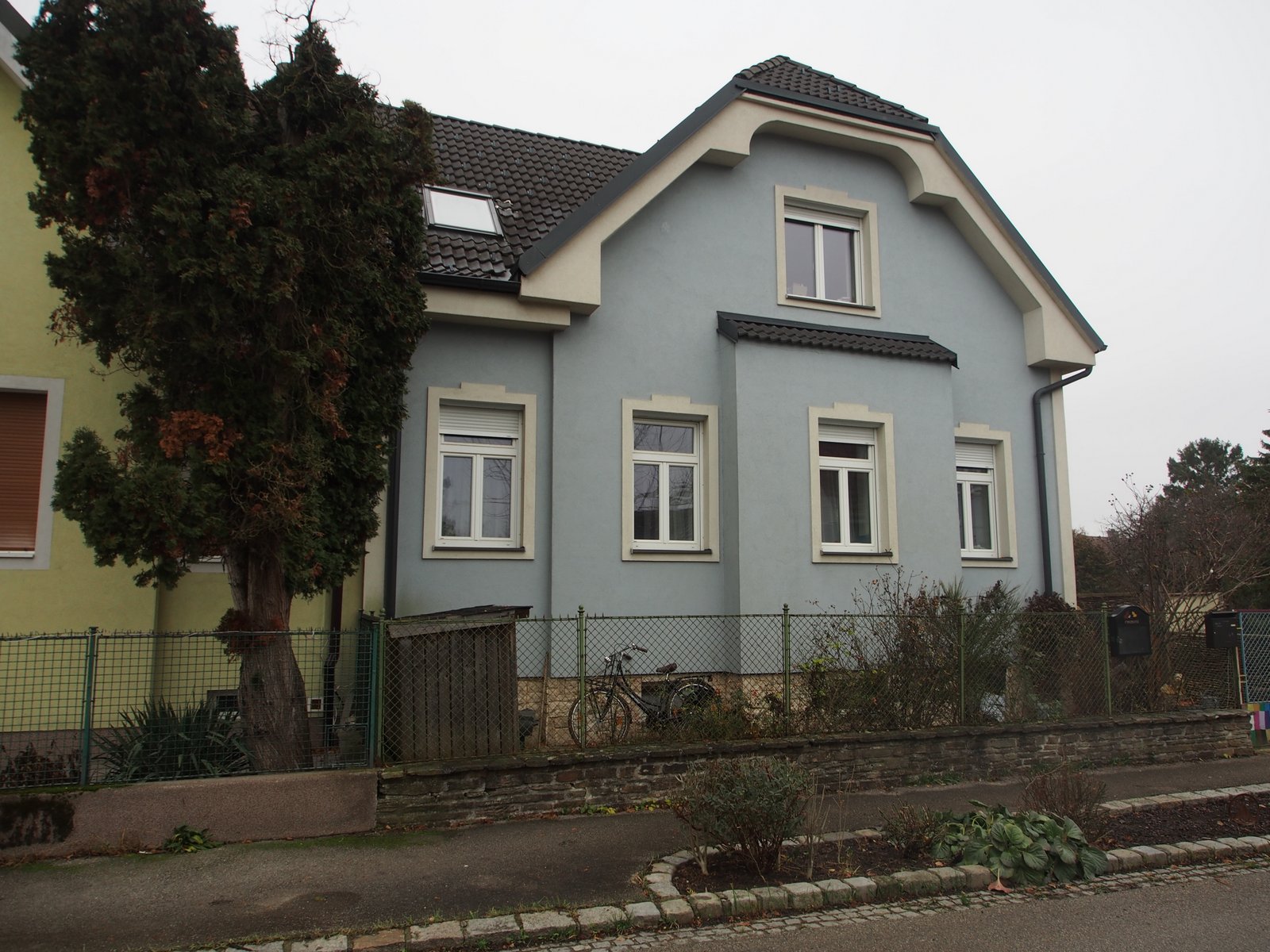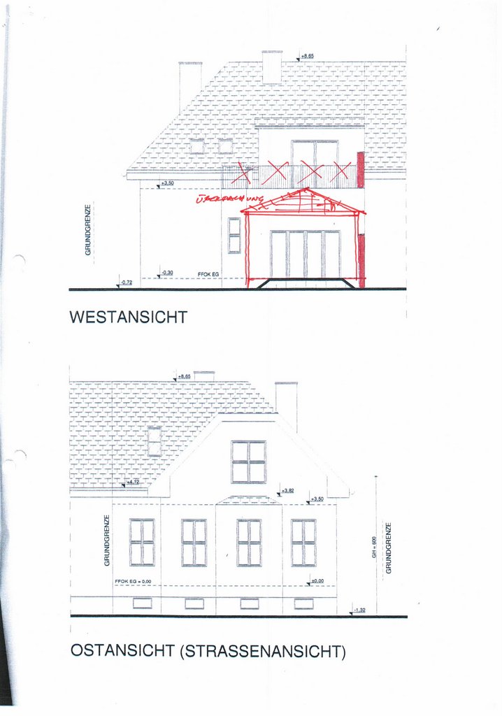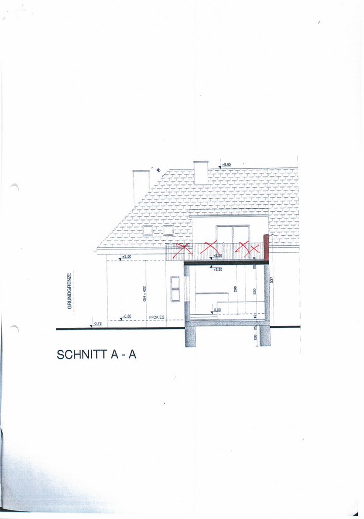 | Beschreibung: | Die zu bewertende Liegenschaft EZ 299 KG Wolfpassing besteht aus den Grundstücken .137 und 632/38. Die Grundstücke liegen gemäß Grundbuchauszug nicht im Grenzkataster und weisen eine Fläche von gesamt 618 m² auf. Laut Nutzungsbezeichnung des Grundbuches sind beim Grundstück .137 als „Baufläche-Gebäude“ 90 m² und beim Grundstück 632/38 als „Baufläche-Gebäude“ 119 m² bzw. als „Garten“ 409 m² ausgewiesen. Die Realität liegt im zentralen Siedlungsgebiet des Ortes Wolfpassing an der vorbeiführenden Landesstraße in der Flächenwidmung „Bauland-Wohngebiet“. In nördlicher, östlicher und südlicher Richtung befinden sich die Liegenschaften in der Widmung „BW - Bauland-Wohngebiet“ bzw. westlich davon in der Widmung „Glf - Grünland Land- und Forstwirtschaft“. Richtung Süden befindet sich in einem Abstand von ca. 100 m die Siedlungsgrenze und es liegen die Grundstücke in der Widmung „Gfrei – Grünland Land- und Forstwirtschaft - Freihaltefläche“ und die Grundstücke werden als Ackerflächen genutzt. Das Grundstück bildet in der Natur annähernd einen trapezförmigen Grundriss samt einem Wohn- und Nebengebäude. Das 3-geschoßige Wohngebäude wurde in Massivbauweise mit einem Schopfwalmdach bzw. beim Zubau mit einem Flachdach errichtet. Der L-förmige Grundriss des Wohngebäudes weist die Abmessungen laut Einreichplan vom Juli 2008 von Länge x Breite = ca. 18,1 m x verlaufend von 5,0 m bis 9,5 m auf. Die Traufenhöhe beträgt verlaufend von ca. 4,2 m bis 5,0 m bzw. die Firsthöhe ca. 9,4 m über dem Geländeniveau. Im Untergeschoß befinden sich ein Vorraum mit Stiegenaufgang, ein Technikraum und zwei Kellerräume. Die Erschließung des Erdgeschoßes erfolgt innen über eine Massivtreppe bzw. ist der Zugang auch vom Garten aus möglich. Im Erdgeschoß befinden sich die allgemeinen Wohnräume ein Vorraum, eine Küche, ein Ess- und Wohnzimmer, ein Abstellraum, ein Bad mit WC sowie zwei Zimmer. Im Dachgeschoß sind ein Vorraum, zwei Zimmer mit Schrankraum sowie ein Bad untergebracht. Beim Zubau wurde am Flachdach eine PV-Anlage montiert. An der westlichen Gebäudeseite besteht eine Terrasse samt Terrassenüberdachung welche vom Wohnzimmer aus betreten werden kann. An der nördlichen Grundstücksgrenze wurde ein Nebengebäude mit Flachdach errichtet. An der westlichen Seite des Nebengebäudes wurde ein Anbau als Gitterkonstruktion und Freibereich für Hunde geschaffen. Das Grundstück wird von Osten über eine Zufahrt samt einem Zugangsweg betreten. Der Garten ist als Grasfläche angelegt bzw. wurden zur Gestaltung Bäume und Sträucher gepflanzt. Im westlichen Grundstücksbereich besteht eine Gartenhütte in Holzleichtbauweise. |