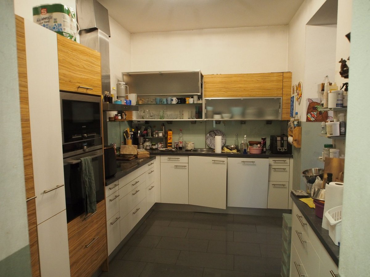 | mitzuversteigerndes Zubehör: | Es besteht eine Einbauküche der Firma EWE mit einem U-förmigen Einbaublock und einer Länge von ca. 3,3 m + 2,7 m + 1,6 m = 7,6 m in Verbundbauweise mit Unter- und Oberschränken samt Laden und Türen oder Klappelementen. Die Küche wurde ca. 2008 eingebaut. Eingebaut sind: •eine Niro-Küchenspüle mit Kalt- und Warmwasseranschluss samt Mischarmatur; •ein Backrohr Fa. Siemens (Breite 60 cm); •Ceranfeld Fa. Siemens (Breite 60 cm) samt Niro-Dunstabzug; •ein Geschirrspüler Firma Elektra Bregenz (Breite 60cm); •Mikrowellenherd Firma Siemens (Breite 60 cm). |