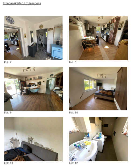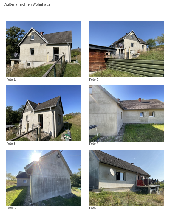 | Beschreibung: | •Lage Die bewertungsgegenständliche Liegenschaft befindet sich in der Marktgemeinde Straß in Steiermark, Bezirk Leibnitz, Steiermark. Die Umgebung ist durch eine aufgelockerte Bebauung mit Einfamilienhäusern geprägt. Die Wohnliegenschaft liegt in unmittelbarer Nähe zur Bahntrasse sowie Autobahn. Die verkehrstechnische Anbindung ist gut – der nächste Bahnhof liegt in ca. 750 m Entfernung, der nächste Autobahnanschluss (A9) liegt in ca. 400 m Entfernung. Einkaufsmöglichkeiten, Schulen und öffentliche Einrichtungen sind in wenigen Fahrminuten erreichbar. •Flächenwidmung Grundstück Das bebaute Grundstück ist laut Flächenwidmungsplan als Freiland ausgewiesen, das als Zufahrt genutzte Grundstück als Verkehrsfläche. •Gebäudebeschreibung Objektart: Einfamilienhaus Bauweise: Massivbau Baujahr: 1956 gem. Bauakt, Zubauten 1972 (gem. Auskunft Eigentümer) und 1974 Geschoße: Erdgeschoss, teilunterkellert Sanierungen: Dacheindeckung, Fenster (2009), teilw. WDVS (2012/13) Bruttogeschossflächen: KG: ~33 m², EG: ~85 m², Terrasse: ~15 m², Außenanlagen: Befestigte Zufahrt und Unterstellplatz, teilw. Einfriedung, Grünflächen mit Teilbepflanzung und -bestockung •Ausstattung Heizung: Elektro-Einzelradiatoren, keine Zentralheizung Fenster: Kunststofffenster Sanitärbereiche: normaler Ausstattungsstandard, abgewohnter Allgemeinzustand Elektrik: Standardinstallationen Bodenbeläge: überwiegend Laminat und Fliesen |