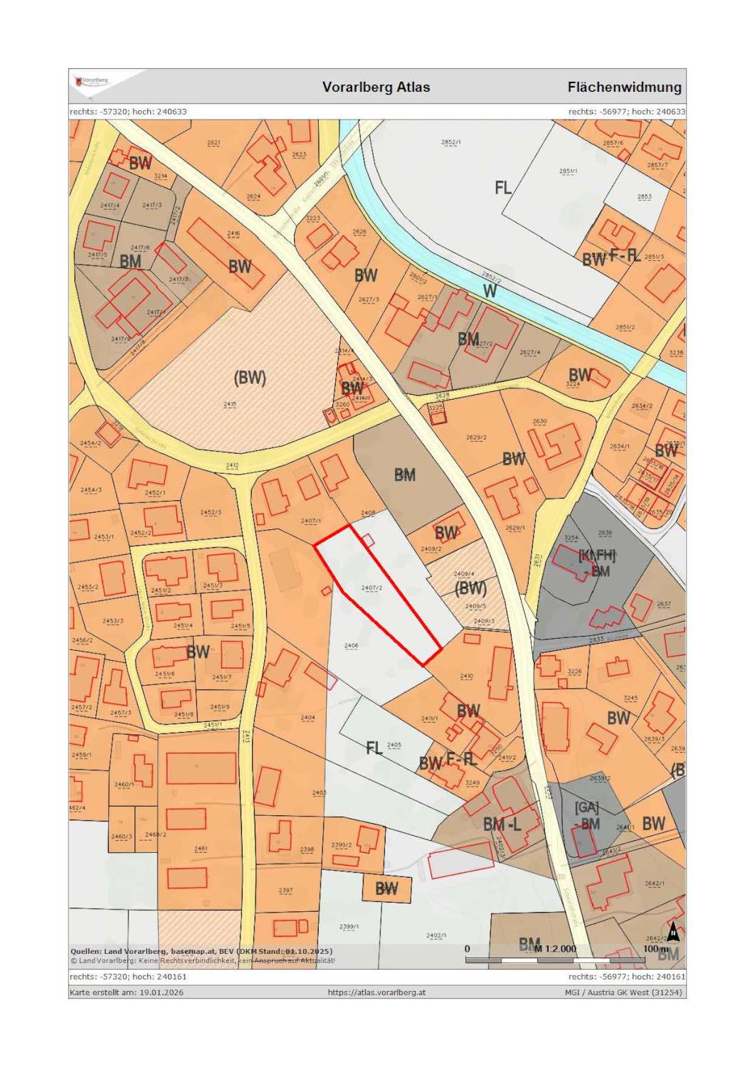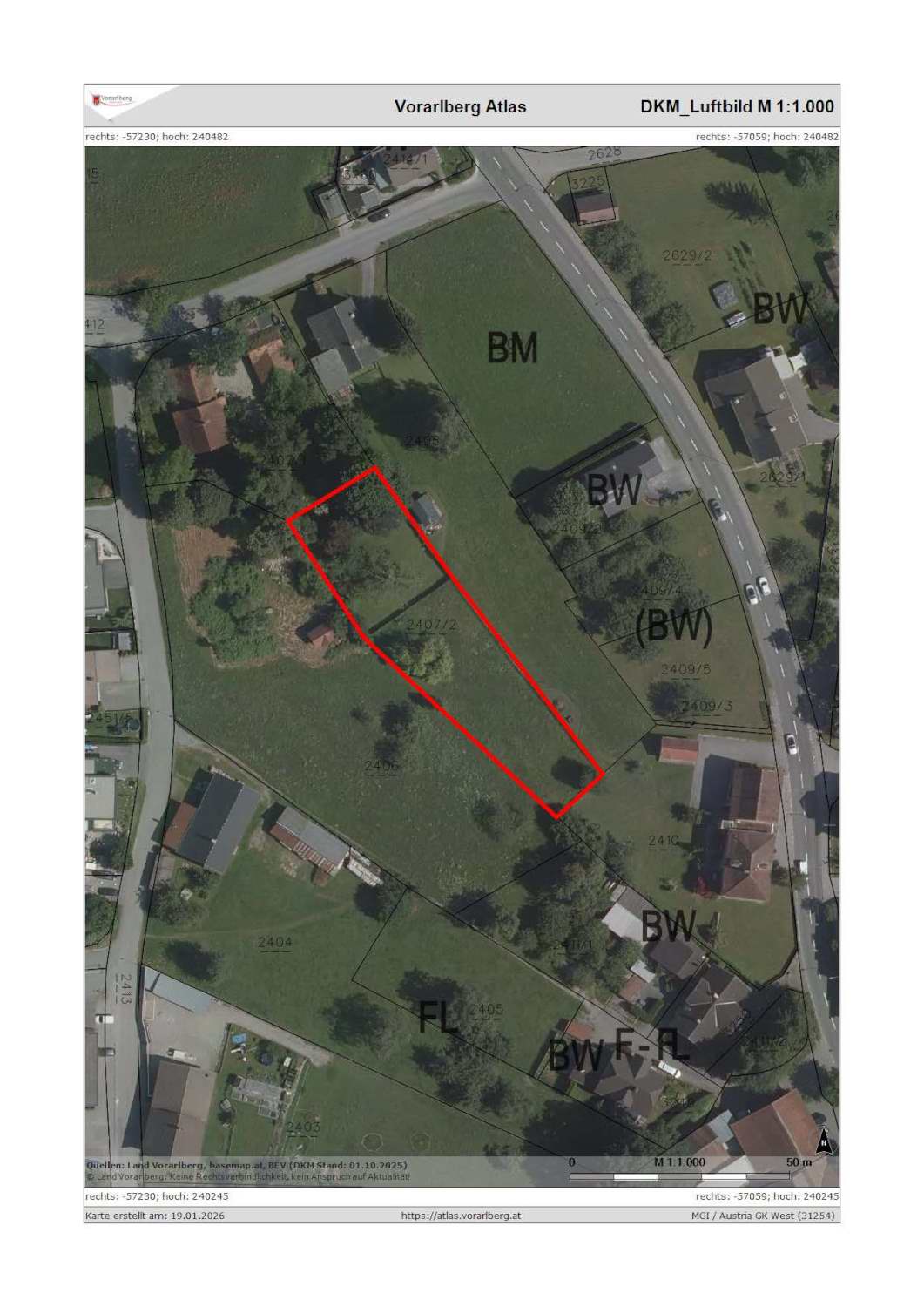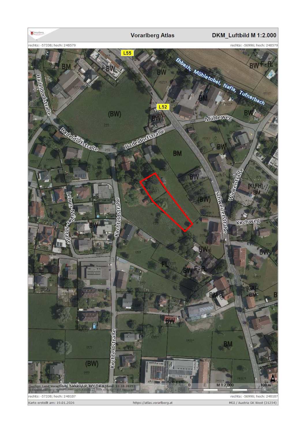 | Beschreibung: | Die gegenständliche Liegenschaft befindet sich in der Gemeinde Meiningen, unweit der Pfarrkirche Meiningen »Heilige Agatha« und unweit des Gemeindeamtes, zwischen der Landesstraße L 52 Schweizerstraße und der Gemeindestraße Kirchfeldstraße. Es besteht keine geregelte Verkehrsanbindung. |