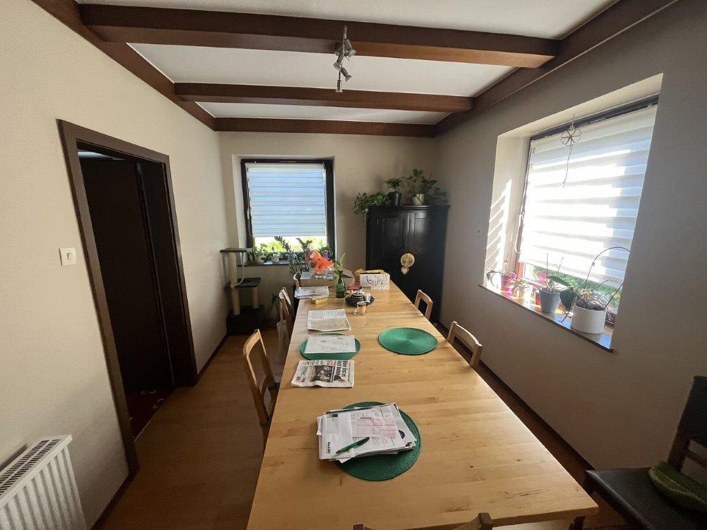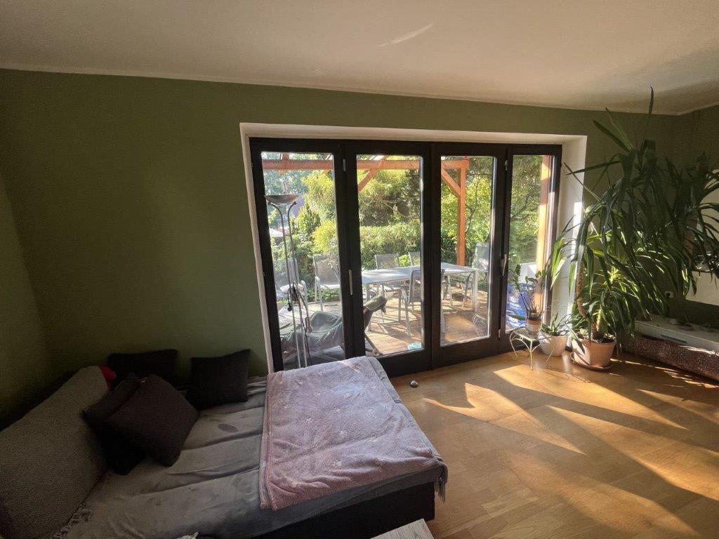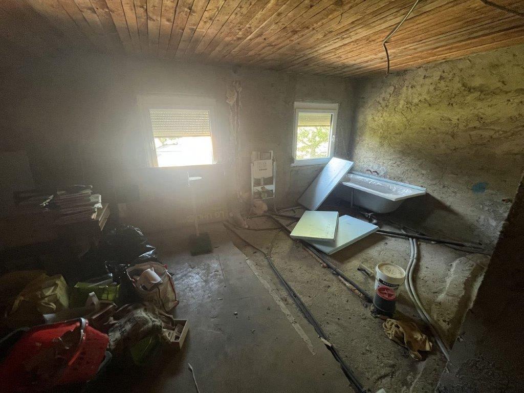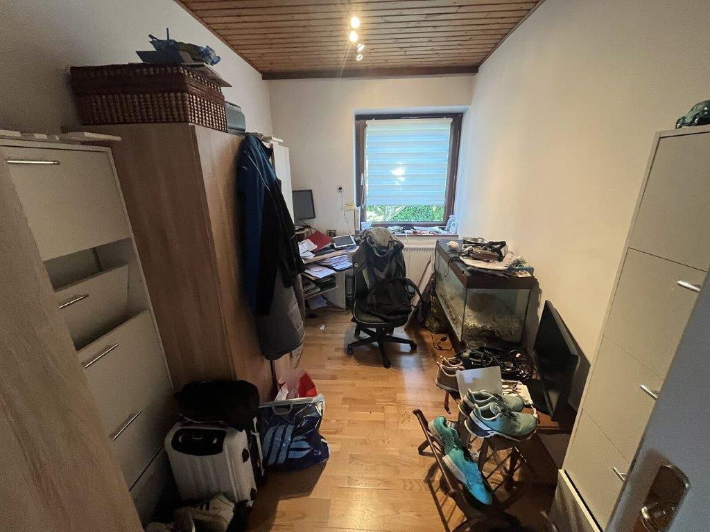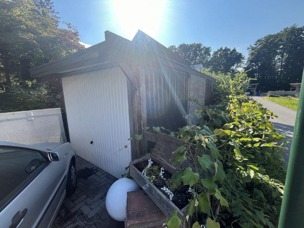 Beschreibung: | Die Bewertungsliegenschaft befindet sich in einem ruhigen, überwiegend von Einfamilienhäusern und landwirtschaftlichen Nutzungen geprägten Umfeld der Marktgemeinde Wagna. Im unmittelbaren Umfeld der Liegenschaft befinden sich weder Banken, Nahversorger noch sonstige kommerzielle Infrastruktur. Die Stadt Leibnitz, wird in wenigen Fahrminuten mit dem PKW über die L 602 erreicht. In der Nähe der Bewertungsliegenschaft befindet sich eine Haltestelle des regionalen Autobusunternehmens. Die Liegenschaft weist eine rechteckige Konfiguration auf. Es ist etwa 33 m lang und 23,5 breit und weist zum Zufahrtsweg nach Nordosten vom Silberweg bis zur östlichen Gebäudeseite starke Böschung auf. Dem Gebäude ist nordwestlich eine Terrasse vorgelagert, von der das Gelände zum Garten ebenfalls abgeböscht und mit Wasserbausteinen gestützt ist. Das Grundstück ist zum Teil mit einem Holzzaun auf einem Betonsockel und an der südwestlichen Grundgrenze mit einem Maschendrahtzaun eingefriedet. Die Freiflächen bestehen aus Wiese mit Büschen, Bäumen und Gestaltungsgrün. Das etwa 1970/1971 errichtete Wohnhaus wurde in Massivbauweise errichtet und besteht aus einem Keller mit Garage, dem Erdgeschoss und einem mit Dachschrägen ausgebauten Dachgeschoss. Das Objekt bildet einen rechteckigen Grundriss und ist mit einem Satteldach abgedeckt. Die Dachhaut besteht aus Welleternit. Die Außenfassade ist verputzt sowie mit Anstrich versehen. Das aufgehende Mauerwerk im Inneren ist gespachtelt und gestrichen. Die innere Erschließung erfolgt über massive Treppen, die Treppen sind mit keramischen Fliesen ausgestattet. Im Dachgeschoss werden die beiden Abstellräume als Wohnräume genutzt. Diese Nutzung ist nicht von der Baubewilligung umfasst. Der Ausbau im Dachgeschoss weicht darüber hinaus vom bewilligten Einreichplan ab. Im Raum „Dachboden“ wurde mit ersten Ausbauarbeiten ebenfalls zu nicht bewilligten Wohnzwecken begonnen. Die Fenster und Terrassen/Balkontüren sind mit Holzrahmen und Isolierverglasung ausgeführt. Im Dachgeschoss wurden an der nordöstlichen Gebäudestirn Kunststofffenster mit außen liegenden Rollos zur Verdunkelung eingebaut, im Vorraum des Dachgeschosses ist ein Dachflächenfenster aus Holz eingebaut, die beiden zu Wohnzwecken ausgebauten, nach Südwesten orientierten Räume, sind mit einer Balkontüre in Holzausführung bzw mit einem Holzfenster ausgestattet. Die Holzfenster und Balkontüren aus Holz sind zur Verdunkelung mit außen liegenden Fensterbalken ausgeführt. Das Objekt wird über elektrische Radiatoren beheizt. Die Elektrik befindet sich nicht am letzten Stand der Technik, ist jedoch funktionsfähig. Die Gehbeläge sind im Vorraum, in der Küche und in den Sanitärräumen Fliesen ausgestattet, in den Wohnräumen wurde im Erdgeschoss Parkett verlegt, das Dachgeschoss ist mit Laminatböden ausgestattet. Als Türen sind unterschiedliche Vollbautüren eingebaut. Im Erdgeschoss wurden die Deckenuntersichten teilweise mit abgehängten Holzpaneelen verkleidet. Die Ausstattung der Sanitärräume ist in normaler Qualität ausgeführt worden. Dem Erdgeschoss ist eine Holzerrasse vorgelagert, es wurden Pfosten, Pfetten und Sparren für eine Überdachung errichtet. Vom südwestlichen Zimmer im Dachgeschoss ist ein Balkon erschlossen. Der Keller ist teilweise keramisch verfliest und wird zum großen Teil als Werkstatt genutzt. Von der mit einer Holzkonstruktion mit Trapezblecheideckung überdachten Zufahrt wird eine mit einem Kipptor gesicherte Garage erreicht. Die frei stehende Garage ist aufgrund der Ausführung als wertlos zu bezeichnen. Das Gebäude weist eine nicht mehr zeitgemäße Bauausführung und Ausstattung auf. Die Fliesen und die Sanitärausstattung entsprechen ebenso wie die Raumaufteilung nicht mehr den modernen Wohnansprüchen. Das Objekt weist davon abgesehen im Inneren einen, dem Alter entsprechenden, normalen erhaltenen Allgemeinzustand auf, im Keller besteht jedoch nicht zuletzt durch die massiven Hochwassereinflüsse im Jahr 2023 erhöhter Instandhaltungs- und Instandsetzungsbedarf, der nicht durch in der normalen Alterswertminderung umfasst ist. Dieser wird durch die Zustandsnote 2,5 nach HEIDECK berücksichtigt. |