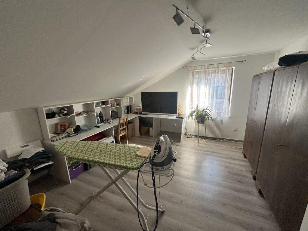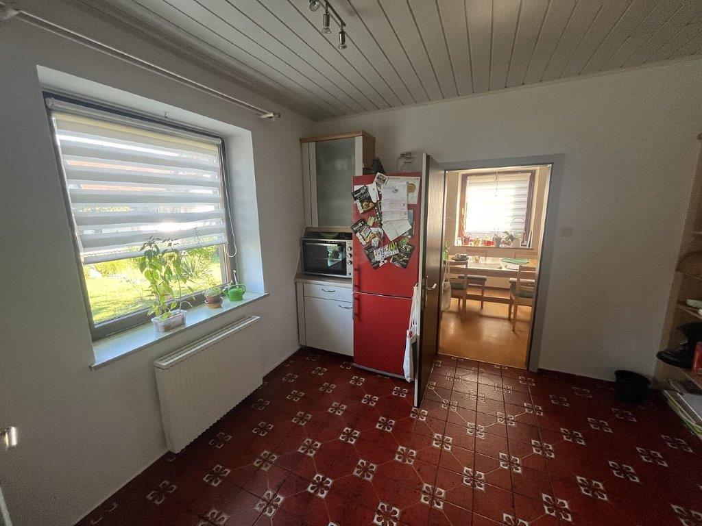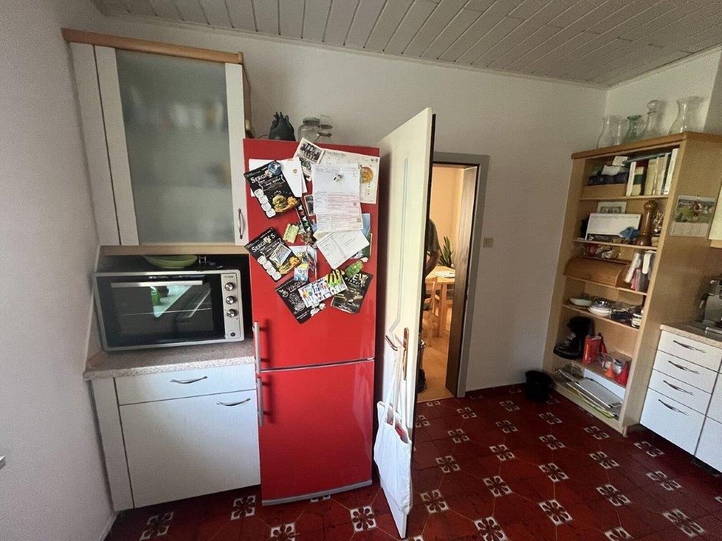 mitzuversteigerndes Zubehör: | Als Zubehör ist eine Einbauküche mit furnierten Korpussen und einer Kunststoffarbeitsplatte vorhanden. Sie besteht aus Unterschränken und Oberschränken mit offenen Regalen. Die Küche ist mit einem Cerankochfeld, einer Spüle, einem Geschirrspüler, einem Dunstabzug und einem frei stehenden Kühlschrank ausgestattet. Unter dem Cerankochfeld fehlt der Einbaukörper, es ist kein Backrohr vorhanden. Dem Zubehör kommt kein gesonderter Wert zu. |