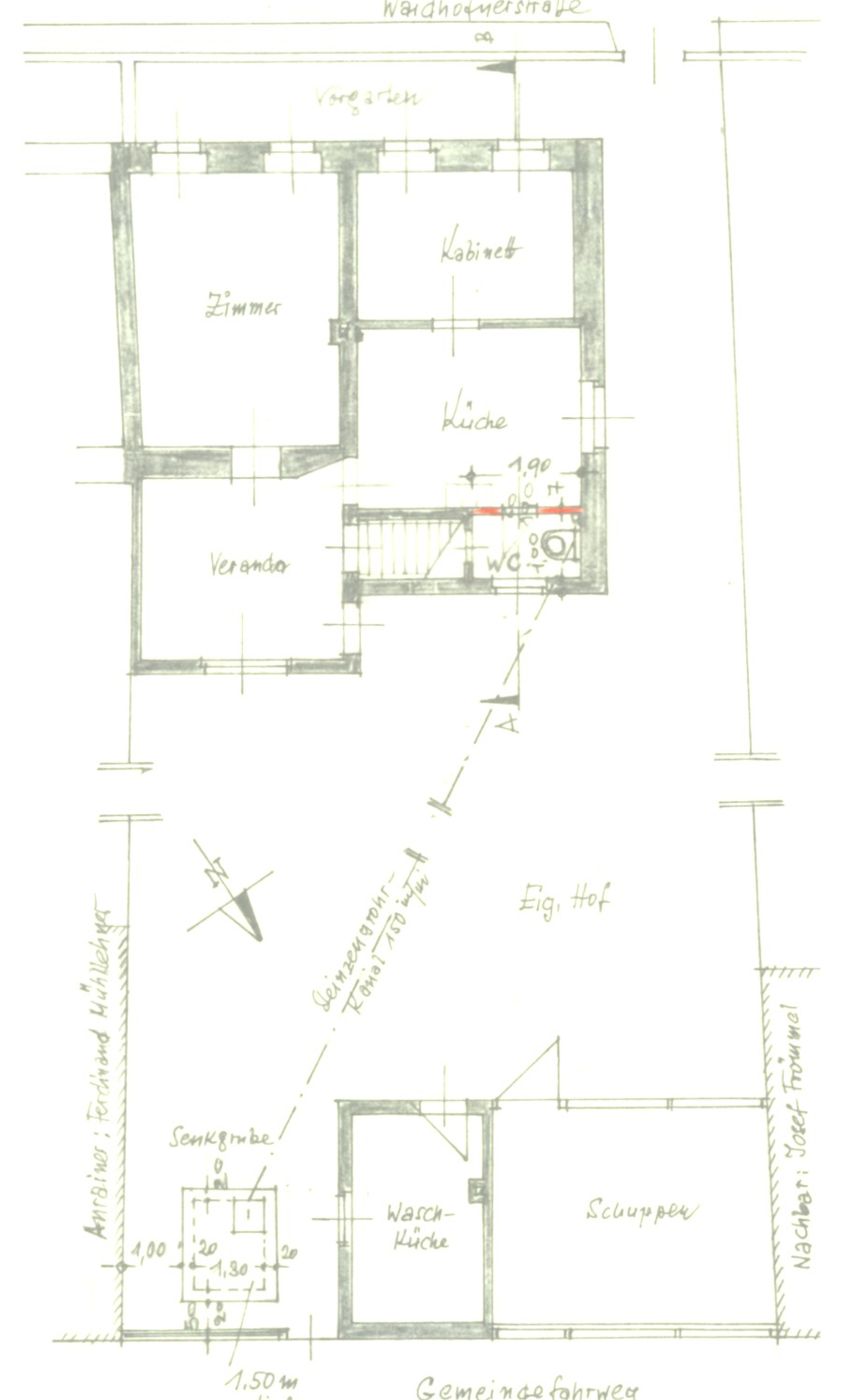 Beschreibung: | Wohnhaus, bestehend aus einer geringfügigen Teilunterkellerung und einem Erdgeschoß sowie einem nicht ausgebauten Dachboden Nebengebäude |