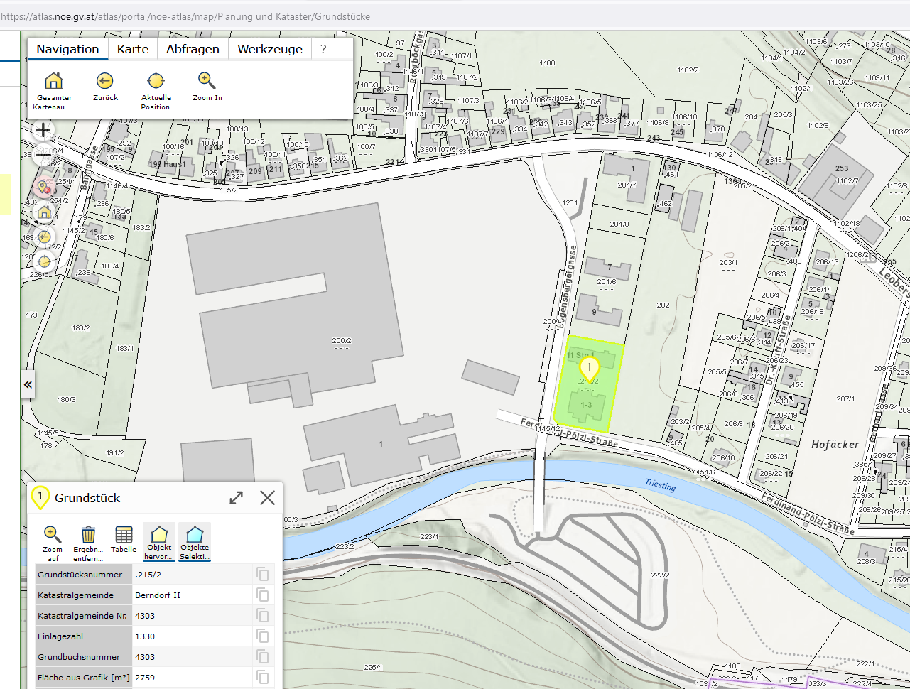 | Liegenschaftsadresse: | 2560 Berndorf Ferdinand-Pölzl-Straße 1-3, Bogensbergergasse 11 |