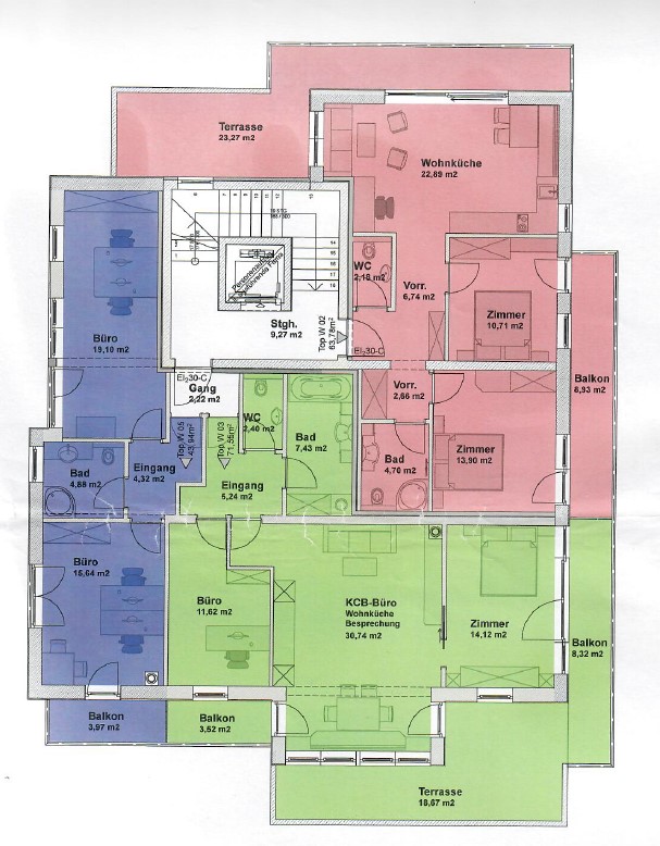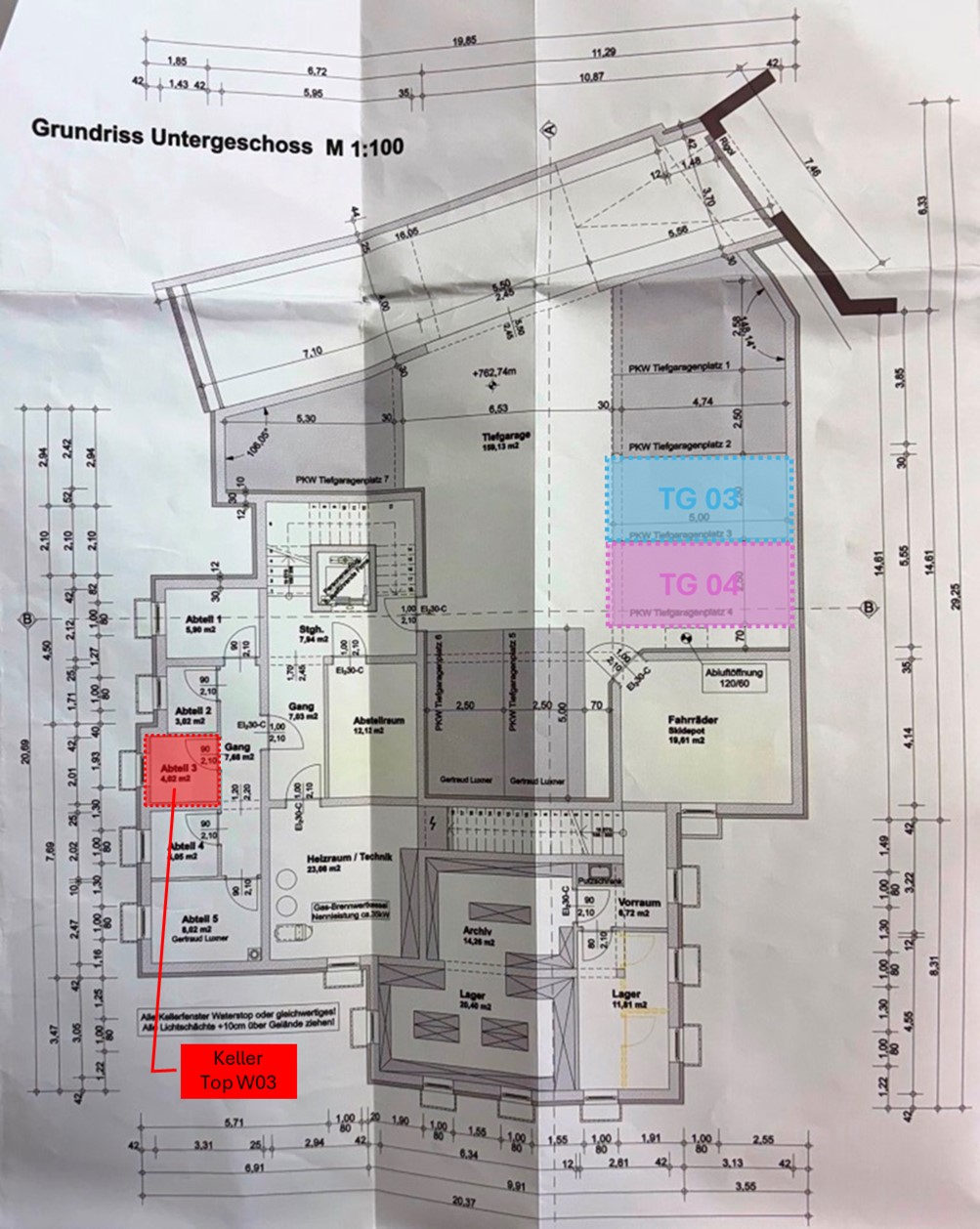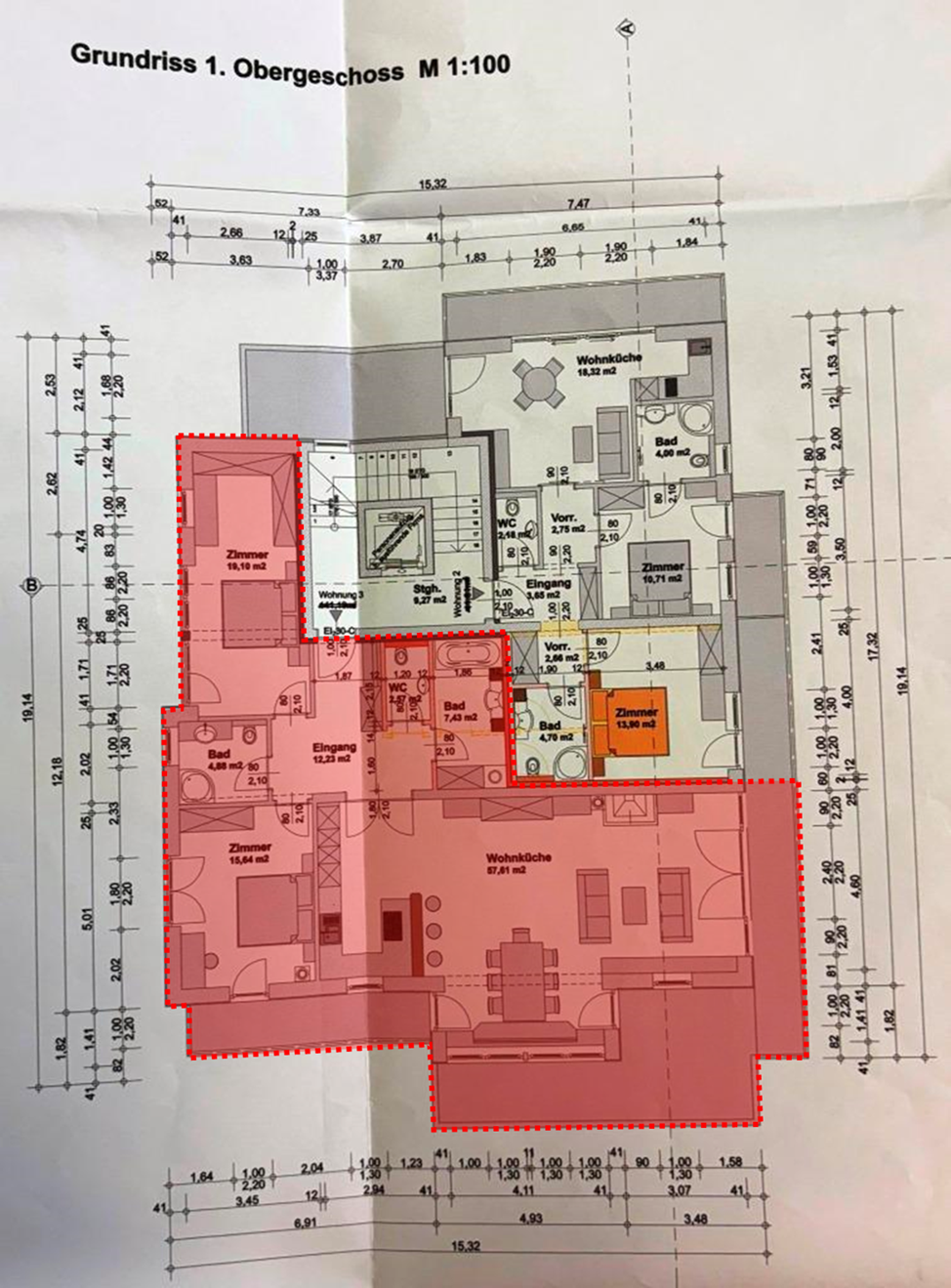 | Beschreibung: | Die bewertungsgegenständliche Liegenschaft in EZ 261, welche sich im Stadtgebiet von Kitzbühel, unmittelbar an der Jochberger Straße / B161 befindet, stellt ein gemischt genutztes Objekt mit überwiegen-der Wohnnutzung dar. Die Zufahrt zum Objekt ist ausgehend von der über die Gemeindestraße „Ried – Zephirau “ (öffentliches Gut) über eine auf Gst. 1673/5 situierte Zufahrtsstraße (grundbücherlich gesichertes Wegerecht, vgl. Ausführungen oben!) sichergestellt. Die Zufahrt zum ist somit ausschließlich über die o.g. Straße – und nicht wie die Adresse vermuten lässt – über die Jochberger Straße / B161 möglich. Das Grundstück ist großflächig versiegelt. Die vorhandenen Außenflächen bestehen zum überwiegenden Teil aus asphaltierten Bereichen und dienen der Zufahrt sowie als Parkplätze. Ausgehend von der Zufahrtsstraße erstreckt sich eine vergleichsweise Stelle Abfahrt in die Tiefgarage, diese dient darüber hin-aus auch als Zufahrt zur benachbarten Tiefgarage (vgl. Ausführungen oben bzgl. grundbücherlichem Wegerecht). Die Erschließung der baulichen Anlage erfolgt ausgehend vom asphaltierten Vorhof über ein innen gele-genes Treppenhaus. Ferner ist ein Personenaufzug vorhanden. Das Gebäude besteht aus insgesamt vier Stockwerken und umfasst vier Wohnungen sowie eine Büroeinheit im Erdgeschoss. Das Kellergeschoss beherbergt neben der Tiefgarage mit insg. sieben PKW-Stellplätzen auch die den jeweiligen Einheiten zugeordneten Kellerabteile, einen Heiz-/Technikraum und einen allgemeinen Abstell-raum. Ein ebenso vorhandener Fahrrad-/Skiraum wurde dem Eigentümer der Büroeinheit zur exklusiven Nutzung überlassen (vgl. Ausführungen oben). Ferner sind im Kellergeschoss verschiedene Lager- bzw. Archivräumlichkeiten der Büroeinheit vorhanden, welche direkt über diese Einheit erschlossen werden / über einen eigenen Kellerabgang verfügen und nicht von den Allgemeinflächen aus zugänglich ist. Die bewertungsgegenständliche Wohnung Top W03 befindet sich im (ersten) Obergeschoss des Hauses und ist zur B161 gelegen. Hinsichtlich der inneren Raumaufteilung ist zwischen dem baurechtlich genehmigten Zustand und dem vorgefundenen Ist-Zustand zu unterscheiden (vgl. diesbezüglich auch Ausführungen im Gutachten). --- Der hier ausgewiesene Verkehrswert versteht sich als Gesamtpreis und entspricht der Summe der einzelnen Verkehrswerte aller hier gegenständlichen Anteile. --- Ohne Anrechnung auf das Meistbot sind nachstende Grundbuchslasten zu übernehmen: 1. Dienstbarkeit C-LNr. 6 des Gehens und Fahrens auf Gst 1665/1 gem. Pkt. II. Dienstbarkeitsvertrag 2015-07-13 für GSt 1673/3 in EZ 2555 2. C-LNr. 14 Benützungsregelung gem. § 17 WEG 2002 gem. Punkt I. Benützungvereinbarung vom 2024-11-12 |