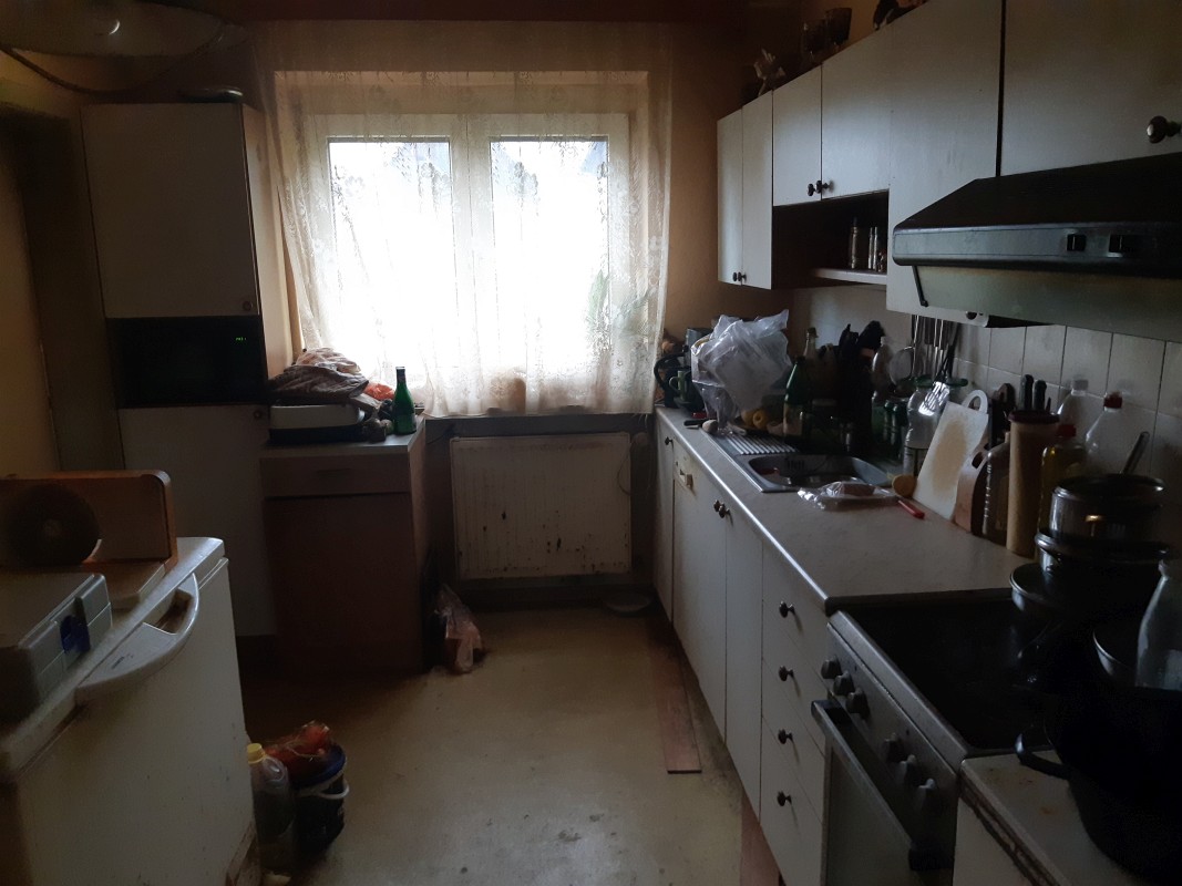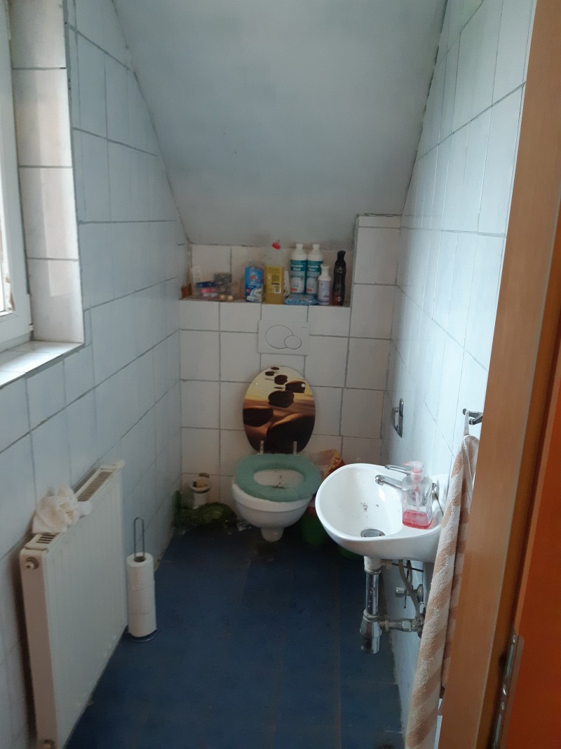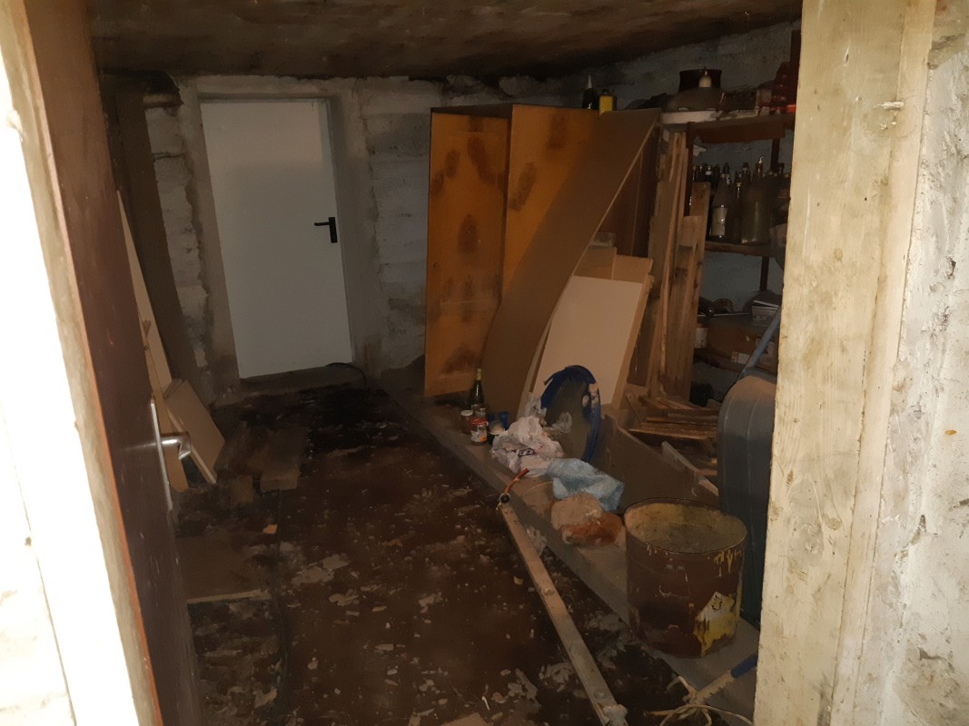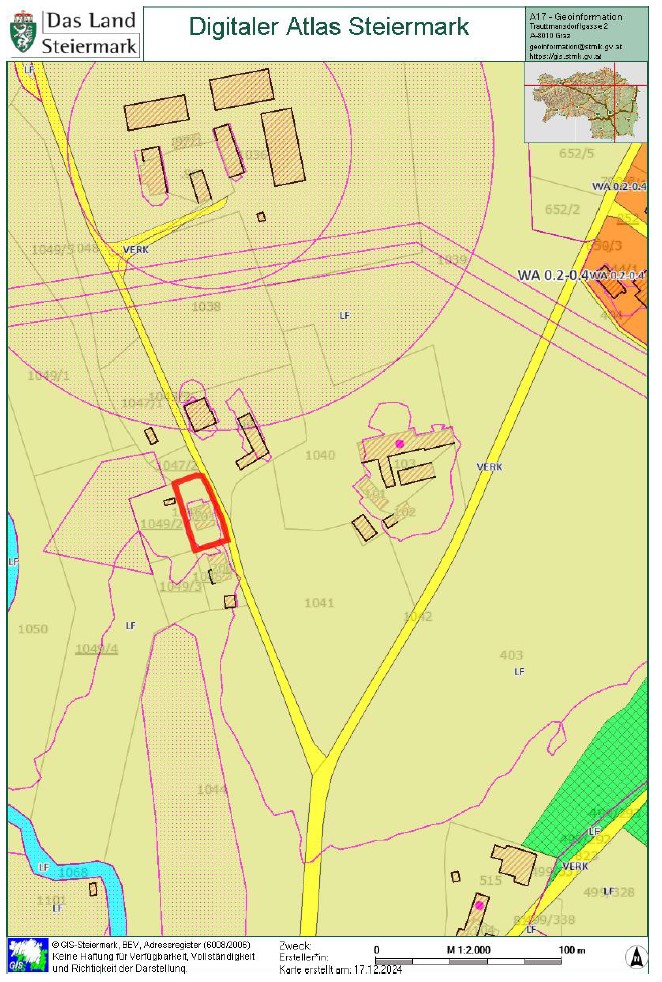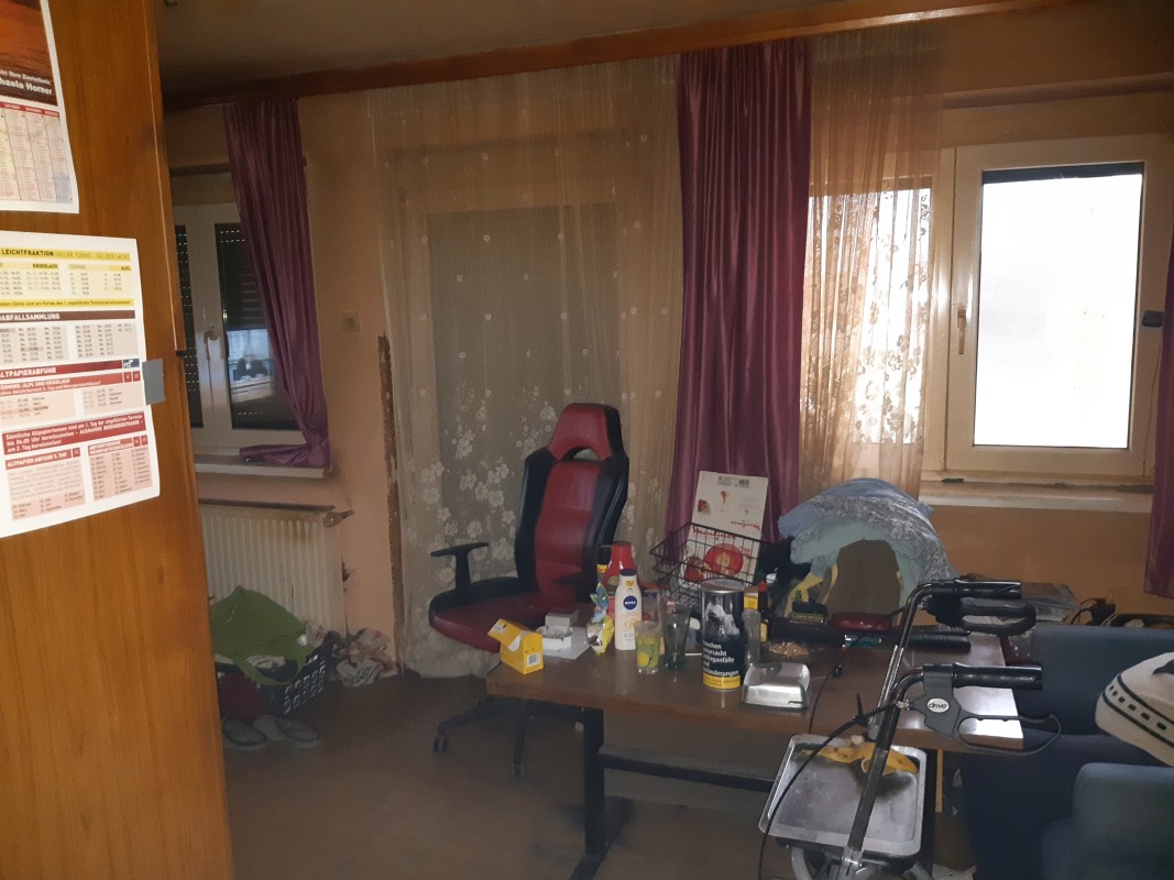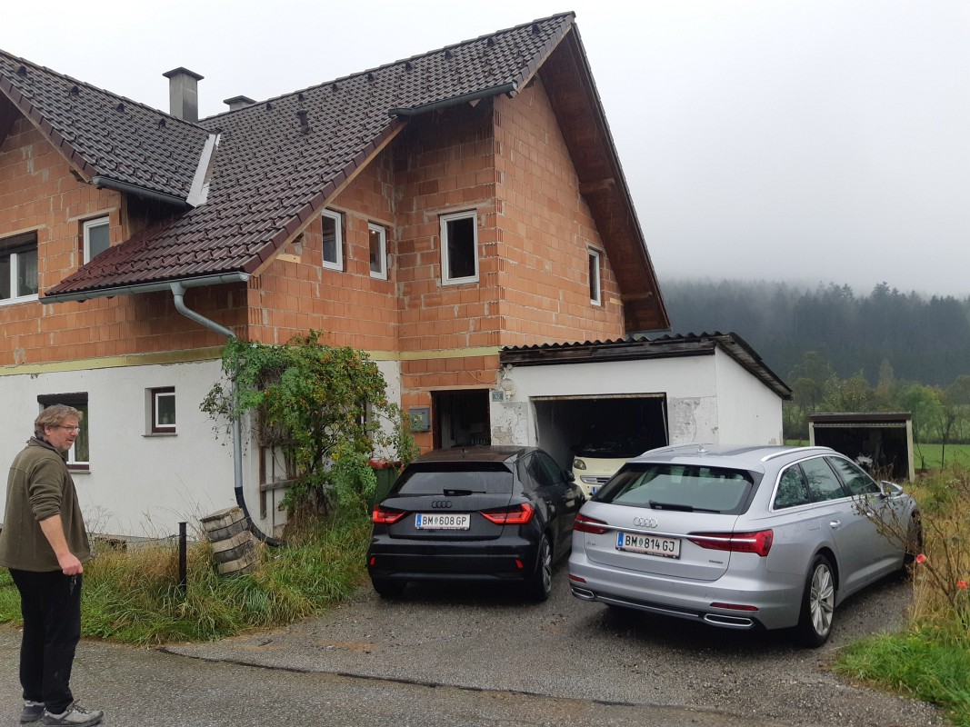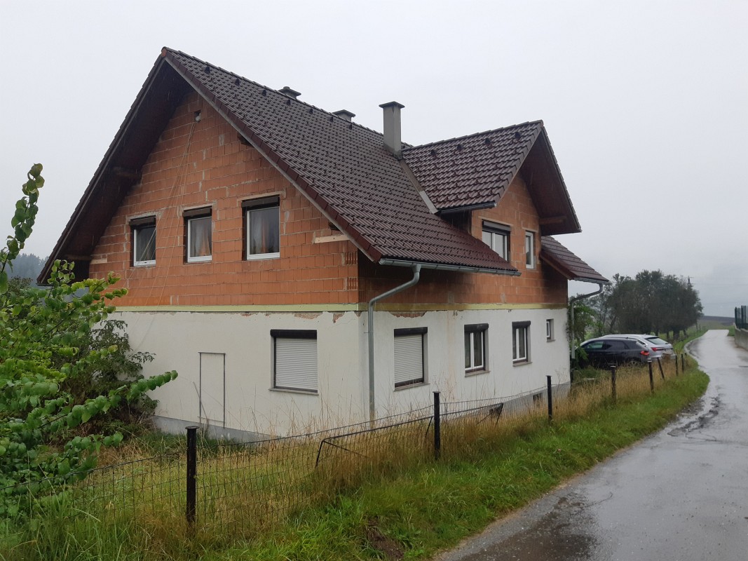 Beschreibung: | Liegenschaft in der Gemeinde Krieglach, südlich der S6-Semmering Schnellstraße, vom Ortszenrtum Krieglach ca. 2,4 km entfernt; Lage laut Flächenwidmungsplan im Freiland Landwirtschaftsgebiet. Grundstück 1046 im Osten direkt an den Wiesenweg grenzend, vom Wiesenweg nach Westen leicht abfallend; Grundstück .201 innerhalb des Grundstücks 1046 liegend und mit Wohnhaus bebaut. W o h n h a u s In massiver Bauweise errichtet, bestehend aus Erdgeschoß, Dachgeschoß und Teilunterkellerung, sowie eingeschossigem Garagenanbau an der Nordseite. Ursprünglich eingeschossig, 2002 Einreichung für Abbruch des Daches und Errichtung des Dachgeschosses; Wohnhaus mit Satteldach und Nebengiebeln an Ost- und Westseite, Garagenanbau mit Pultdach; Stiegenhaus in der Abstandsfläche zwischen Wohnhaus und Garage angeordnet; in beiden Geschossen jeweils eine Wohnung. Kellergeschoß: Heizraum und drei Kellerräume, im Heizraum ein Festbrennstoffkessel und ein Warmwasser-Pufferspeicher (Eintrag von Solaranlage am Dach) installiert; die Böden verfliest bzw. Naturböden. Erdgeschoß: Zentraler Vorraum im Anschluß an das Stiegenhaus, Kellerstiege, WC, Küche 1 mit Durchgang zum Bad, Küche 2 und vier Zimmer. In den Räumen PVC-Bodenbeläge, Wände und Decken mit Anstrichen, in Bad und WC Böden und Wände bis ca. 1,50 m verfliest, Bad mit Dusche und Waschbecken. Dachgeschoß (Mansarde): Zentraler Vorraum im Anschluß an das Stiegenhaus, WC, Bad, Küche, vier Zimmer, Abstellraum. In den Räumen Laminatböden, Wände, Decken und Dachschrägen mit Anstrichen, in Bad und WC Böden und Wände bis Deckenunterkante verfliest, Bad mit Badewanne, Dusche und Waschbecken, WC mit Hänge-WC und Handwaschbecken. Insgesamt sehr vernachlässigte Unterhaltung des Gebäudes, bei Fassade und Innenbereich ausstehende Fertigstellungsarbeiten, Innenbereiche zum Teil in verwahrlostem Zustand. A u ß e n a n l a g e n: Maschengitterzaun entlang Wiesenweg, Garagenzufahrt asphaltiert, unbebaute Flächen sind Wiesen; Fertigteil-Garage westlich des Wohnhauses und ca. 6 m2 große Blechhütte nördlich des Wohnhauses. Insgesamt sehr ungepflegter Zustand, Maschengitterzaun desolat, Wiesen sich selbst überlassen. |