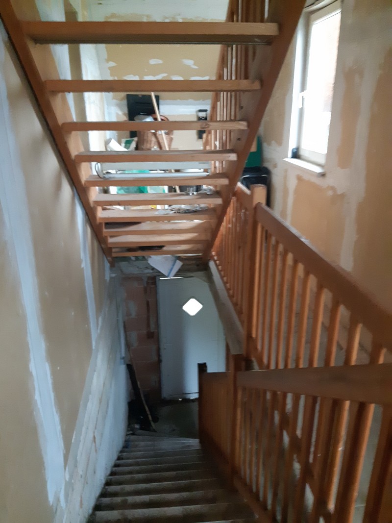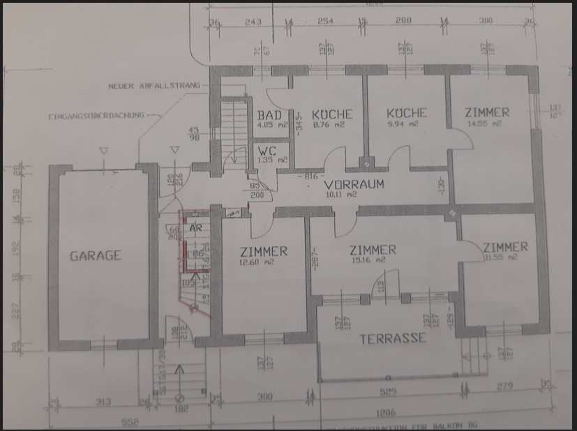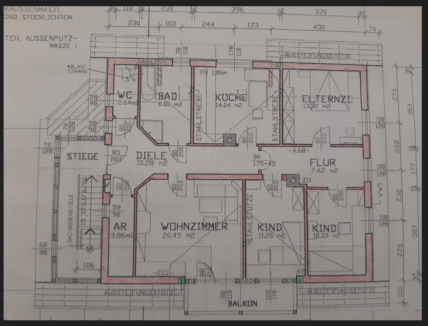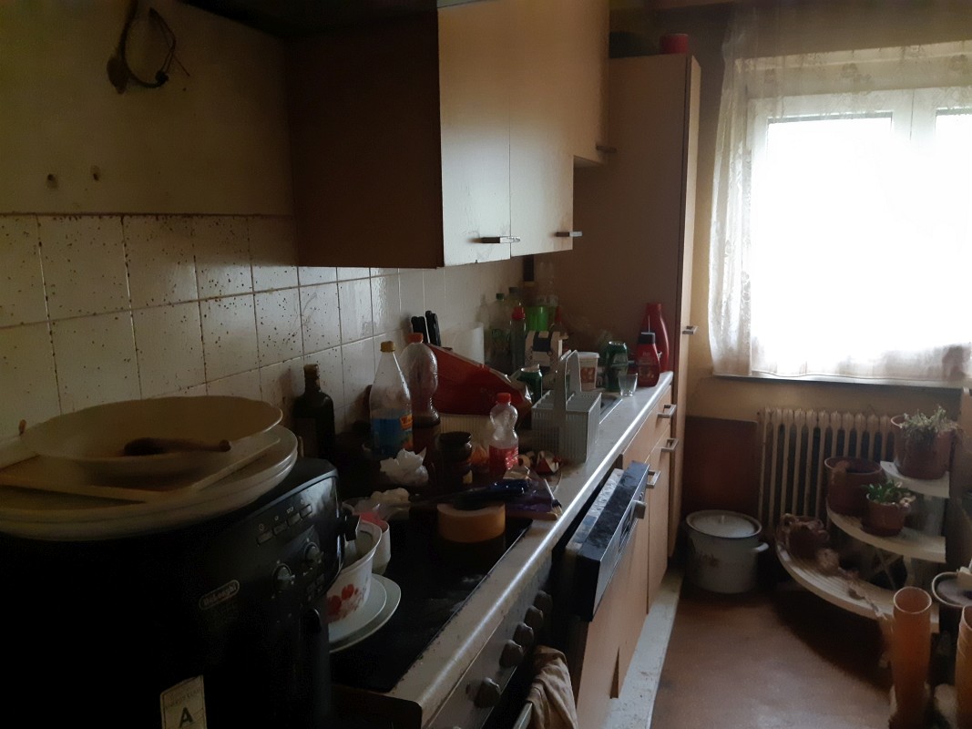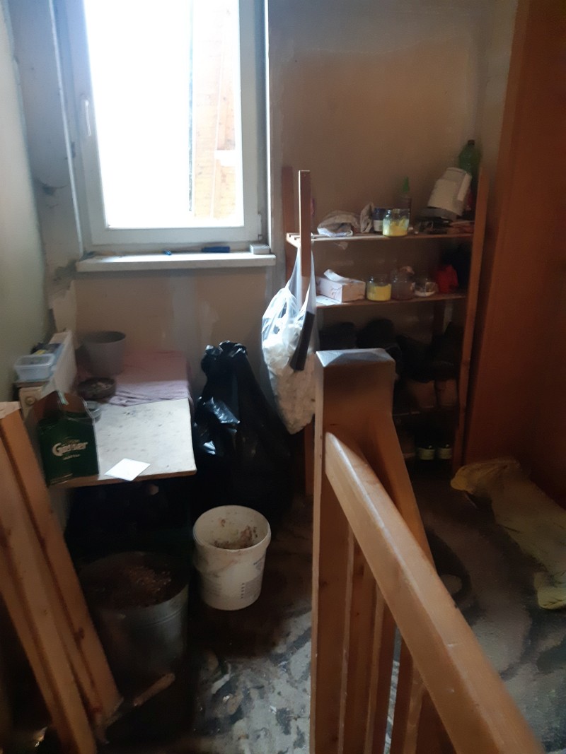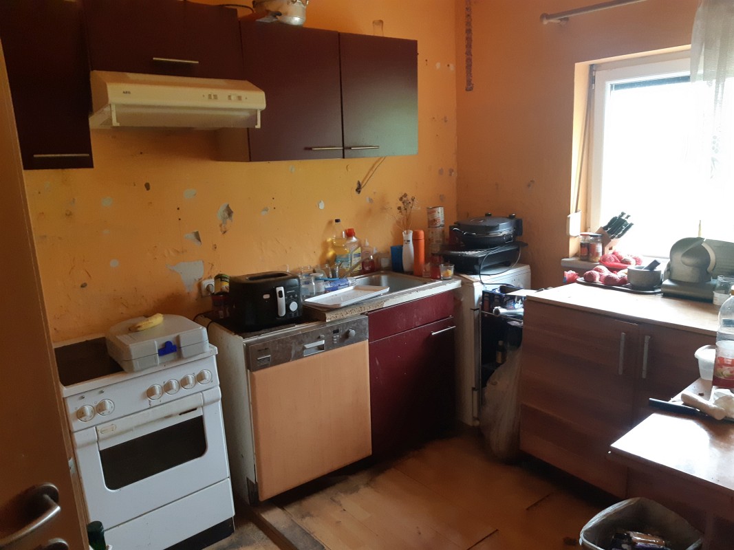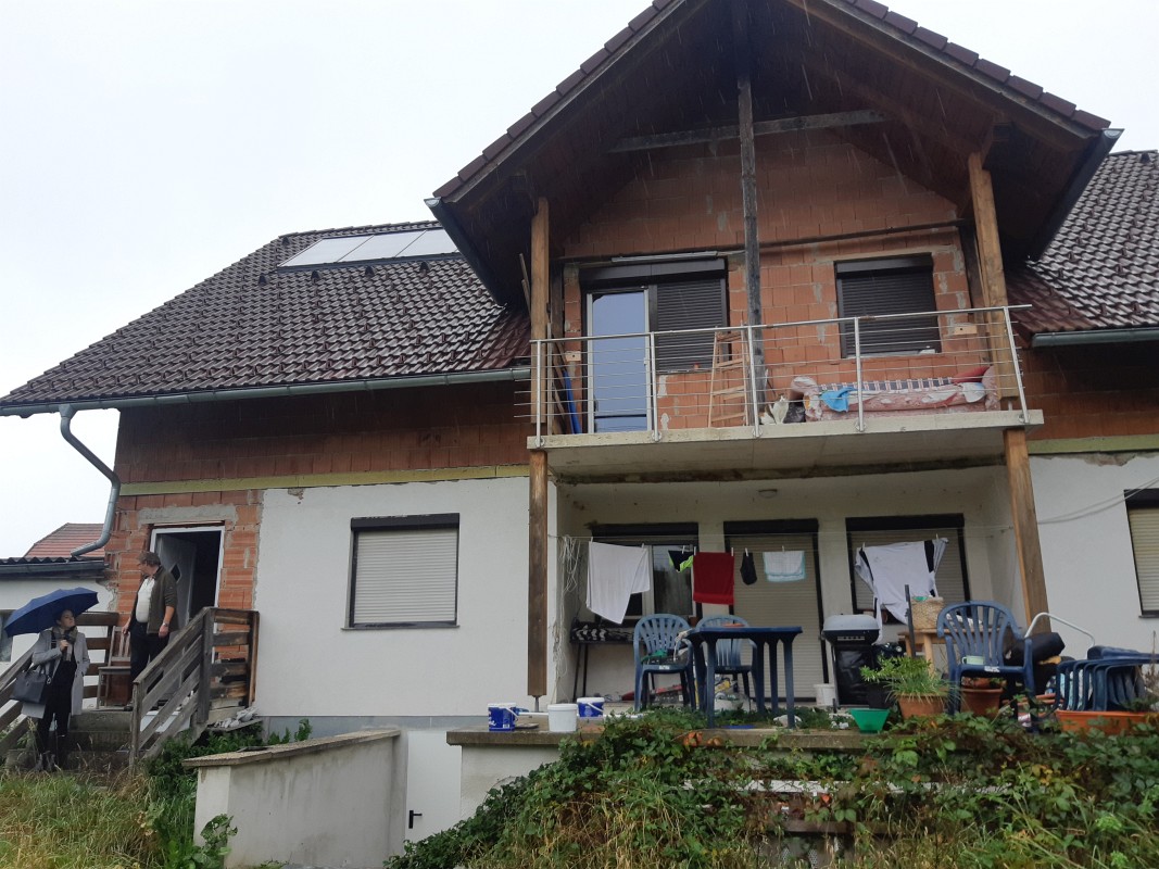 Beschreibung: | Liegenschaft in der Gemeinde Krieglach, südlich der S6-Semmering Schnellstraße, vom Ortszenrtum Krieglach ca. 2,4 km entfernt; Lage laut Flächenwidmungsplan im Freiland Landwirtschaftsgebiet. Grundstück 1046 im Osten direkt an den Wiesenweg grenzend, vom Wiesenweg nach Westen leicht abfallend; Grundstück .201 innerhalb des Grundstücks 1046 liegend und mit Wohnhaus bebaut. W o h n h a u s In massiver Bauweise errichtet, bestehend aus Erdgeschoß, Dachgeschoß und Teilunterkellerung, sowie eingeschossigem Garagenanbau an der Nordseite. Ursprünglich eingeschossig, 2002 Einreichung für Abbruch des Daches und Errichtung des Dachgeschosses; Wohnhaus mit Satteldach und Nebengiebeln an Ost- und Westseite, Garagenanbau mit Pultdach; Stiegenhaus in der Abstandsfläche zwischen Wohnhaus und Garage angeordnet; in beiden Geschossen jeweils eine Wohnung. Kellergeschoß: Heizraum und drei Kellerräume, im Heizraum ein Festbrennstoffkessel und ein Warmwasser-Pufferspeicher (Eintrag von Solaranlage am Dach) installiert; die Böden verfliest bzw. Naturböden. Erdgeschoß: Zentraler Vorraum im Anschluß an das Stiegenhaus, Kellerstiege, WC, Küche 1 mit Durchgang zum Bad, Küche 2 und vier Zimmer. In den Räumen PVC-Bodenbeläge, Wände und Decken mit Anstrichen, in Bad und WC Böden und Wände bis ca. 1,50 m verfliest, Bad mit Dusche und Waschbecken. Dachgeschoß (Mansarde): Zentraler Vorraum im Anschluß an das Stiegenhaus, WC, Bad, Küche, vier Zimmer, Abstellraum. In den Räumen Laminatböden, Wände, Decken und Dachschrägen mit Anstrichen, in Bad und WC Böden und Wände bis Deckenunterkante verfliest, Bad mit Badewanne, Dusche und Waschbecken, WC mit Hänge-WC und Handwaschbecken. Insgesamt sehr vernachlässigte Unterhaltung des Gebäudes, bei Fassade und Innenbereich ausstehende Fertigstellungsarbeiten, Innenbereiche zum Teil in verwahrlostem Zustand. A u ß e n a n l a g e n: Maschengitterzaun entlang Wiesenweg, Garagenzufahrt asphaltiert, unbebaute Flächen sind Wiesen; Fertigteil-Garage westlich des Wohnhauses und ca. 6 m2 große Blechhütte nördlich des Wohnhauses. Insgesamt sehr ungepflegter Zustand, Maschengitterzaun desolat, Wiesen sich selbst überlassen. |