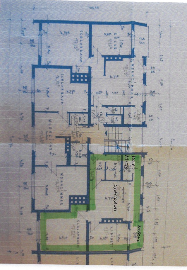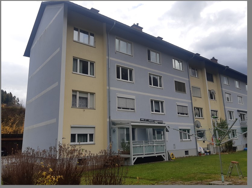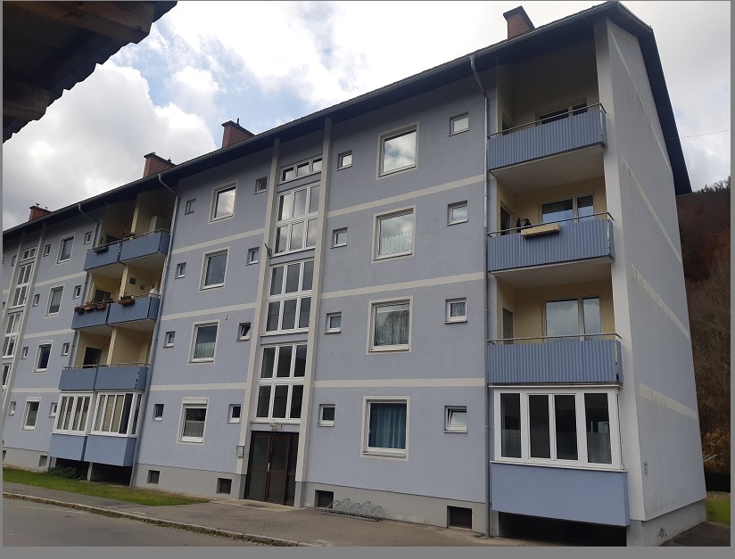 | Beschreibung: | Liegenschaft in der Grünen Insel, Siedlungsgebiet entlang der Mürz, Fahrentfernung vom Stadtzentrum ca. 1,1 km. Ebenflächiges, horizontal liegendes Grundstück, bebaut mit 12-Familien Wohnhaus. W o h n h a u s Bestehend aus Kellergeschoß, Erdgeschoß und 3 Obergeschossen, konzipiert als Dreispänner-Typ mit Satteldach. Außenwände aus 25 cm Durisol-Mauerwerk, Geschoßdecken als Fertigteildecken, Kunststofffenster (Fenstertausch 1987). Guter Gesamtzustand. W o h n u n g W 10 Lage im 3. Obergeschoß, Wohnnutzfläche 52,79 m2, bestehend aus Vorraum, Bad/WC, Wohnraum mit Kochnische und Ausgang auf Balkon, 2 Zimmern; Heizung über 2 Einzelöfen im Wohnraum. Ausstattung: Parkettböden, Wände und Decken mit Anstrichen; im Bad/WC Boden und Wände verfliest, Kurz-Badewanne, WC, Waschbecken, Warmwasserboiler; im Bad/WC und Schlafraum Deckenuntersichten mit Holzpaneelen. Sorgfältige Unterhaltung. Wohnnutzfläche 52,79m² zuzüglich ca. 3,5 m² Balkon |